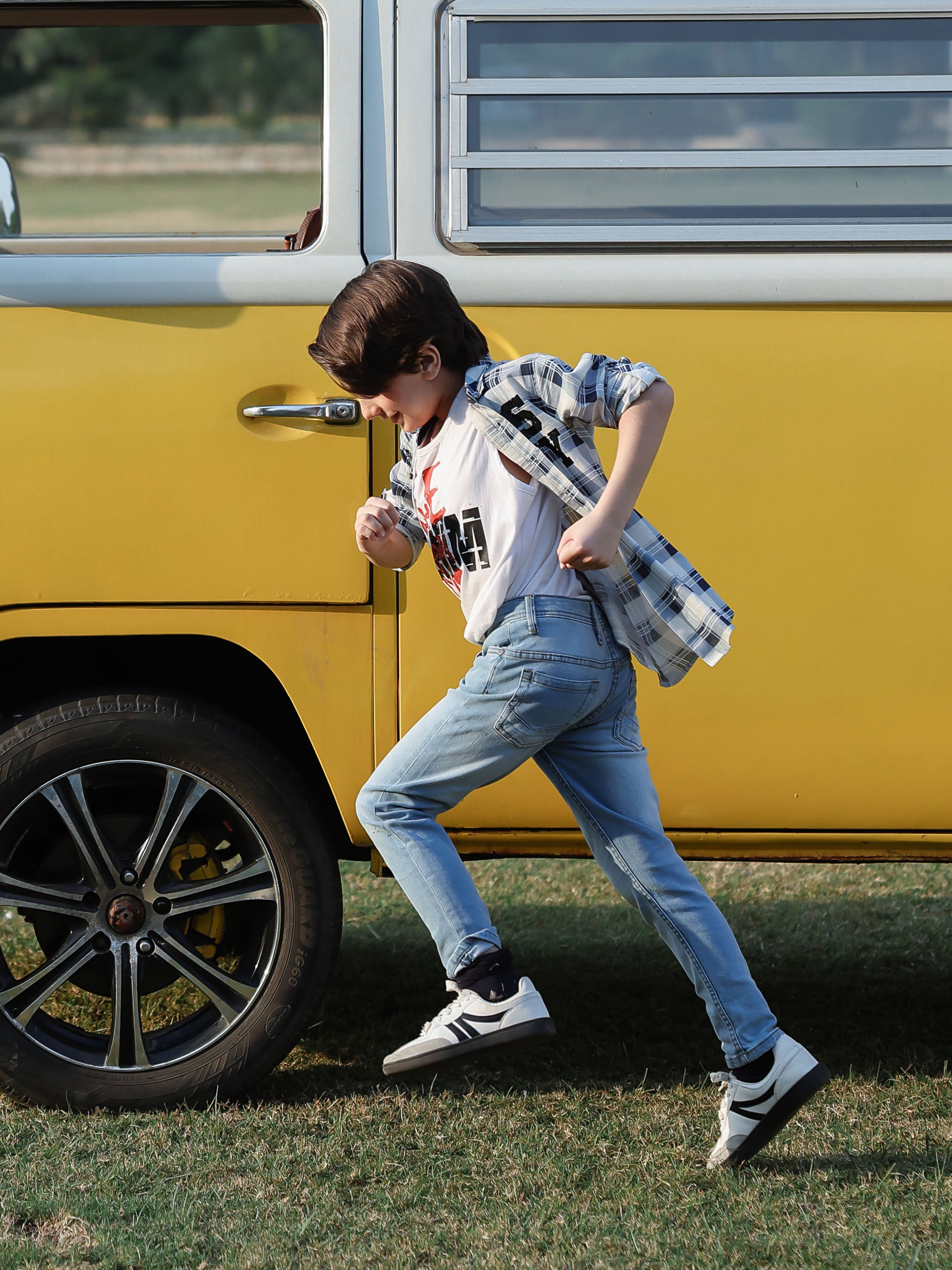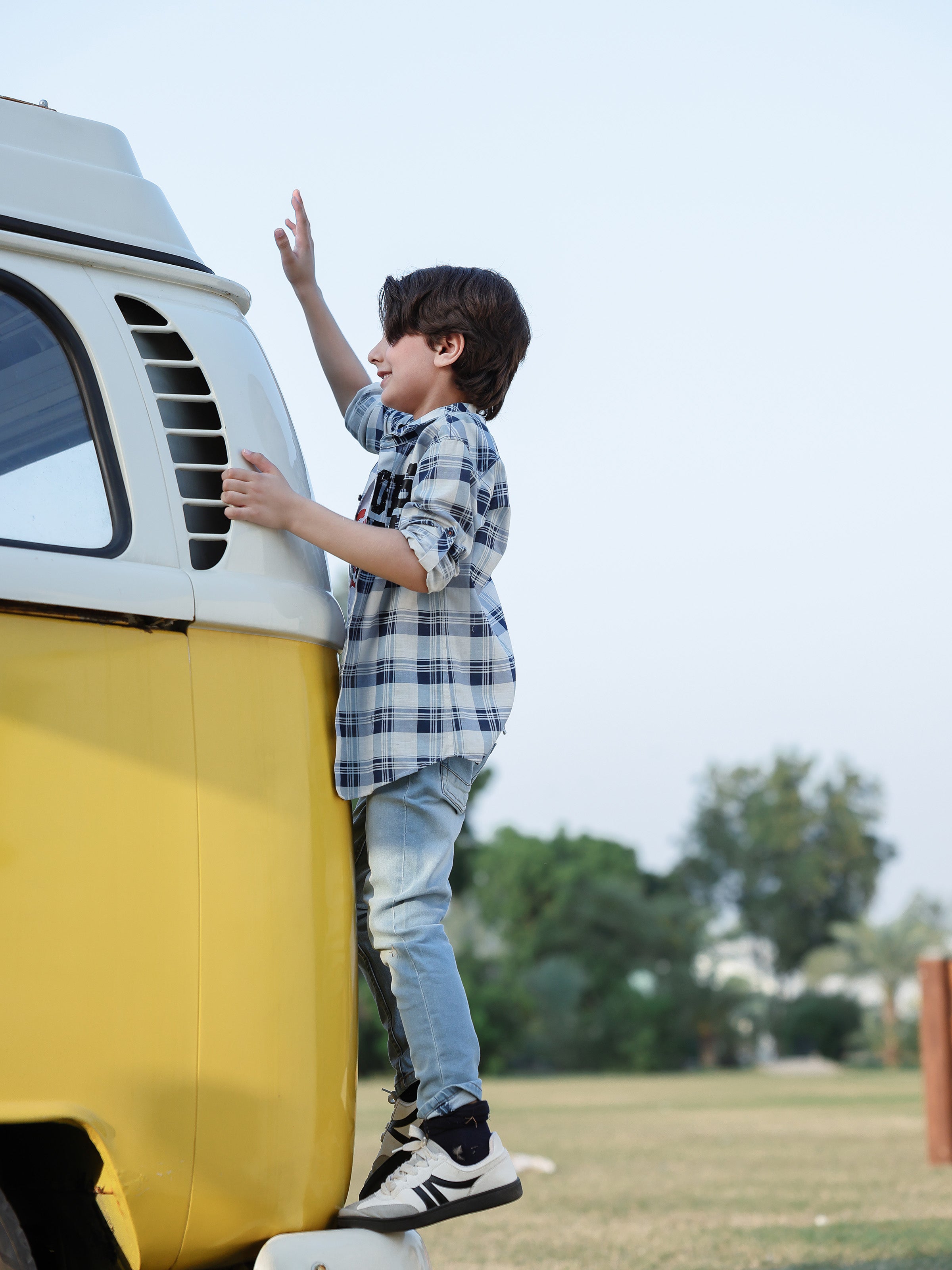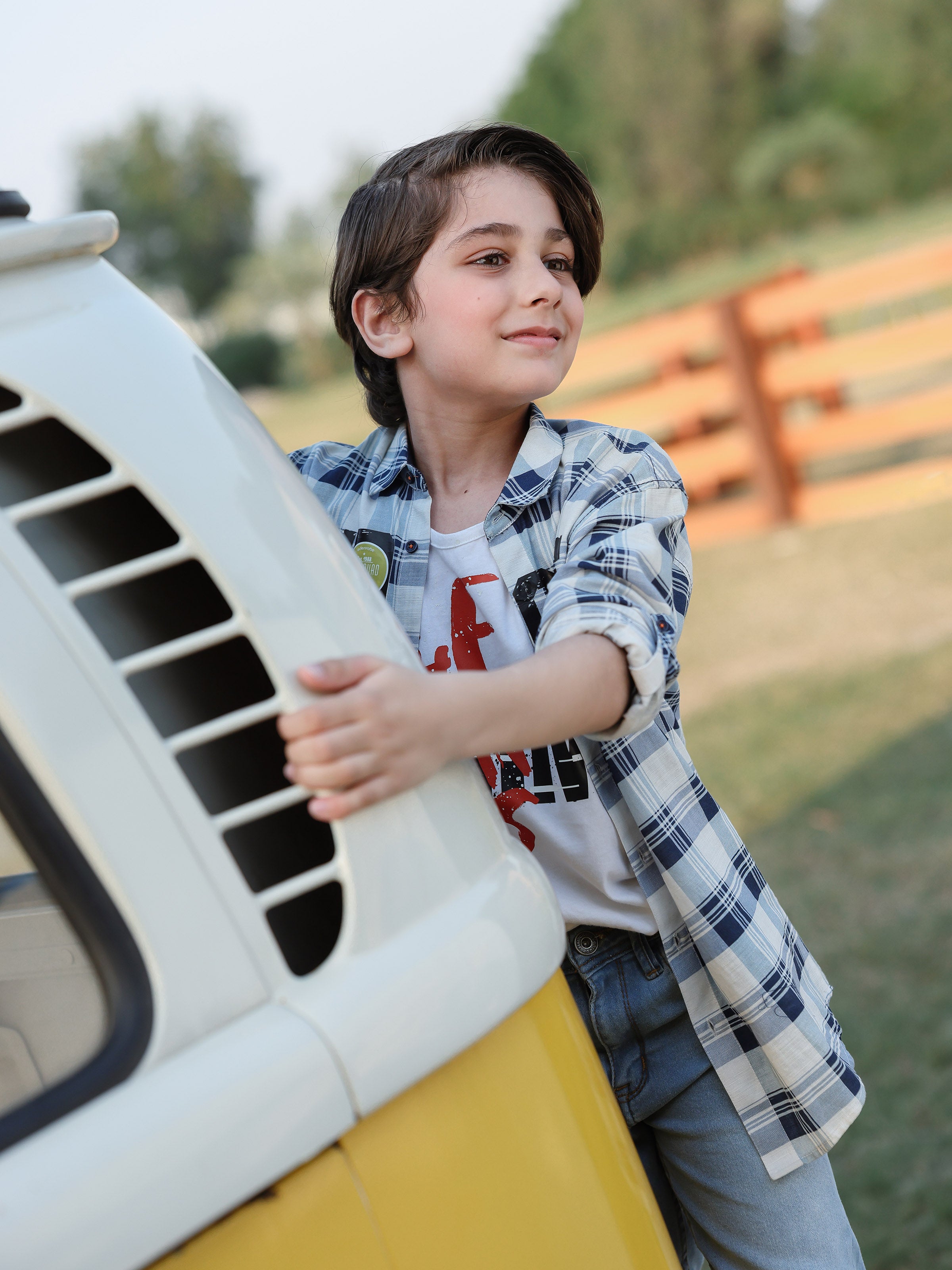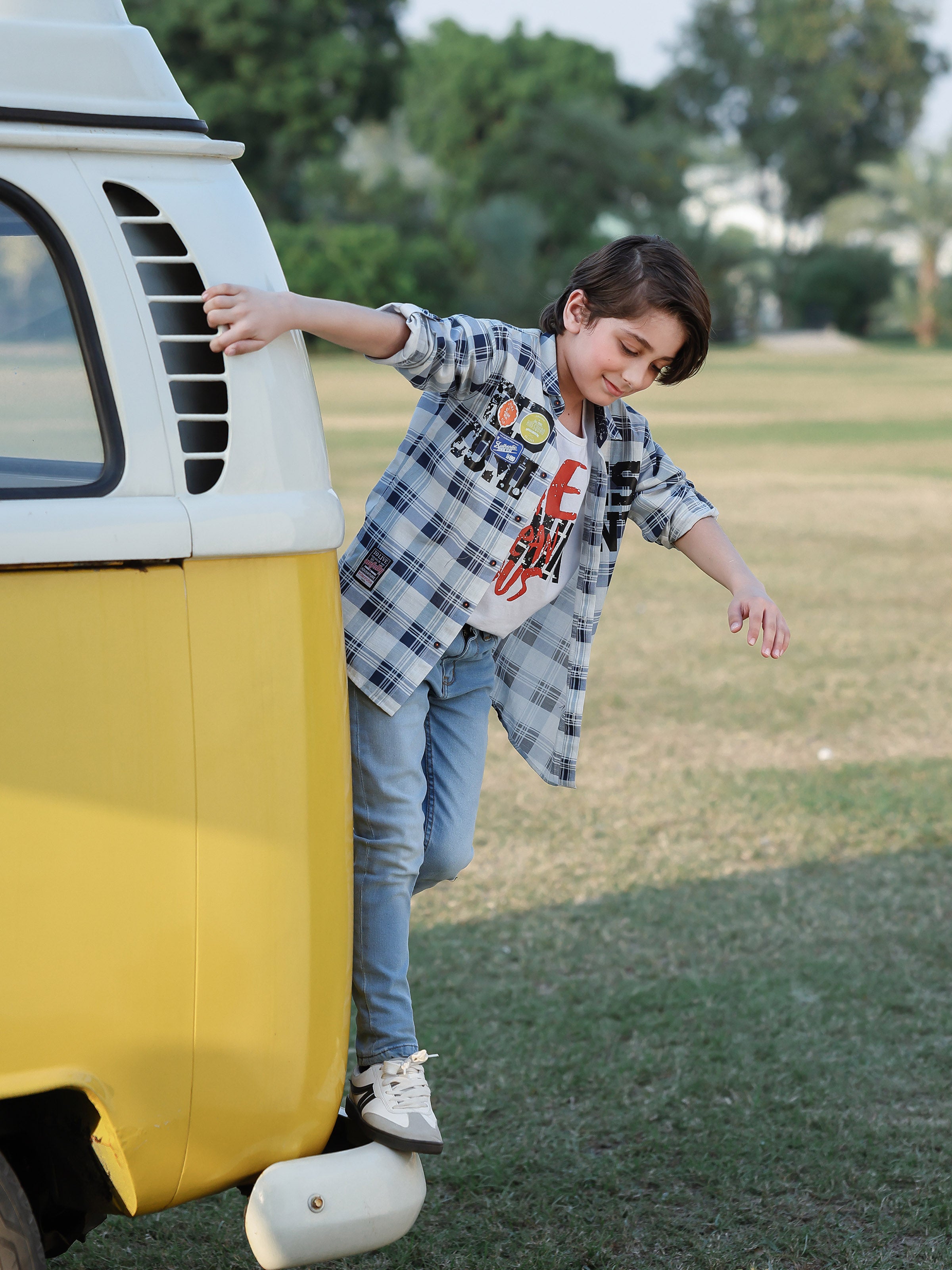 - Style: Check Shirt with Print on Front Having a Printed T-shirt