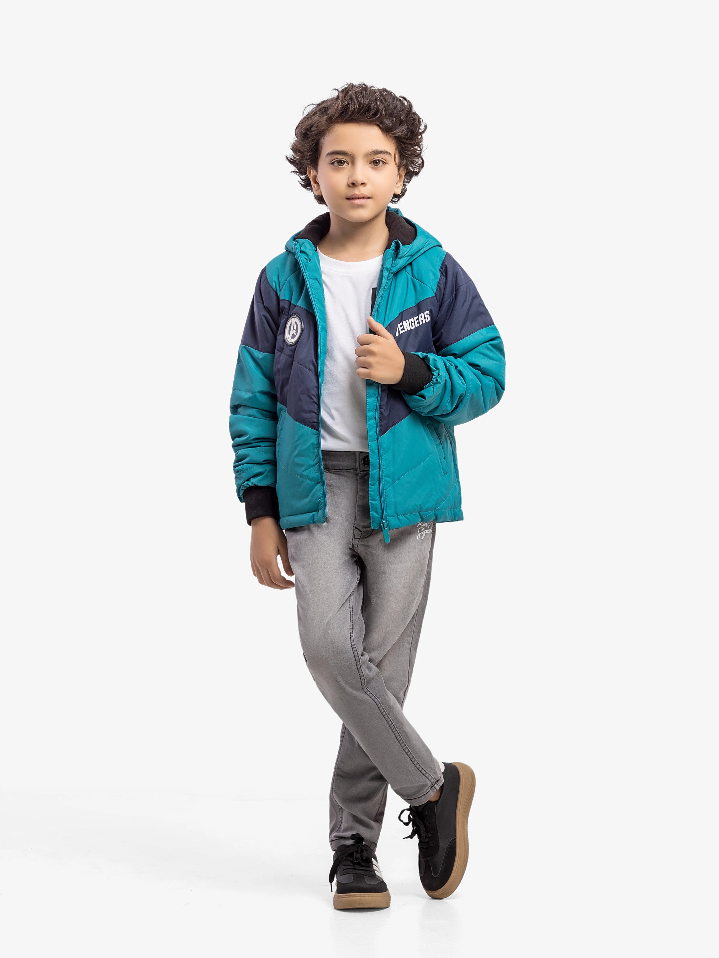 • Style: Zipper Jacket with Print & Patch on Front, 2 Pockets, and Hood