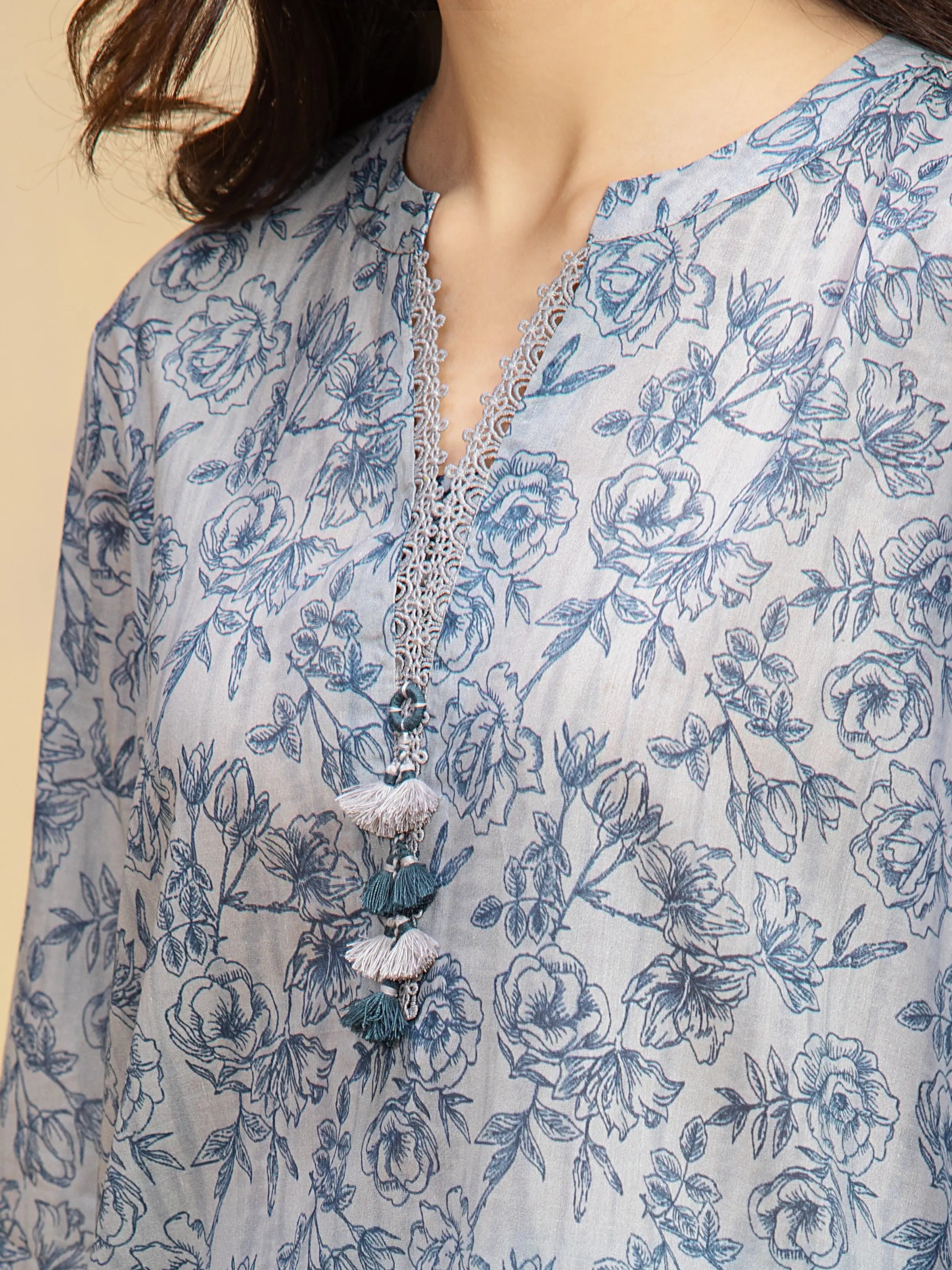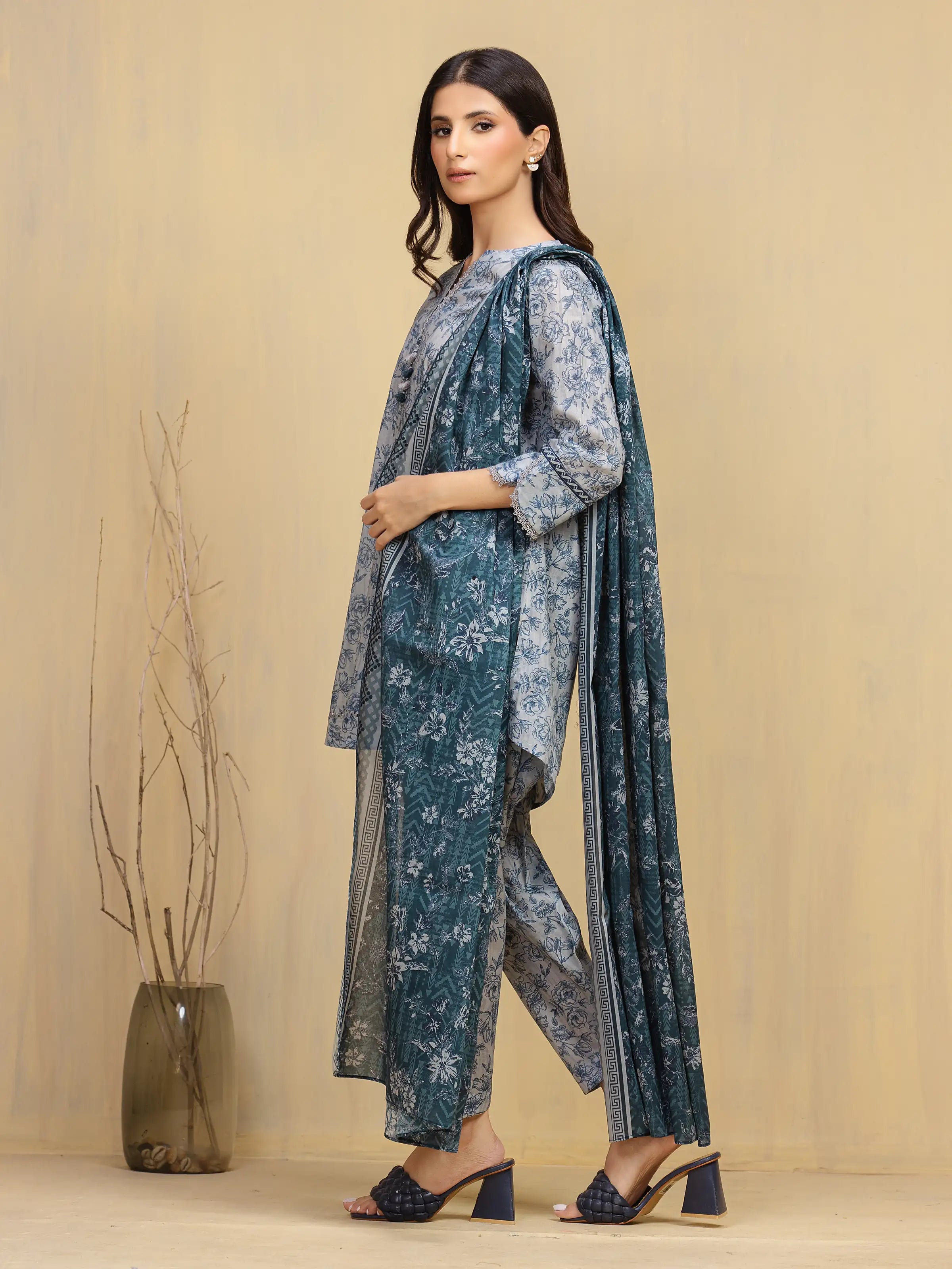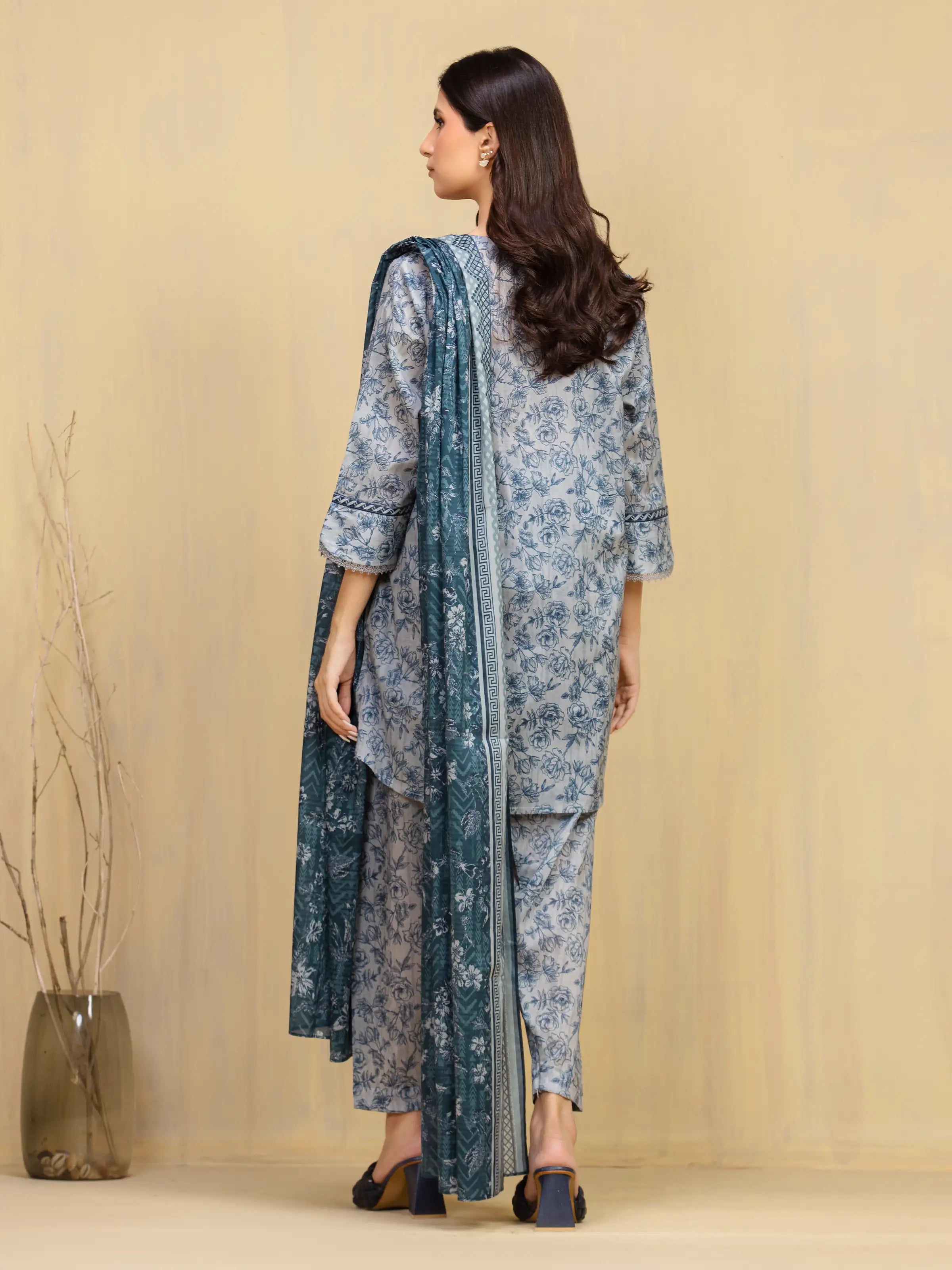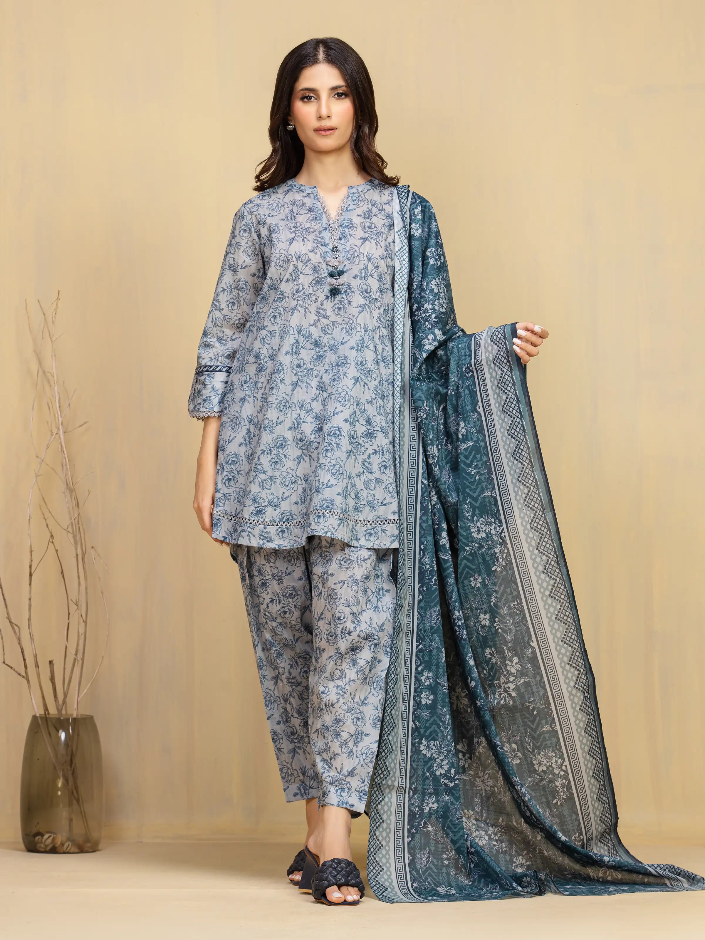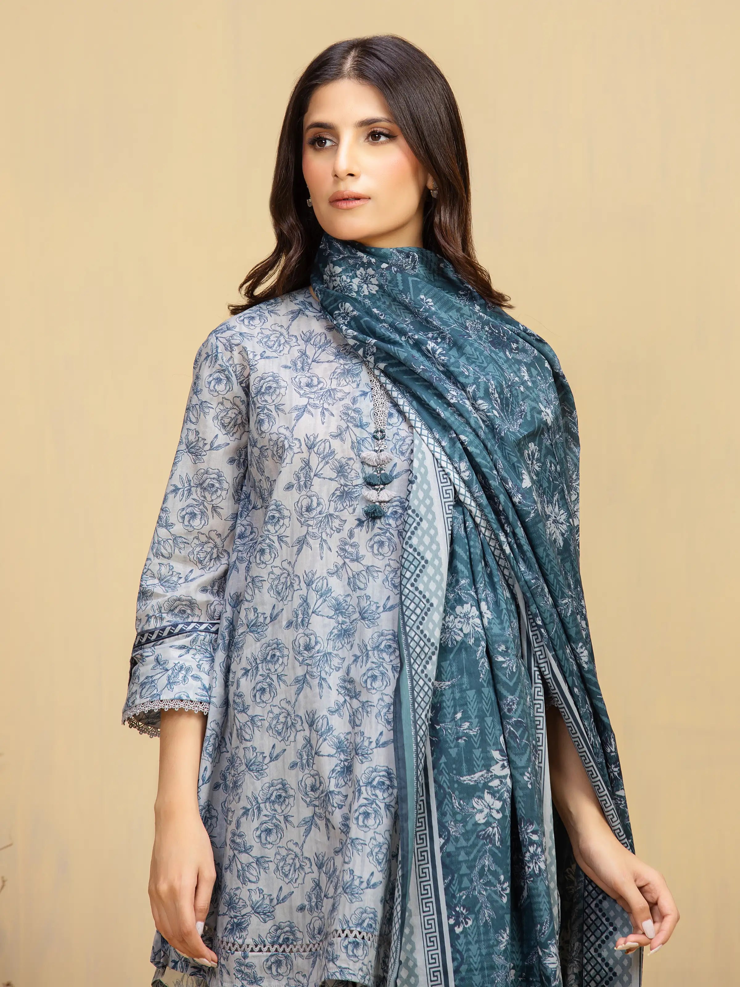 Unstitched Light Grey Printed Khaddar 3 Piece