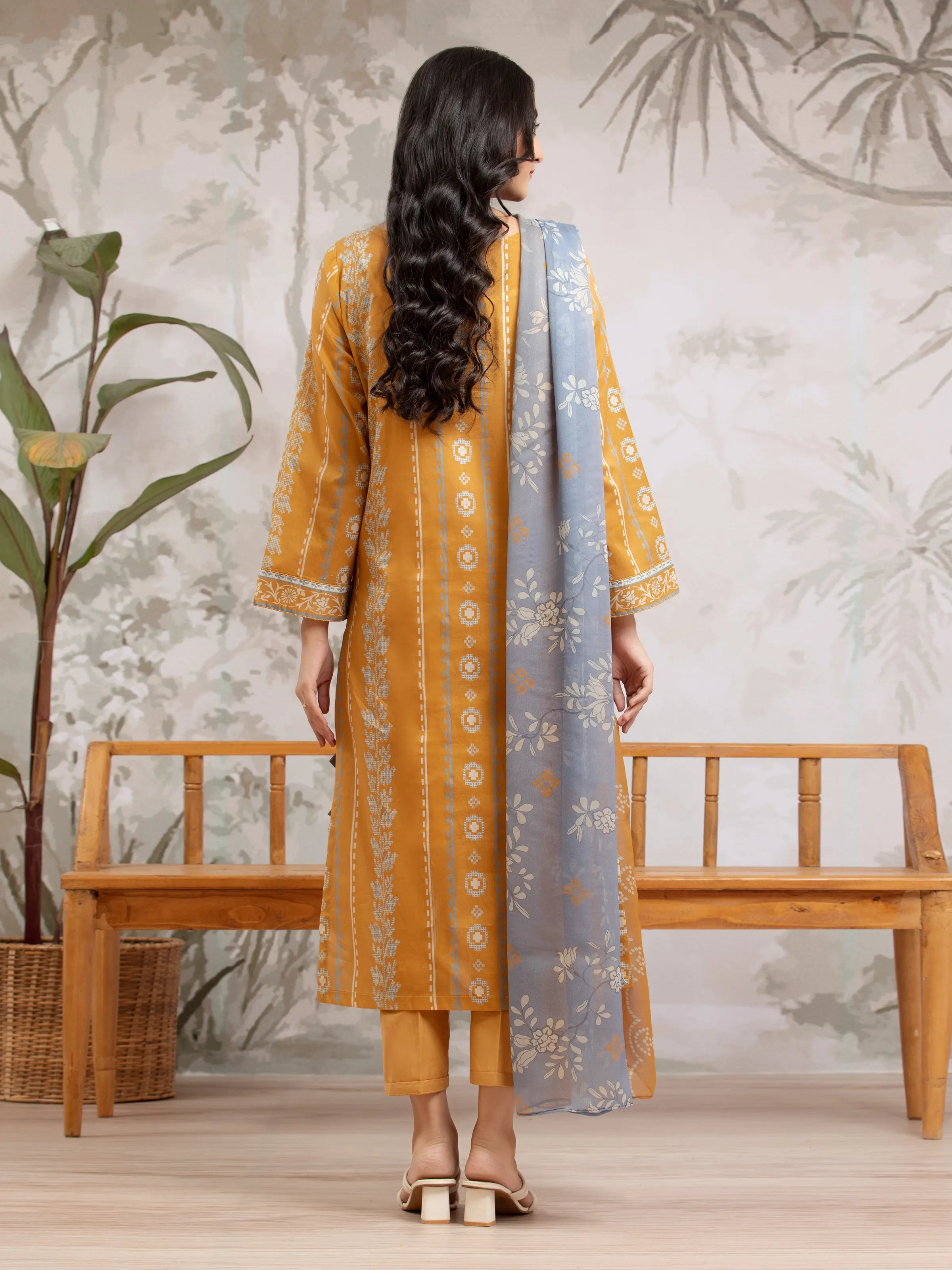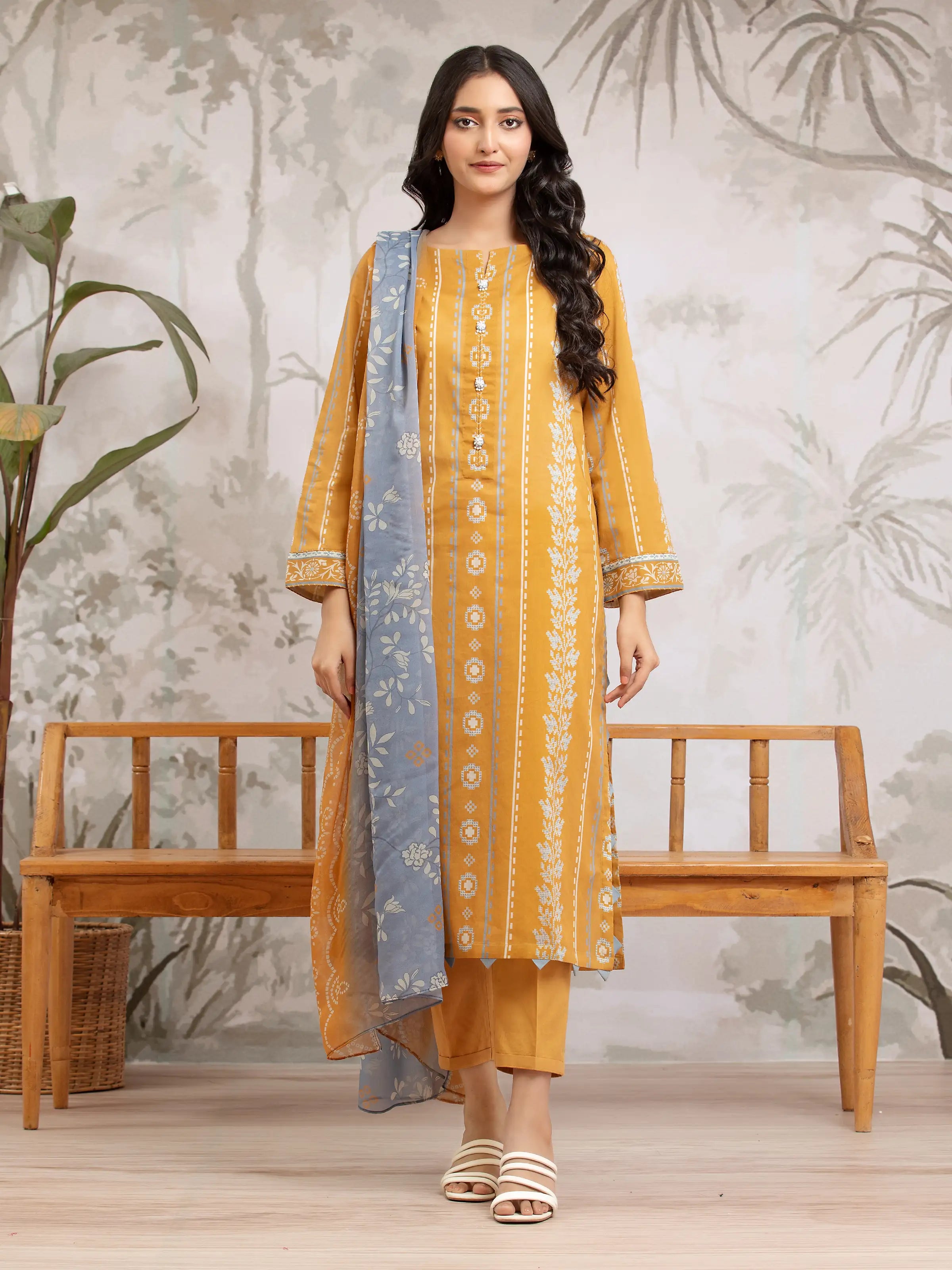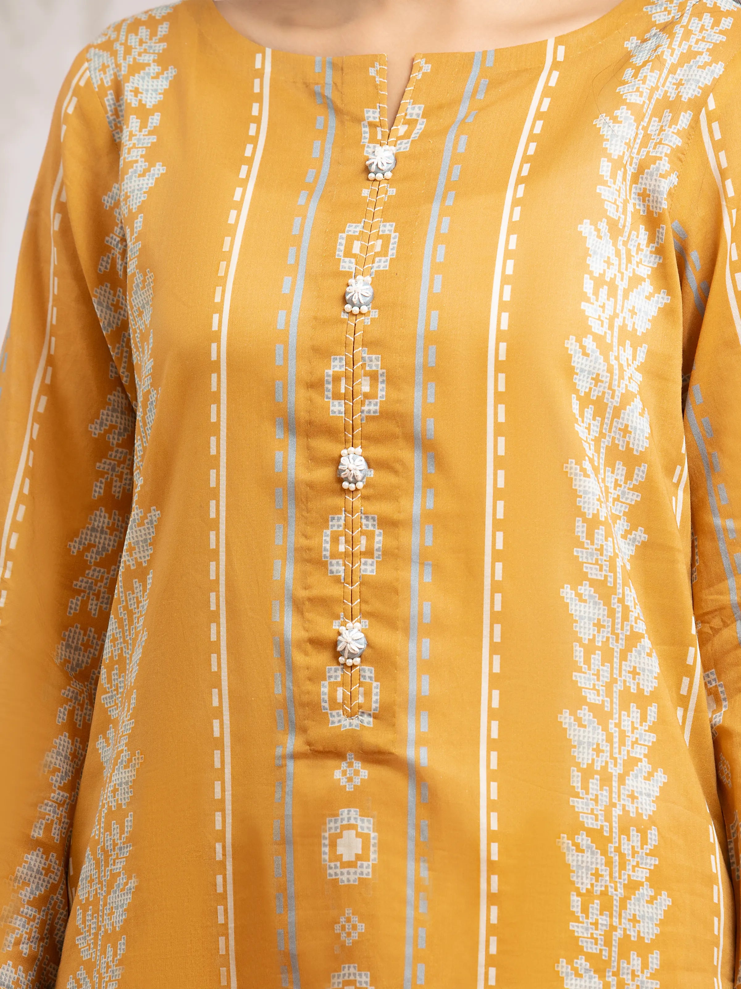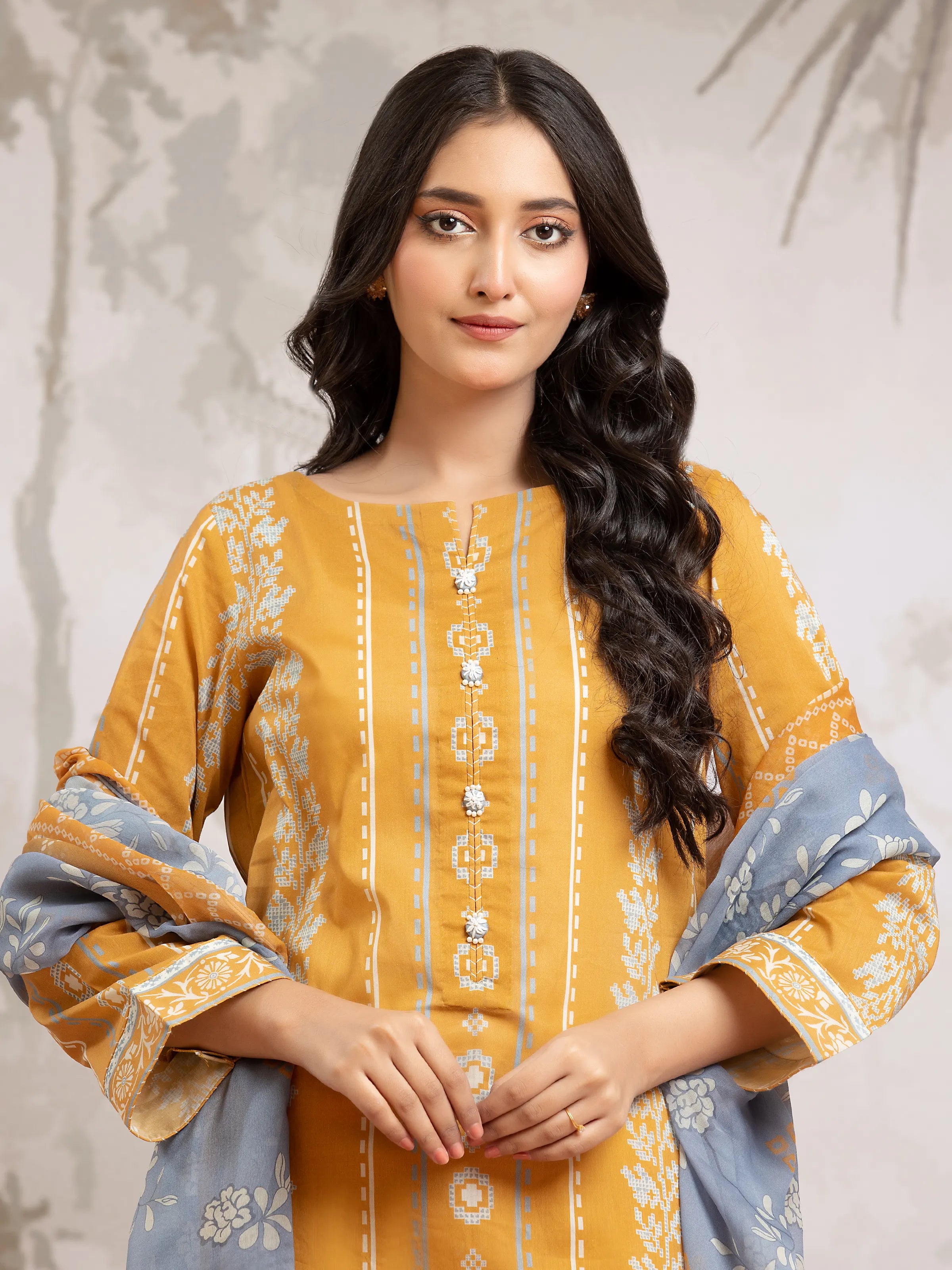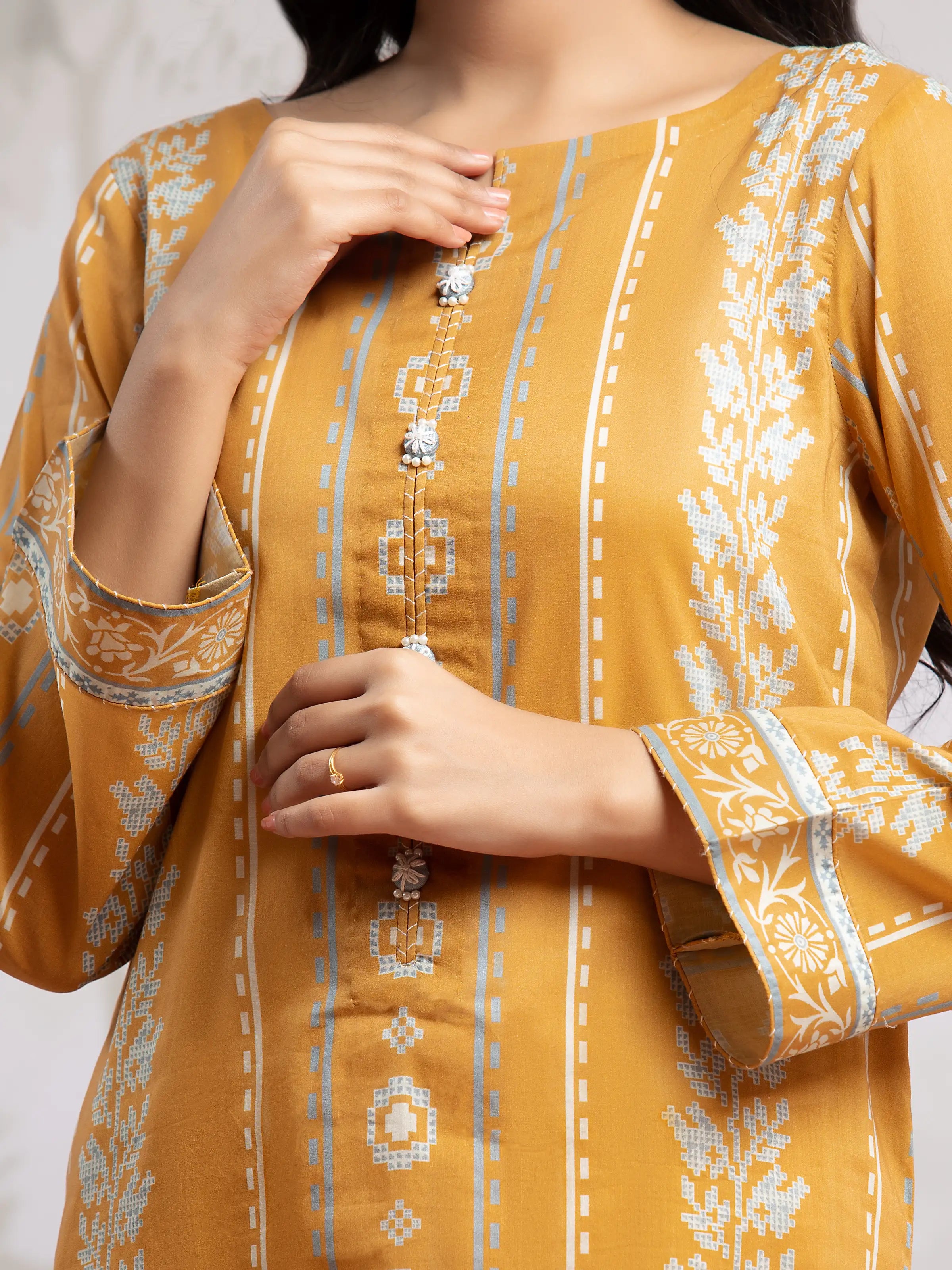 Unstitched Light Mustard Printed Khaddar 2 Piece