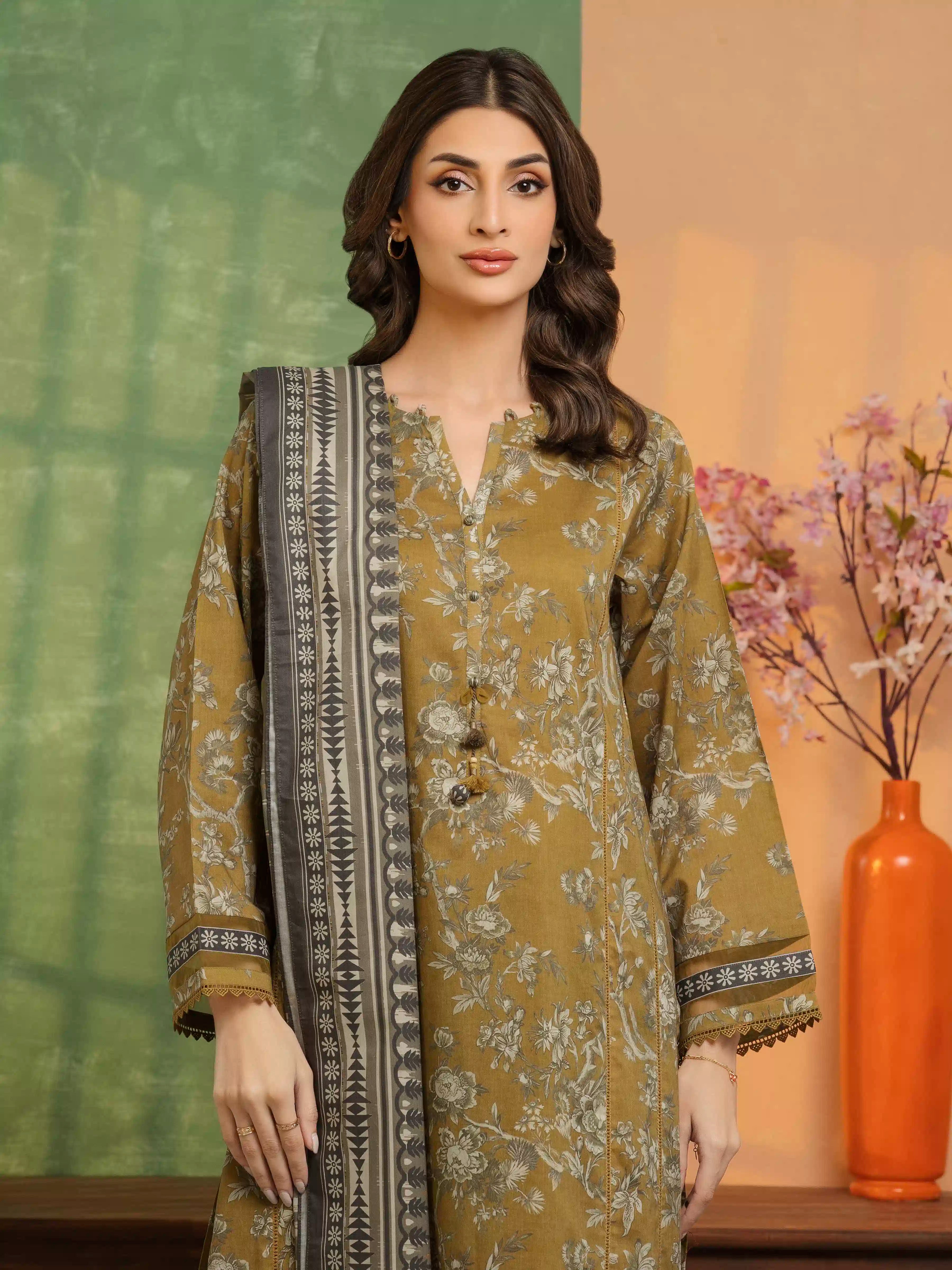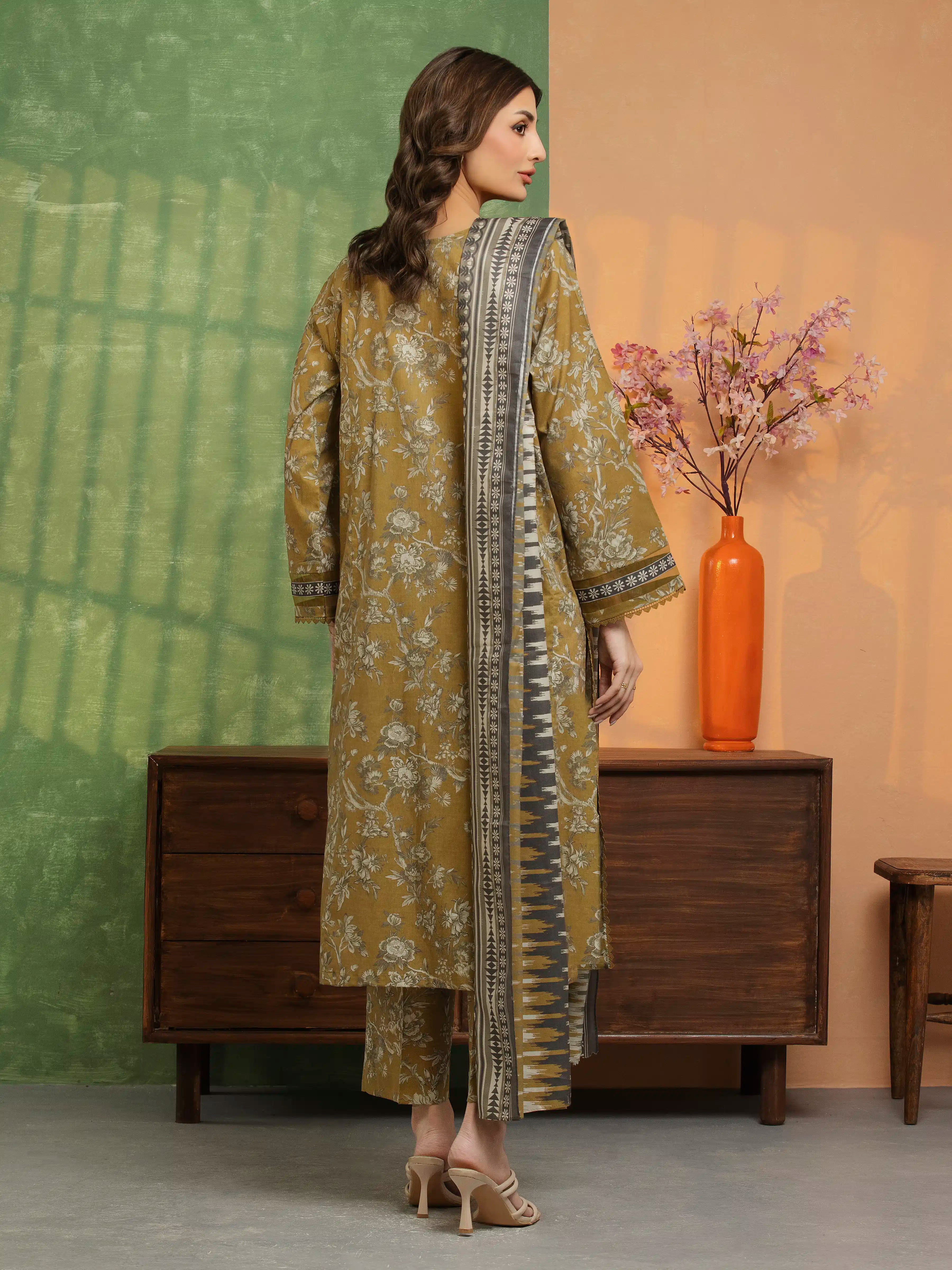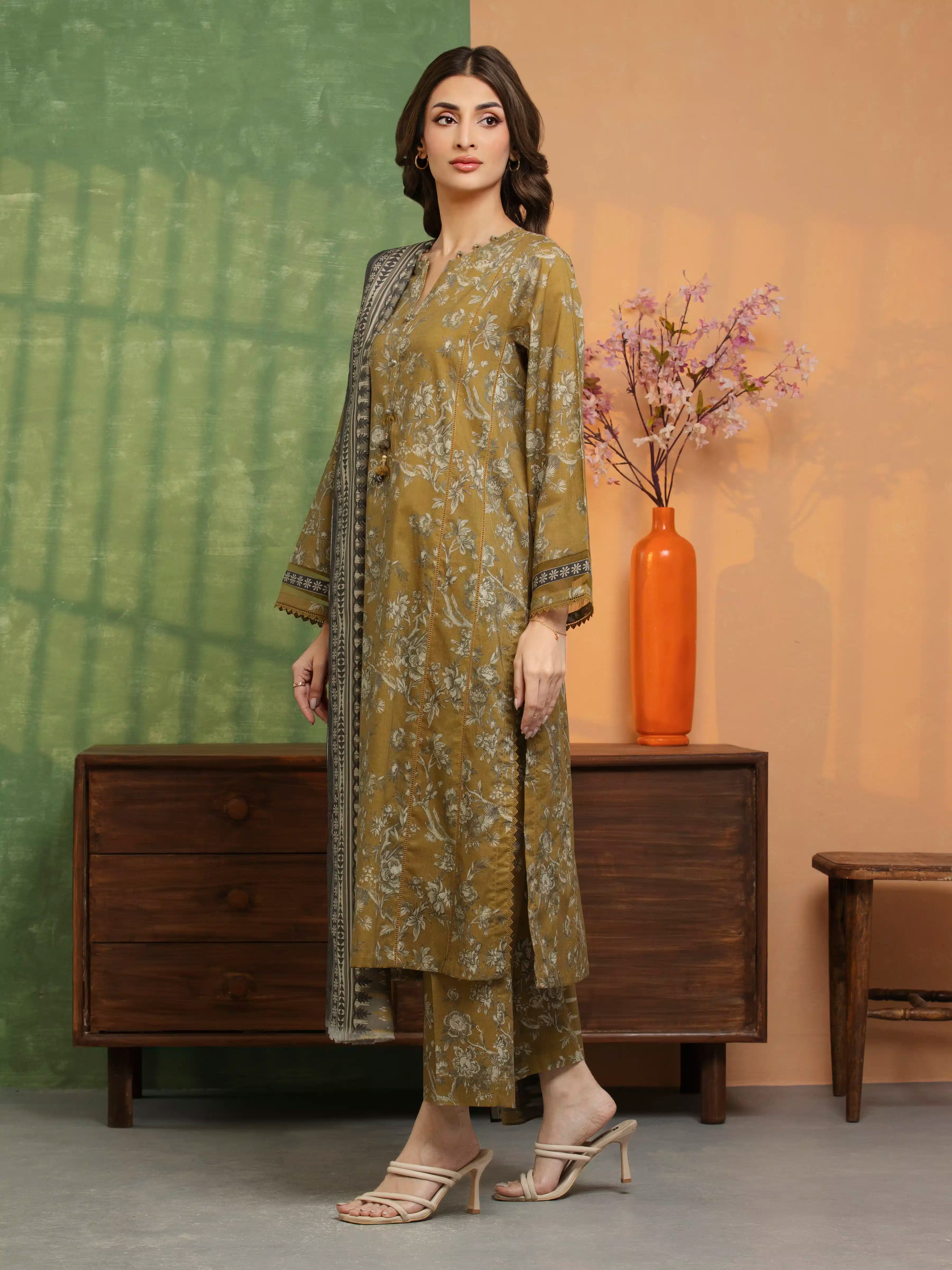Unstitched Light Olive Printed Khaddar 3 Piece
