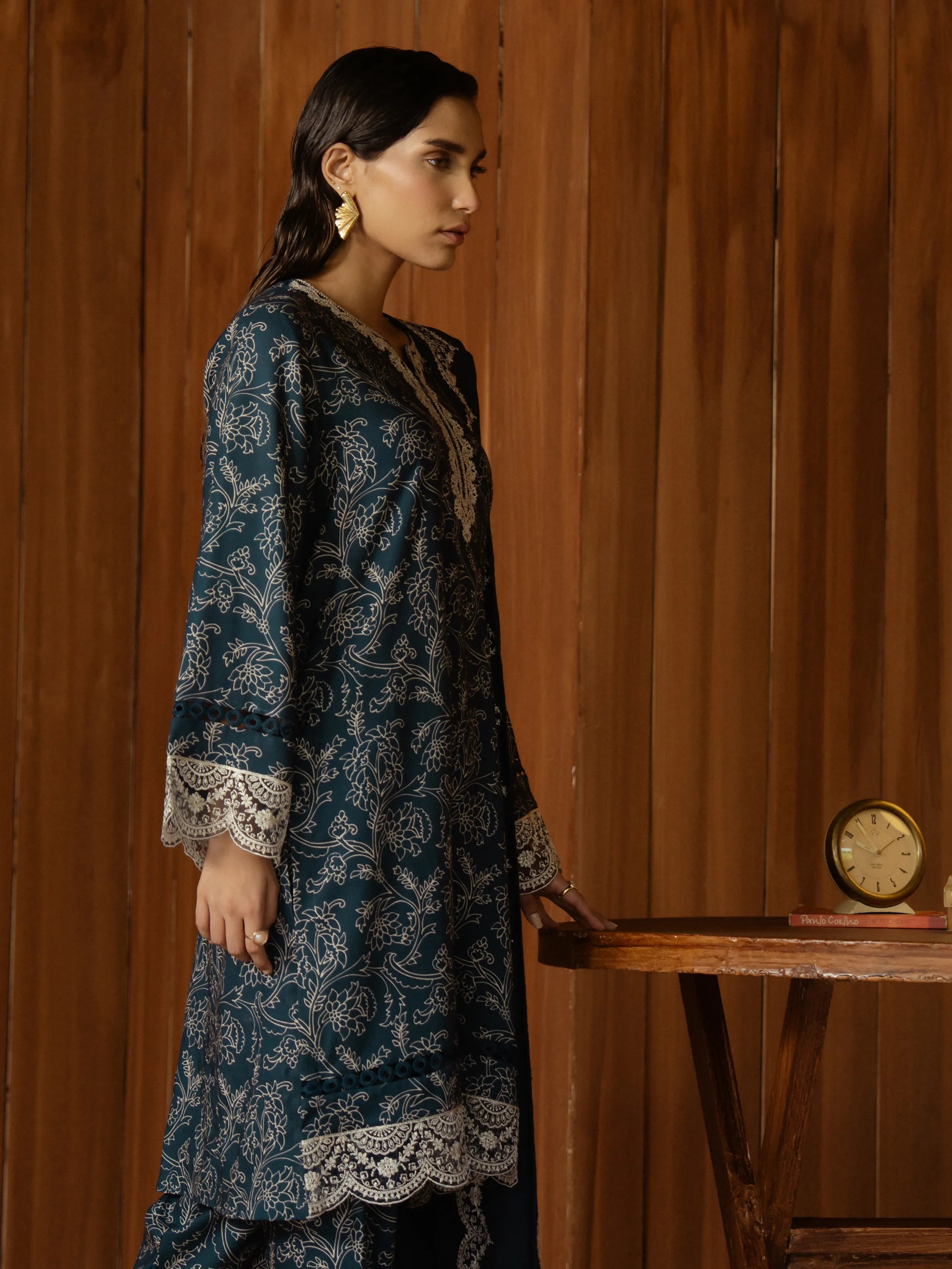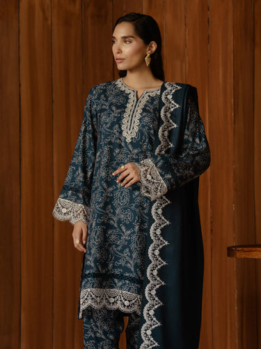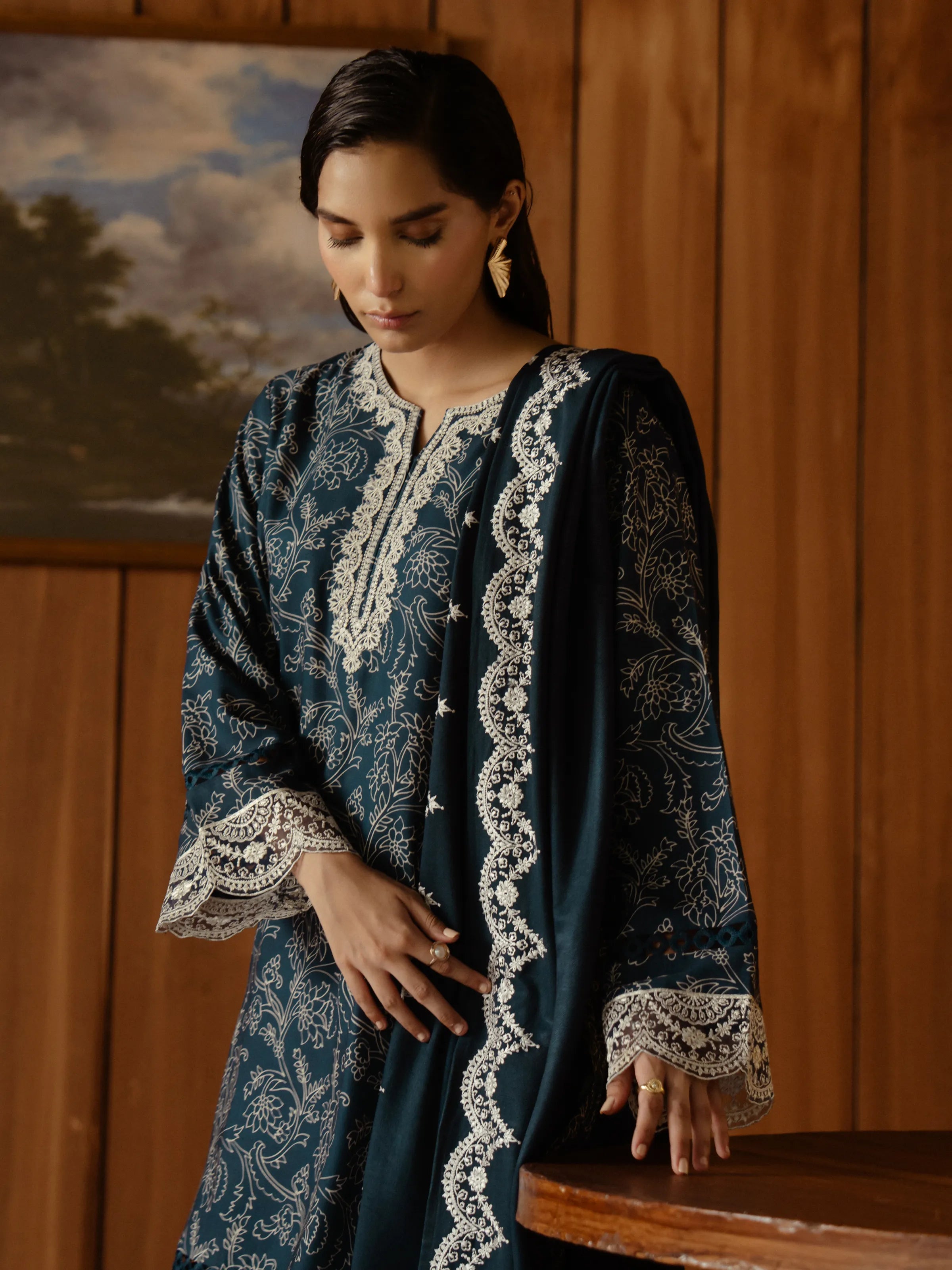 Unstitched Navy Blue Embroidered Marina Twill 2 Piece