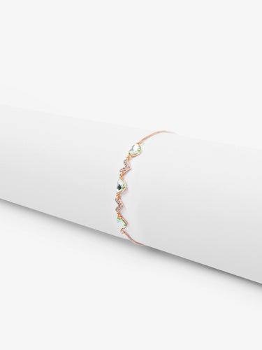 Add a pop of color with the Gold Bracelet featuring green and white heart charms – a charming and playful accessory for any occasion.