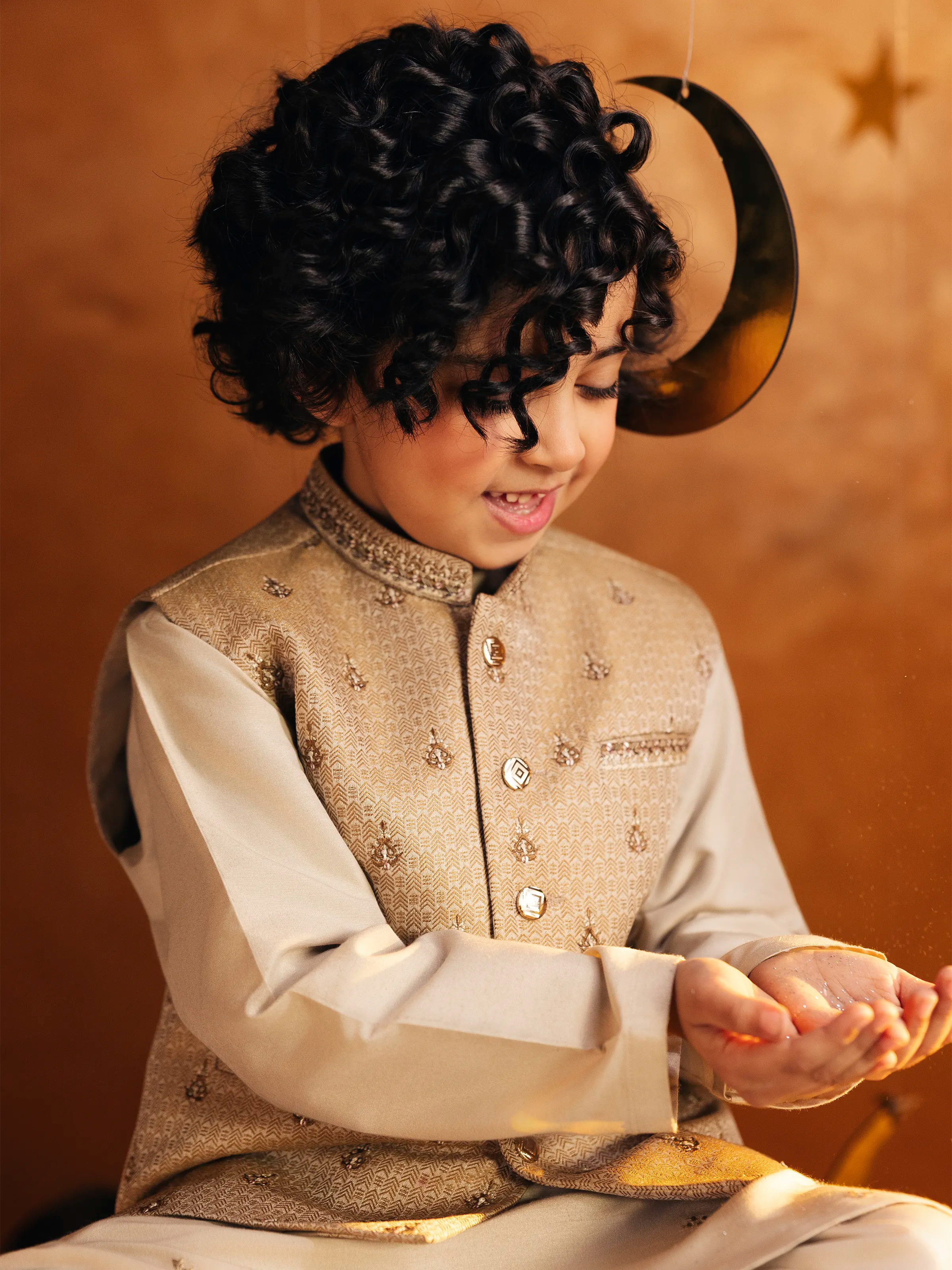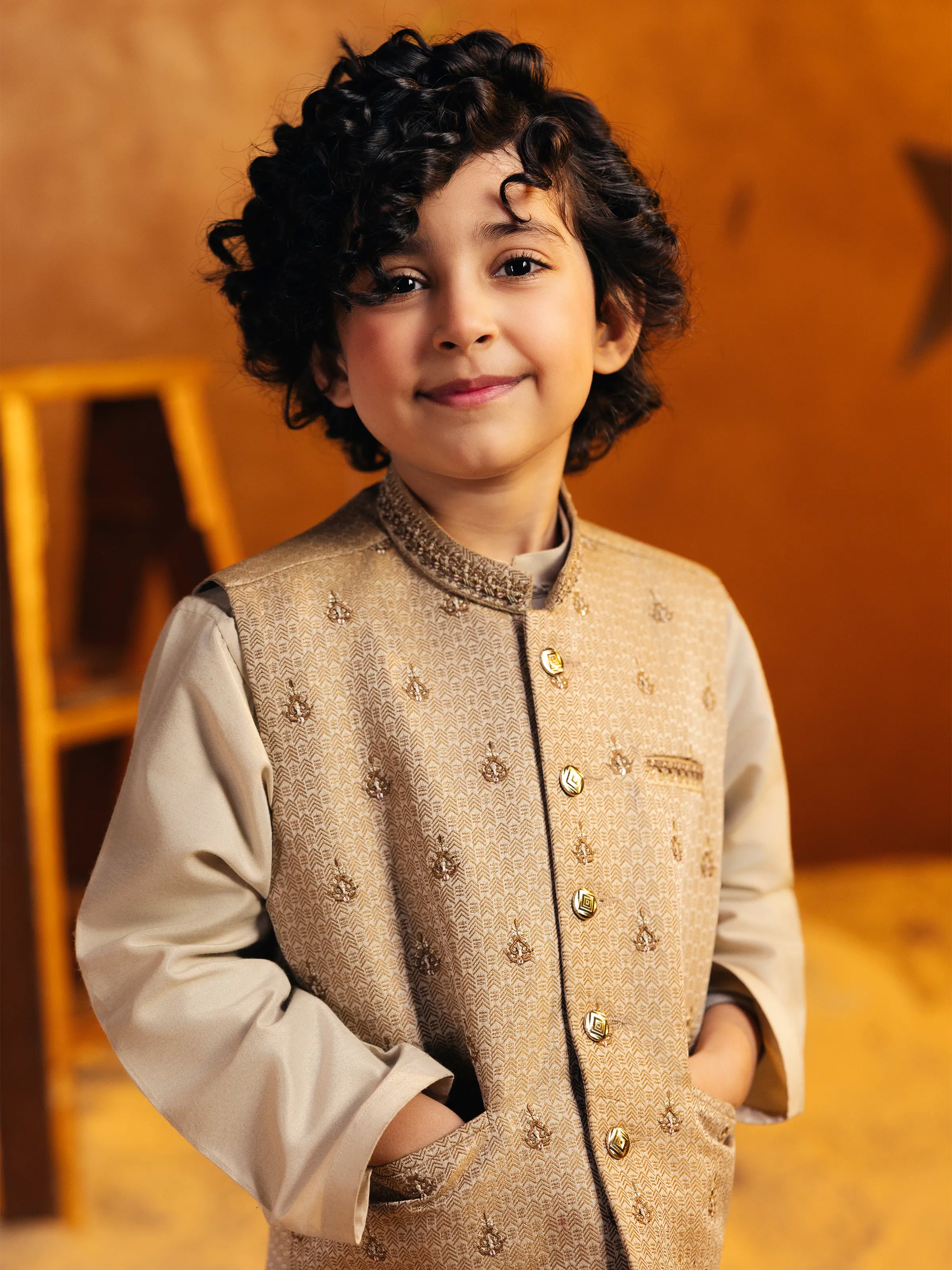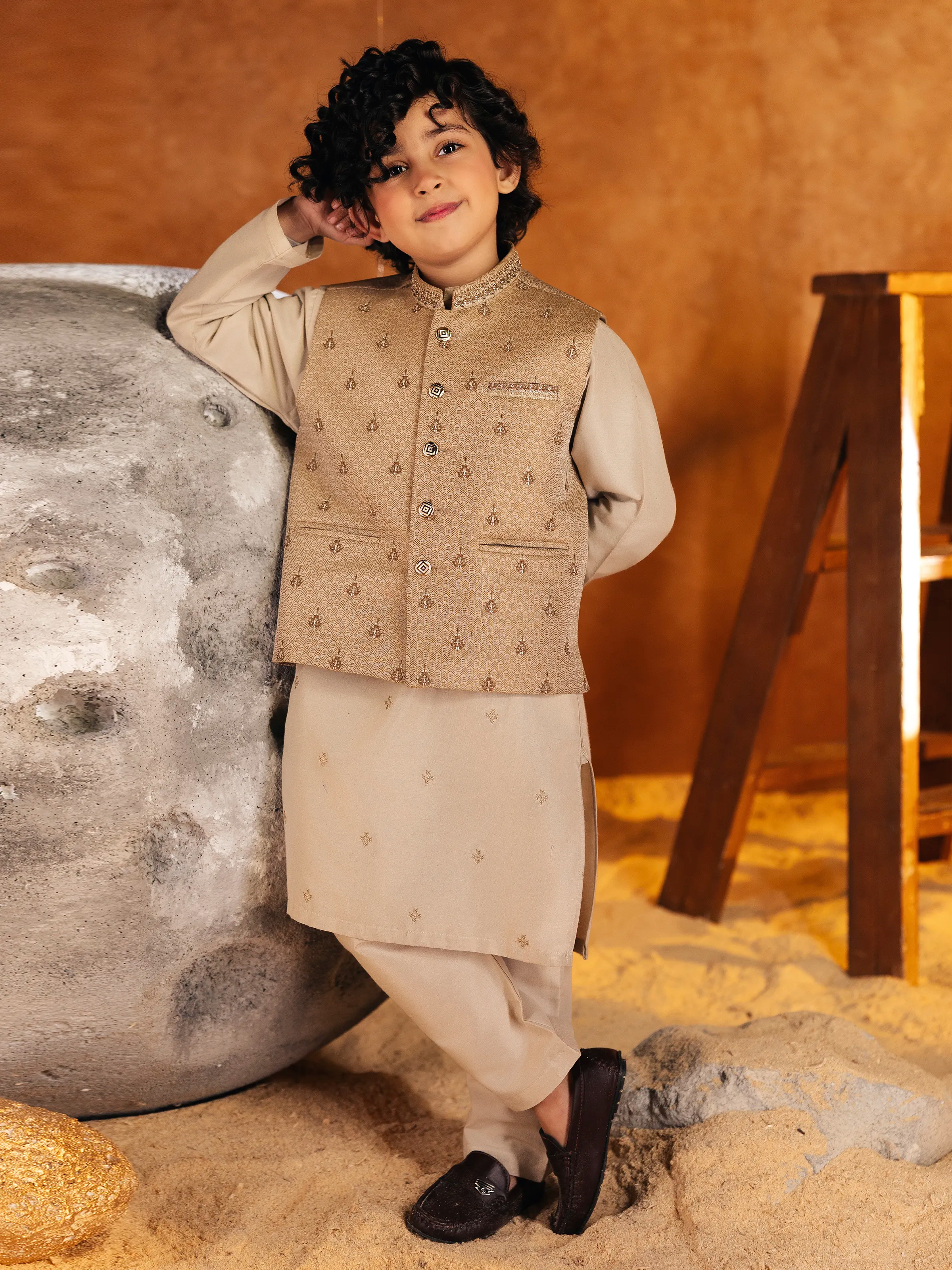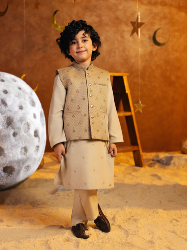 Boy's Beige Waist Coat Suit