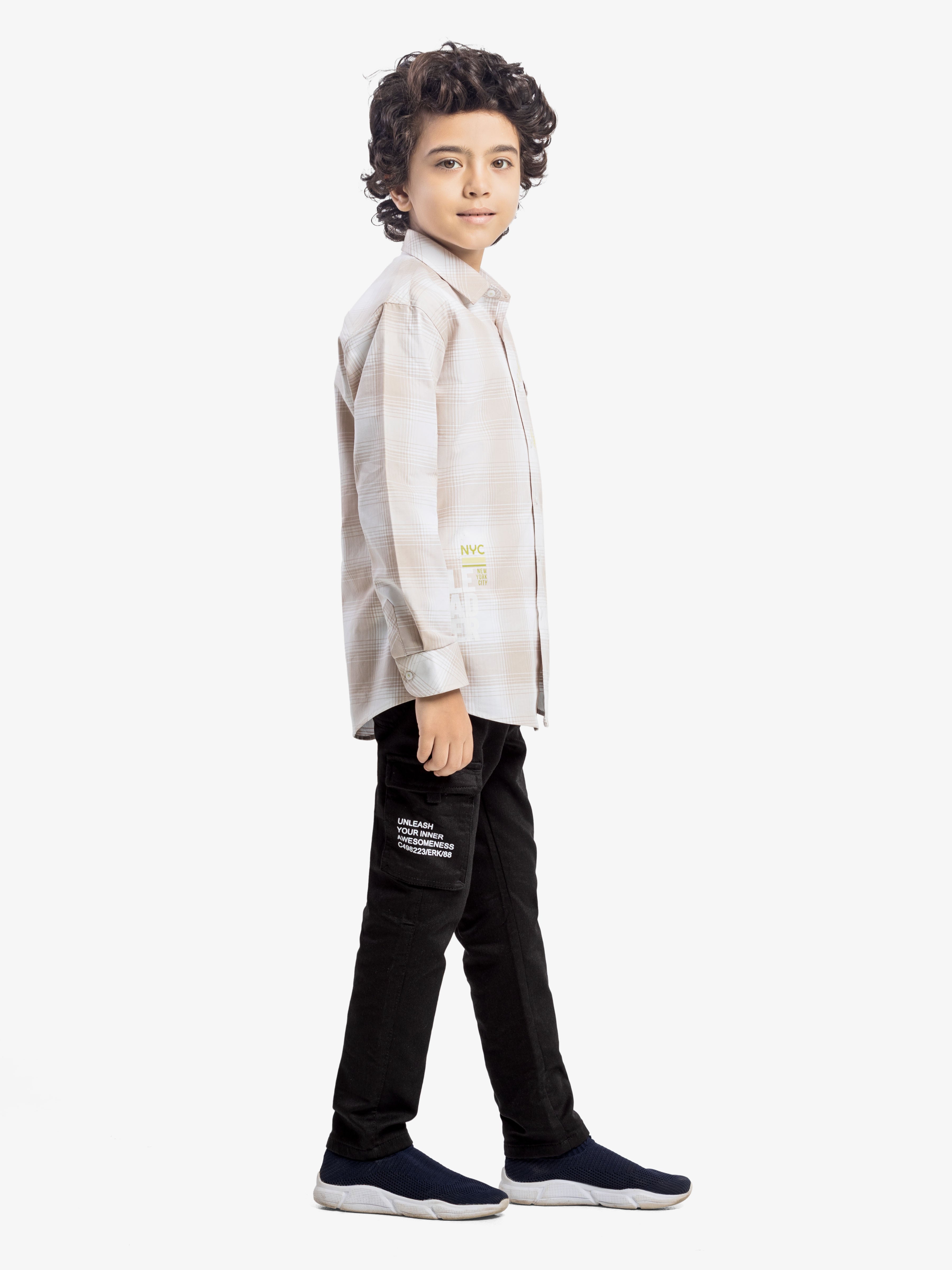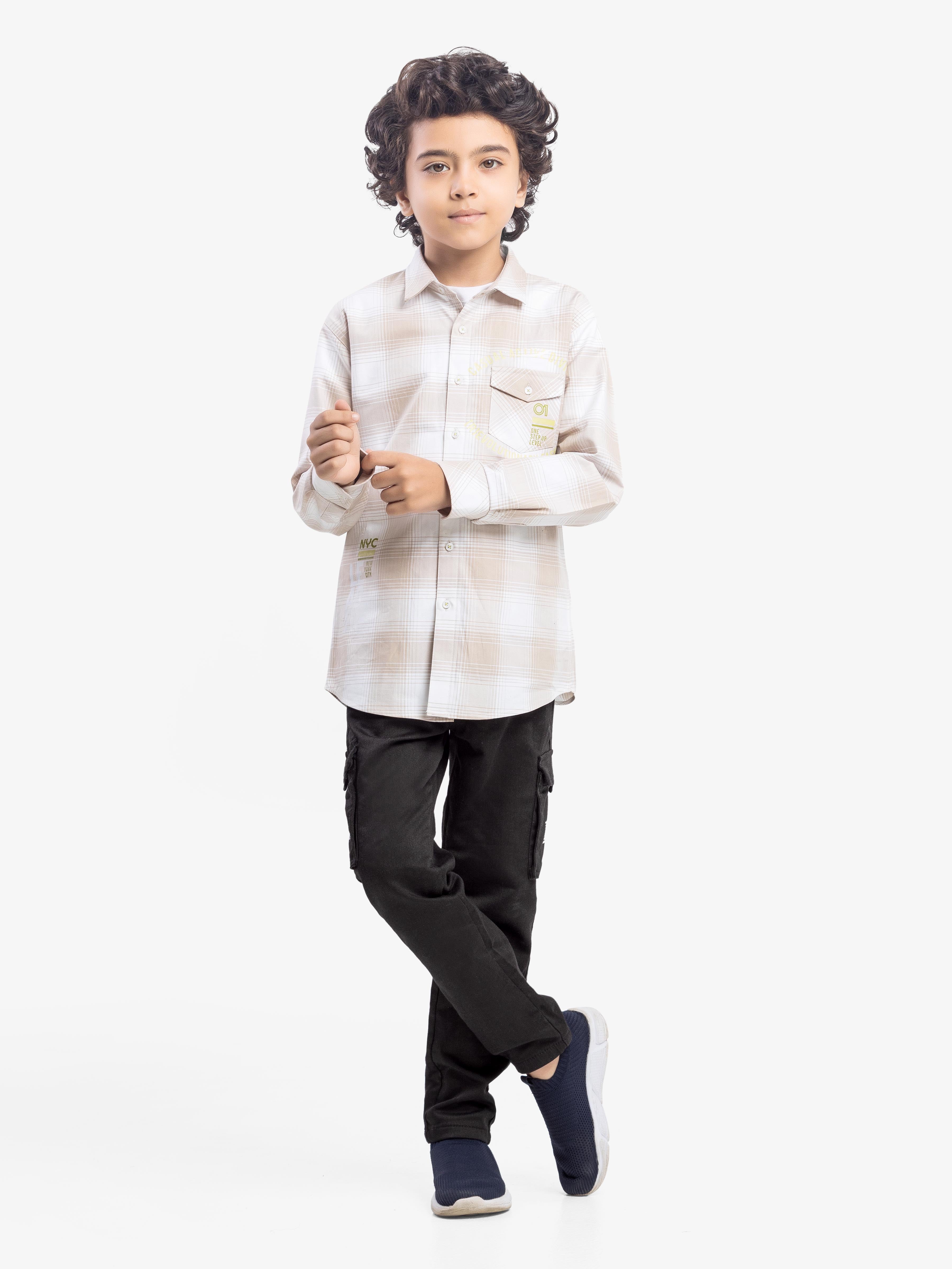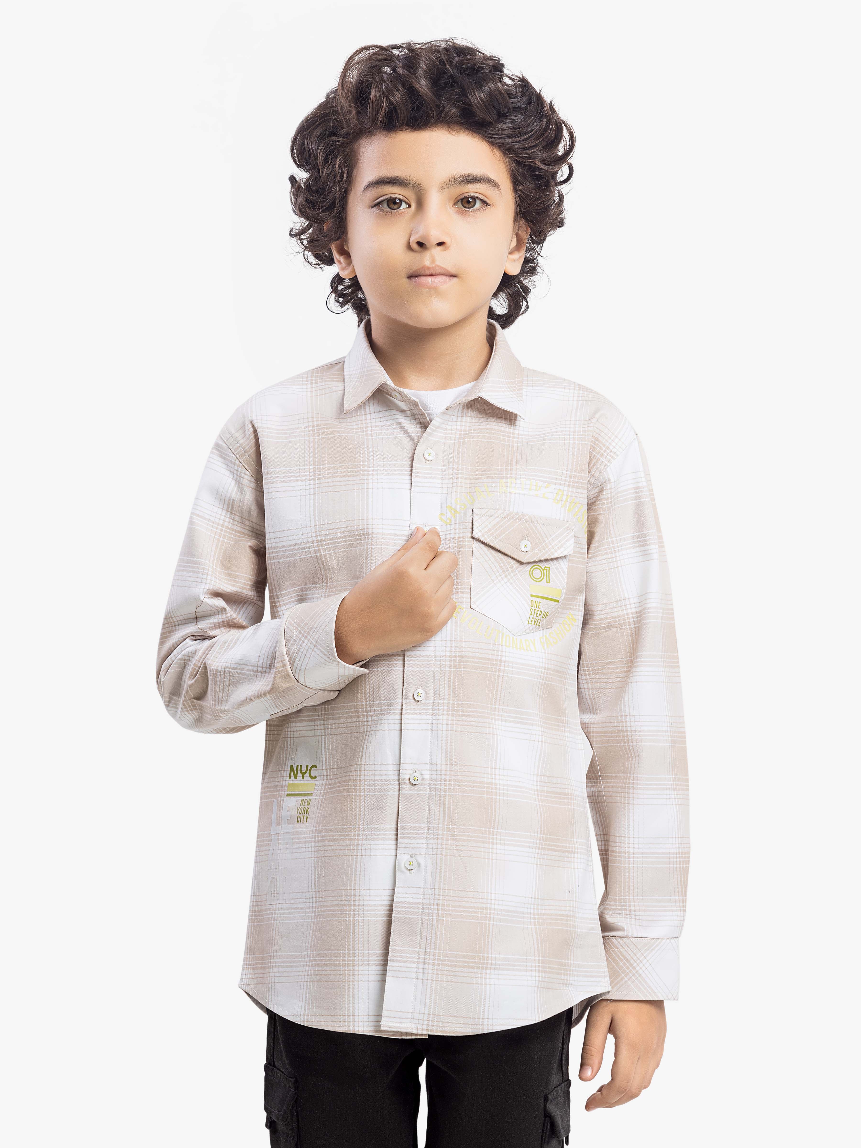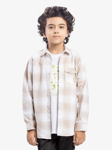 - Style: Check Shirt with Print & Pocket on Front Attached with Graphic Printed T-shirt