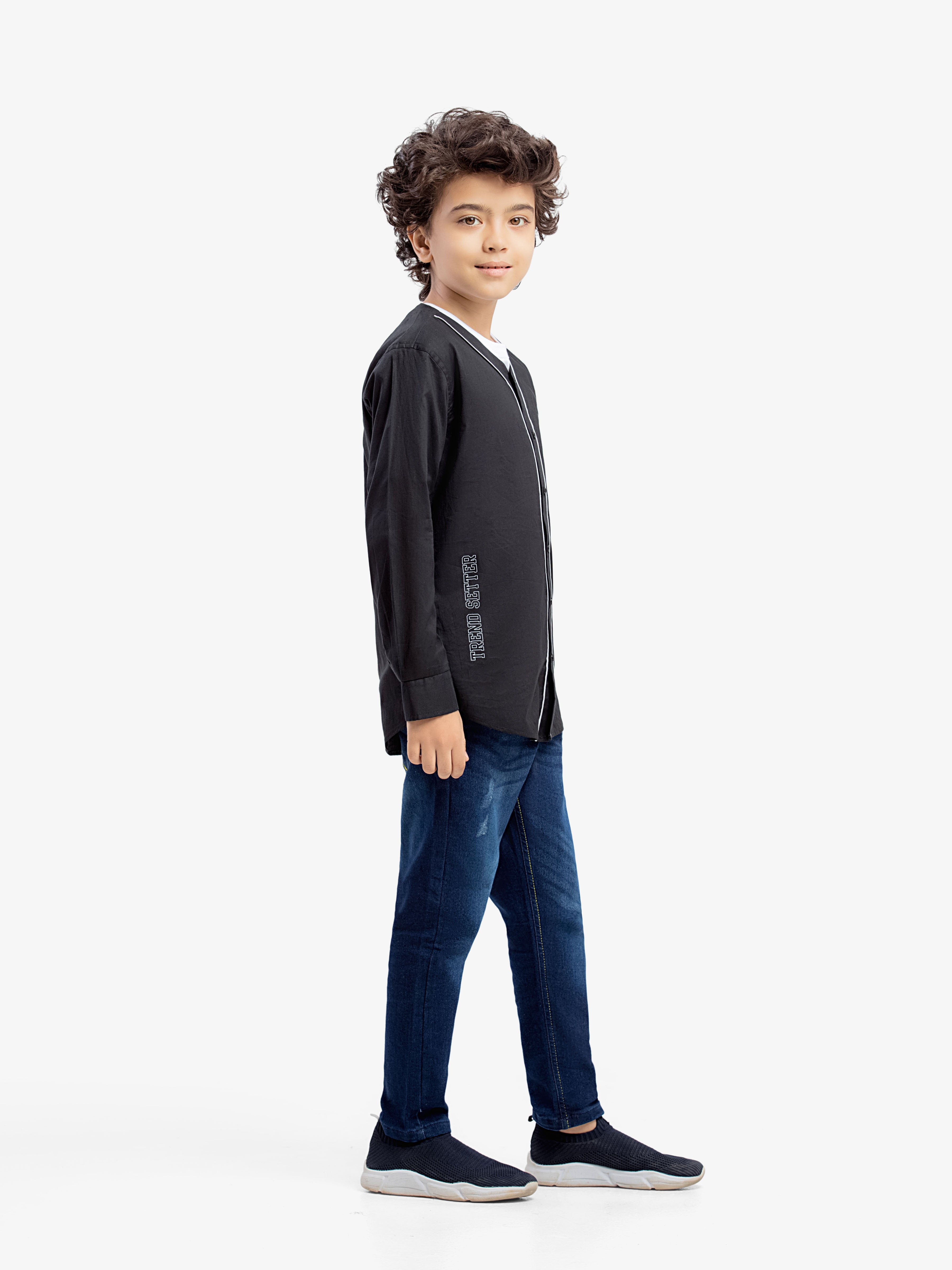 - Style: Printed Base Ball Style Shirt Added with Printed T-shirt