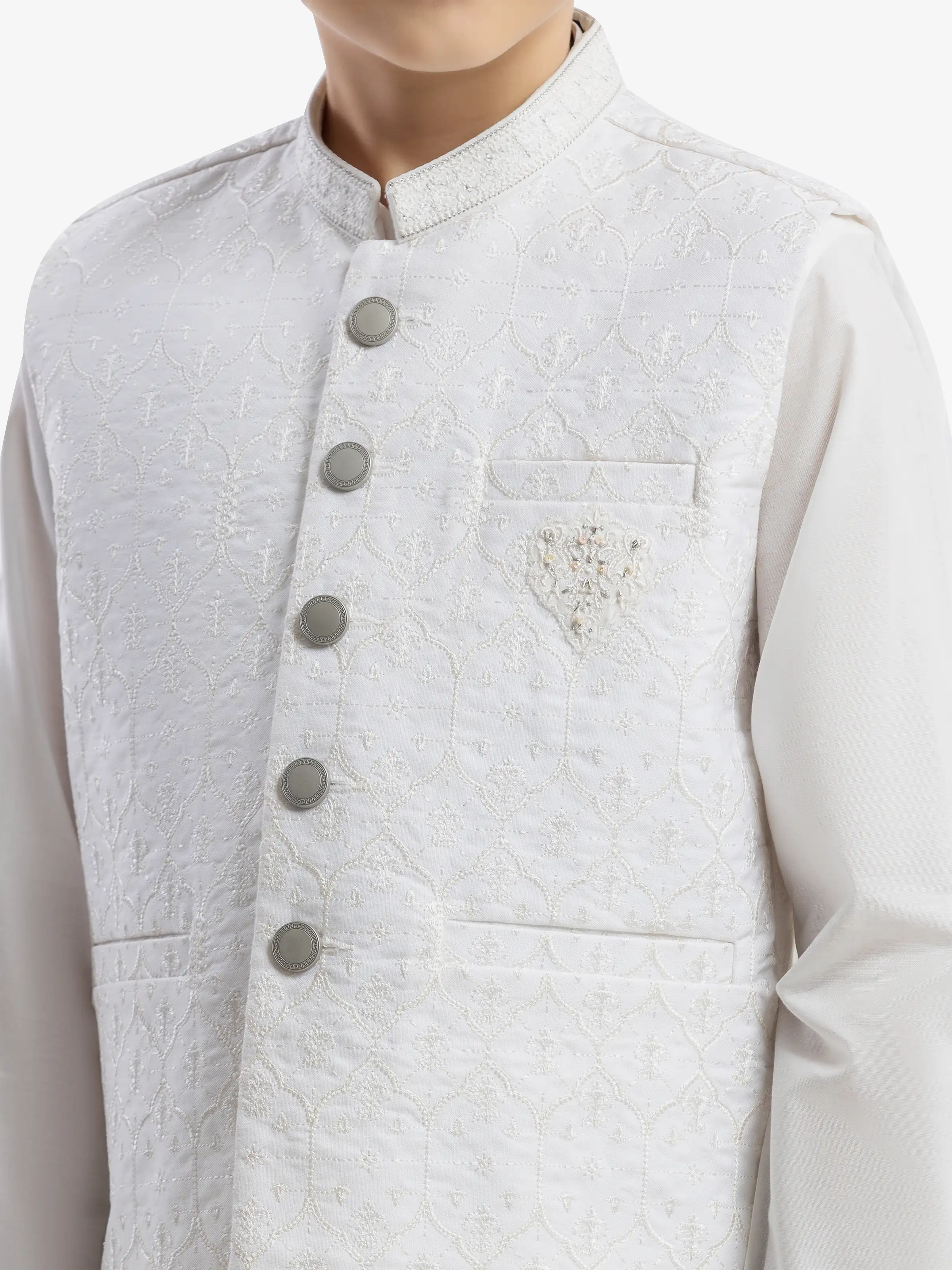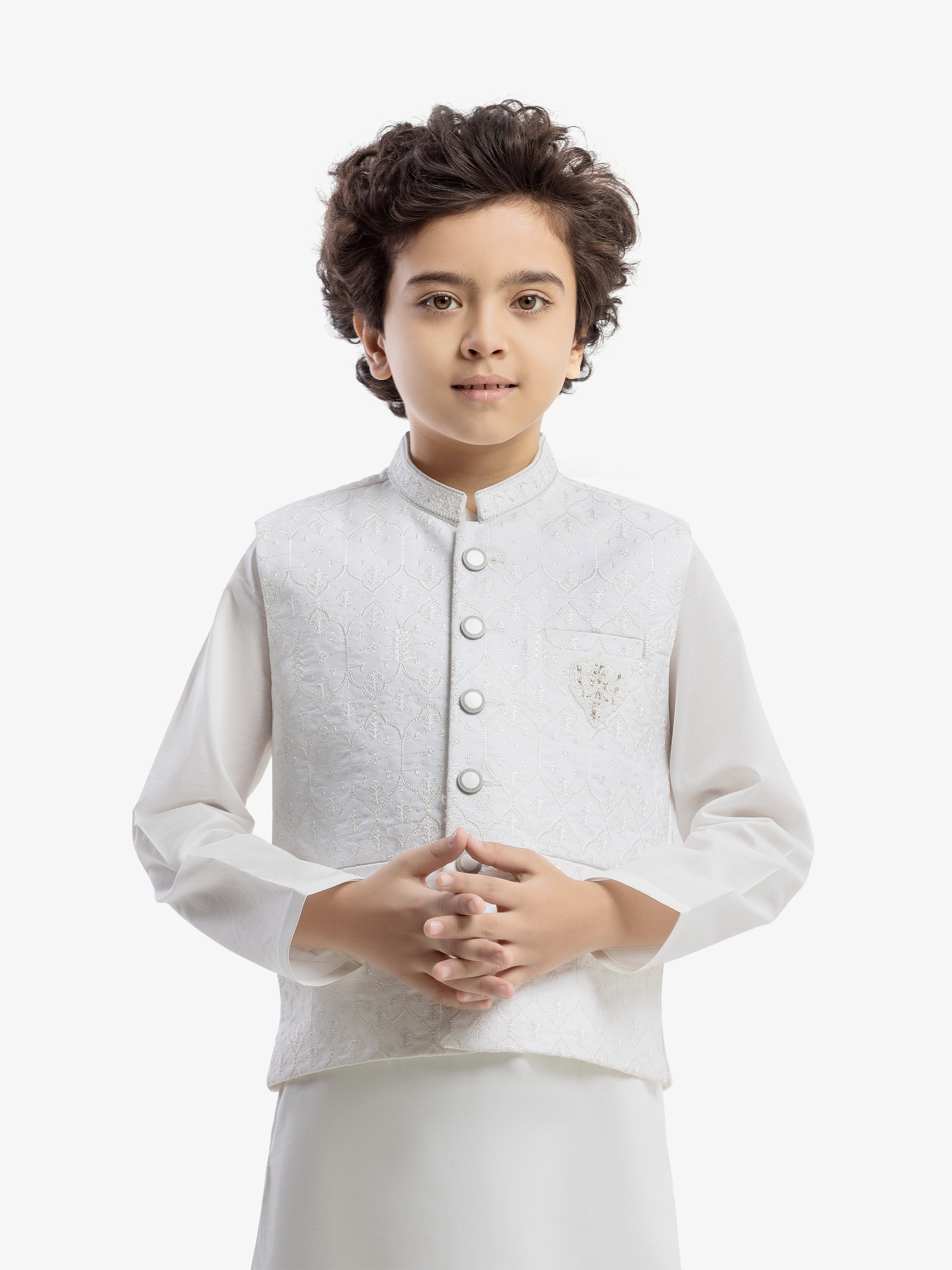 - Style: Plain Kurta with Embroidered Collar, & Placket, Embroidered Waistcoat, and Fancy Buttons