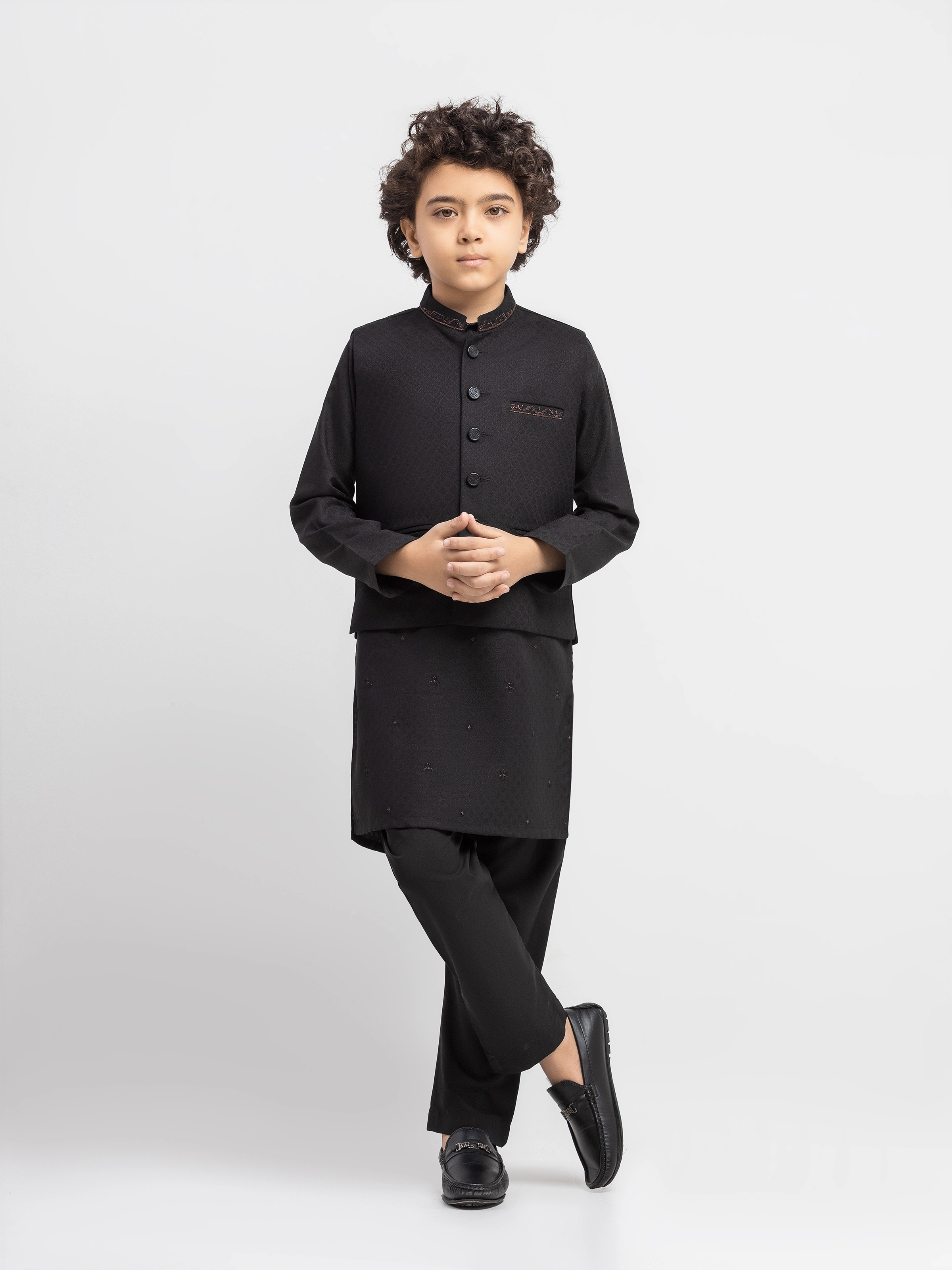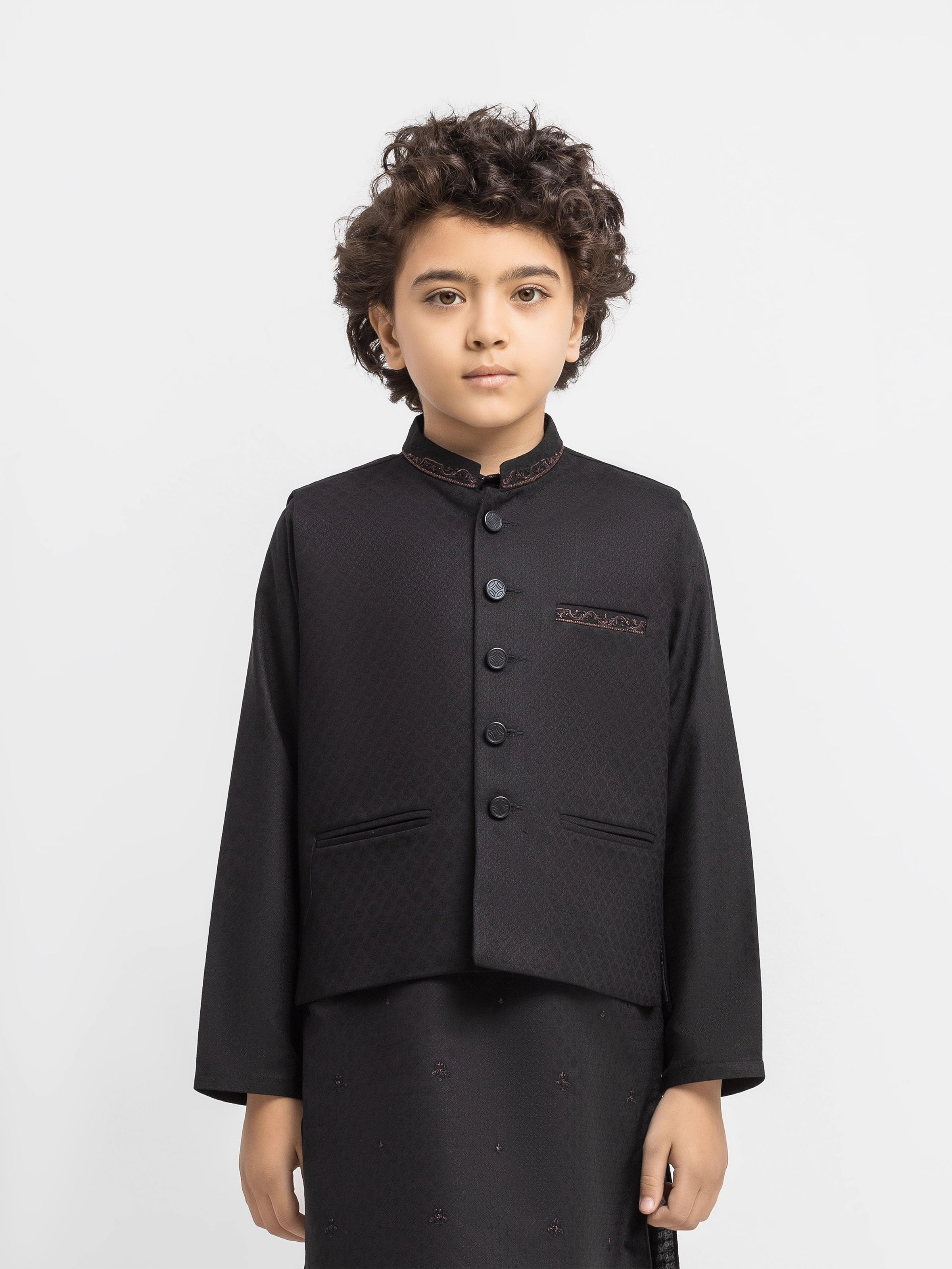 - Style: Embroidered Kurta with Textured Waistcoat with Embroidered Collar & Pocket