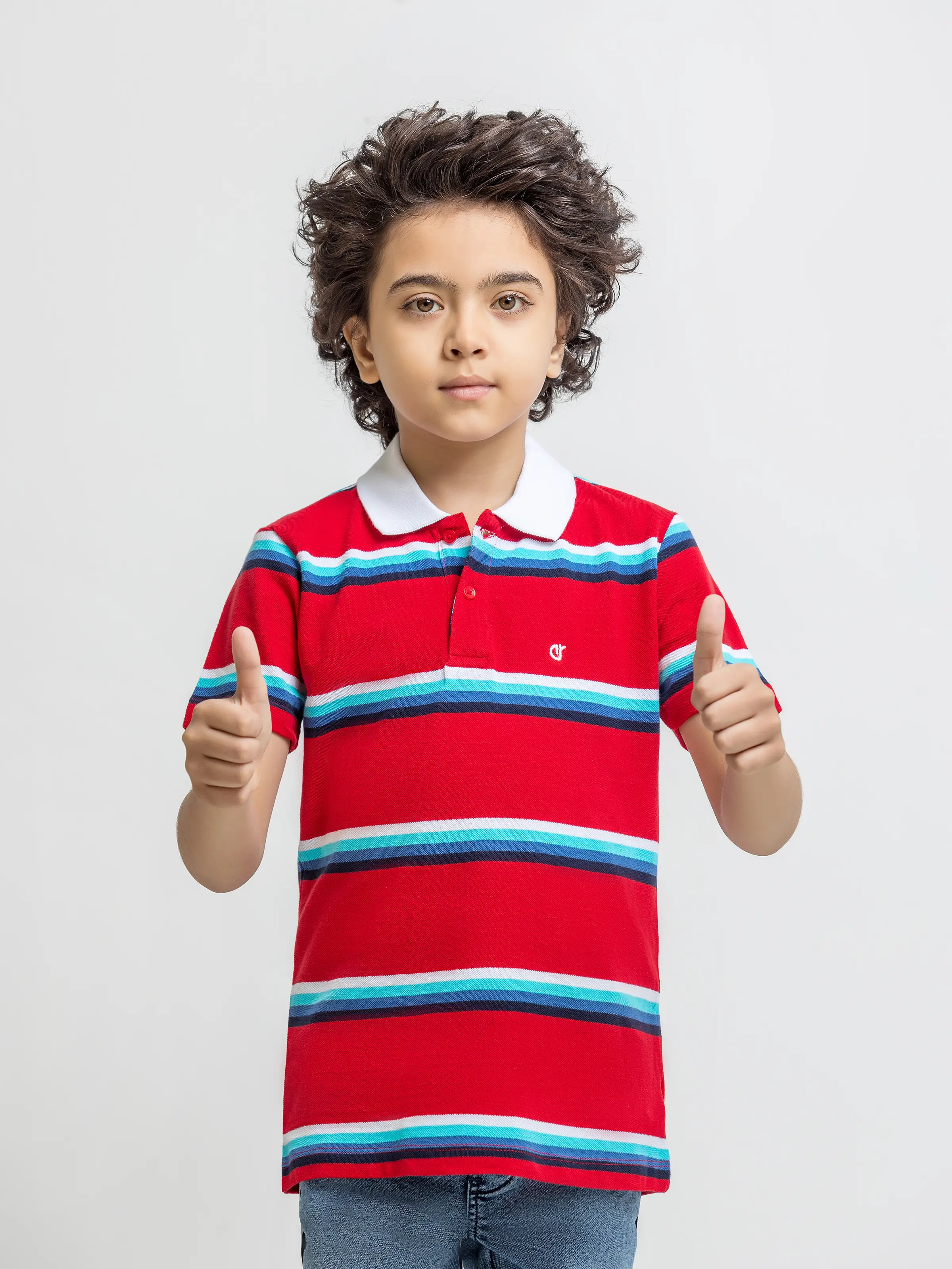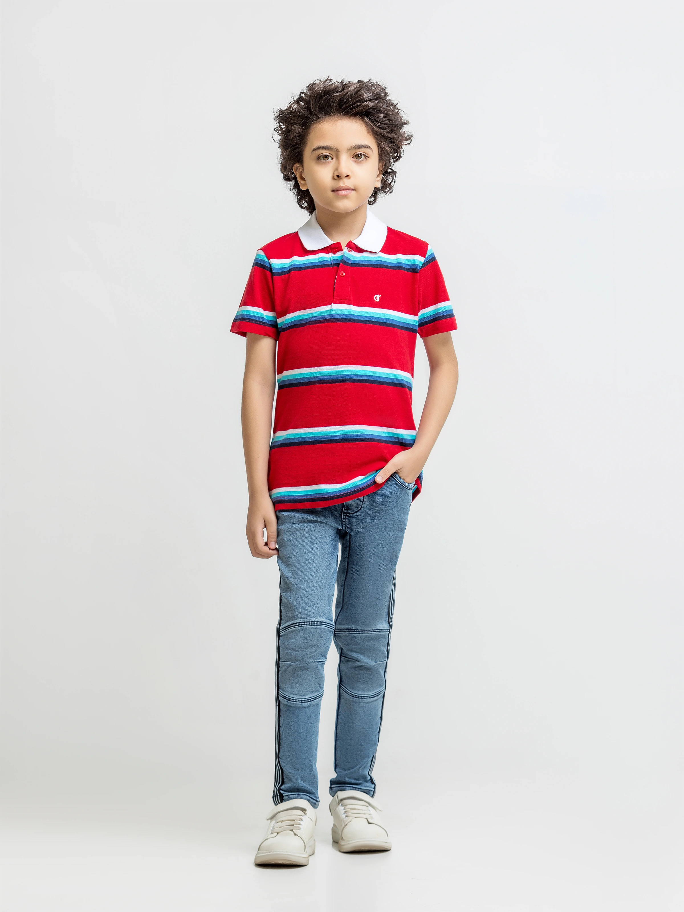 - Style: Striped Polo Shirt with Embroidered Logo on Front