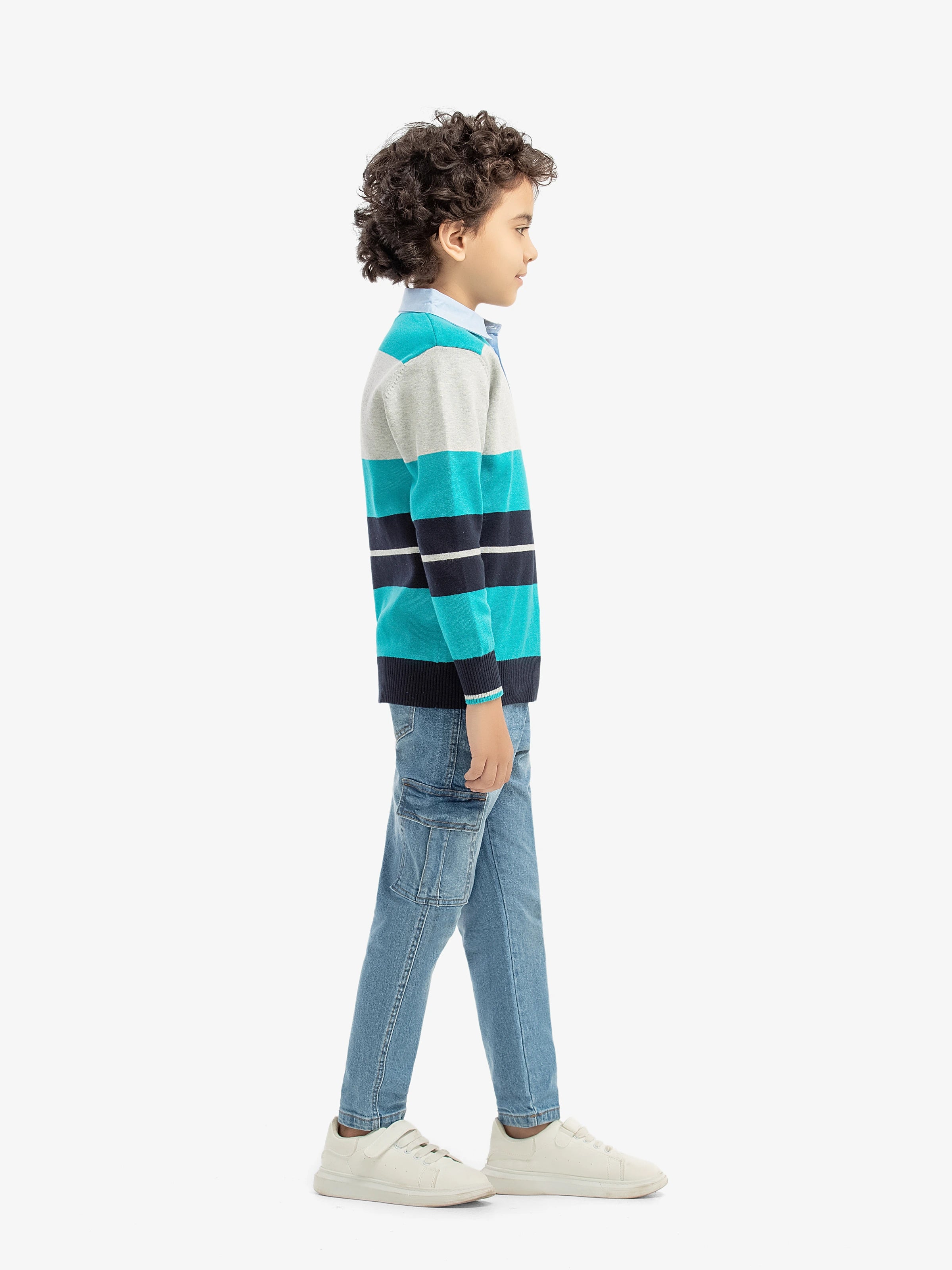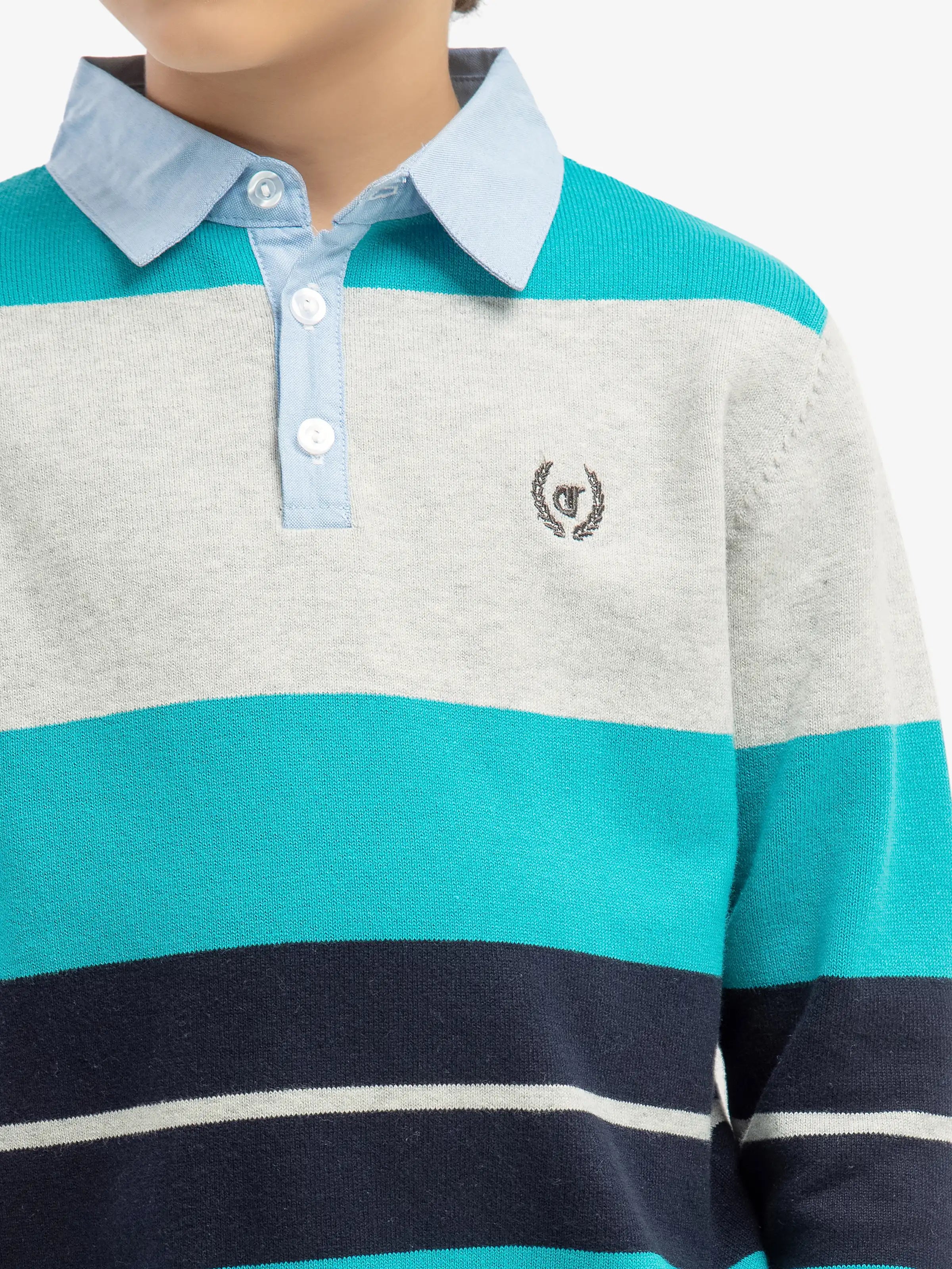 - Style: Long Sleeves Textured Fabric Sweater with Embroidered Logo on Chest & Polo Collar