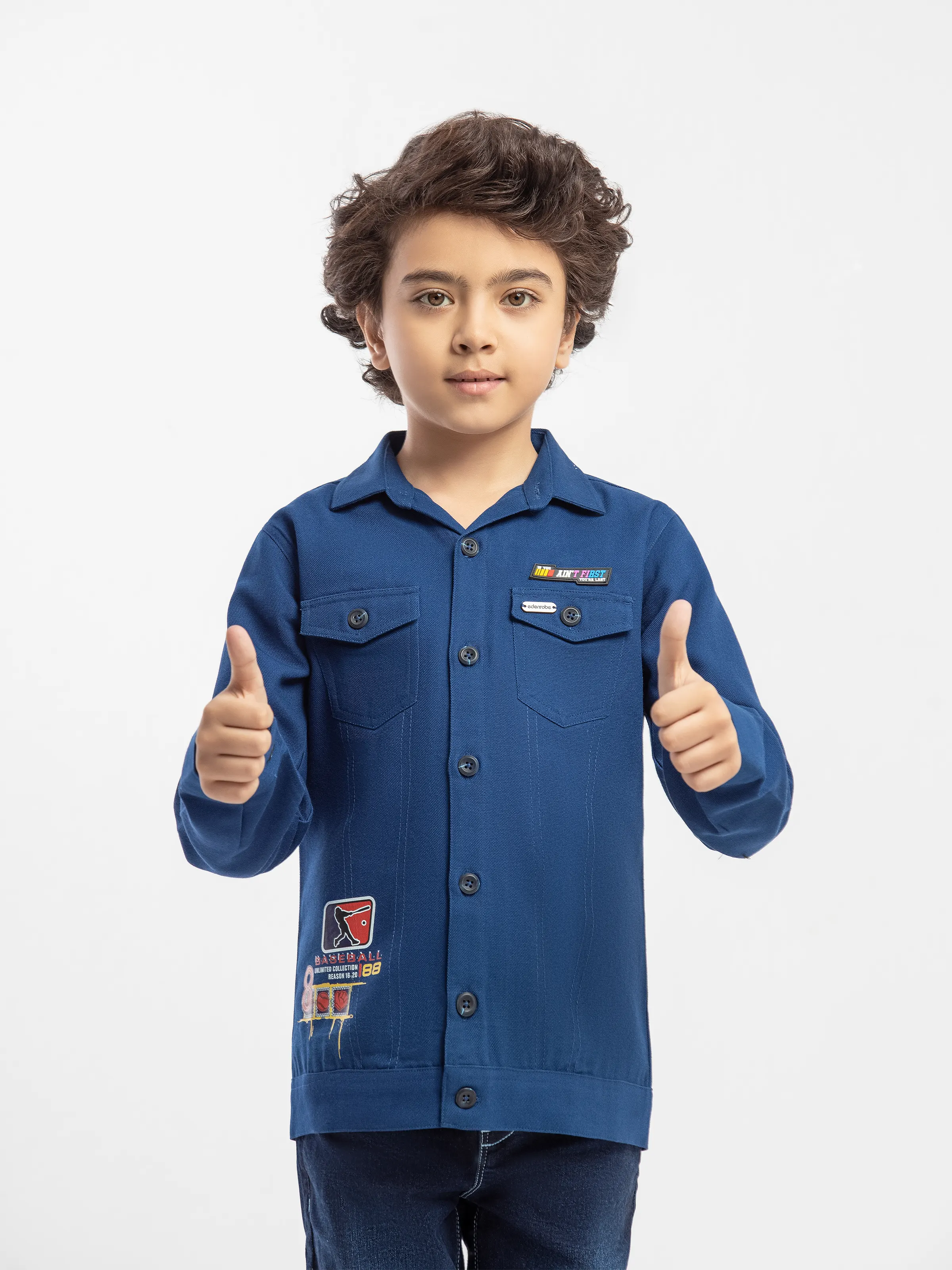 • Style: Printed Shacket with Pockets & Rubber Patch on Front