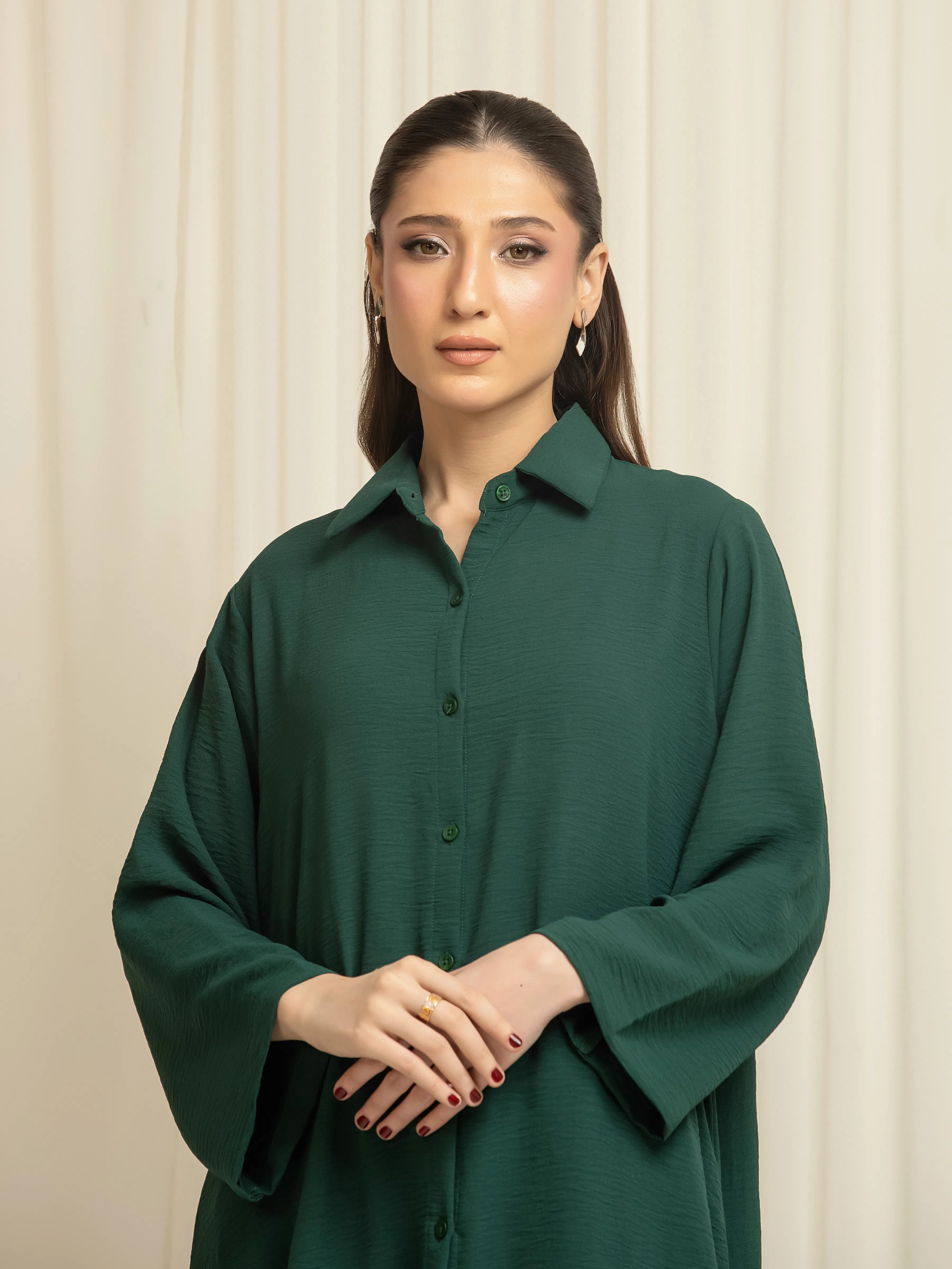 • Style: Plain Shirt with Formal Collar & Embellished Buttons on Front