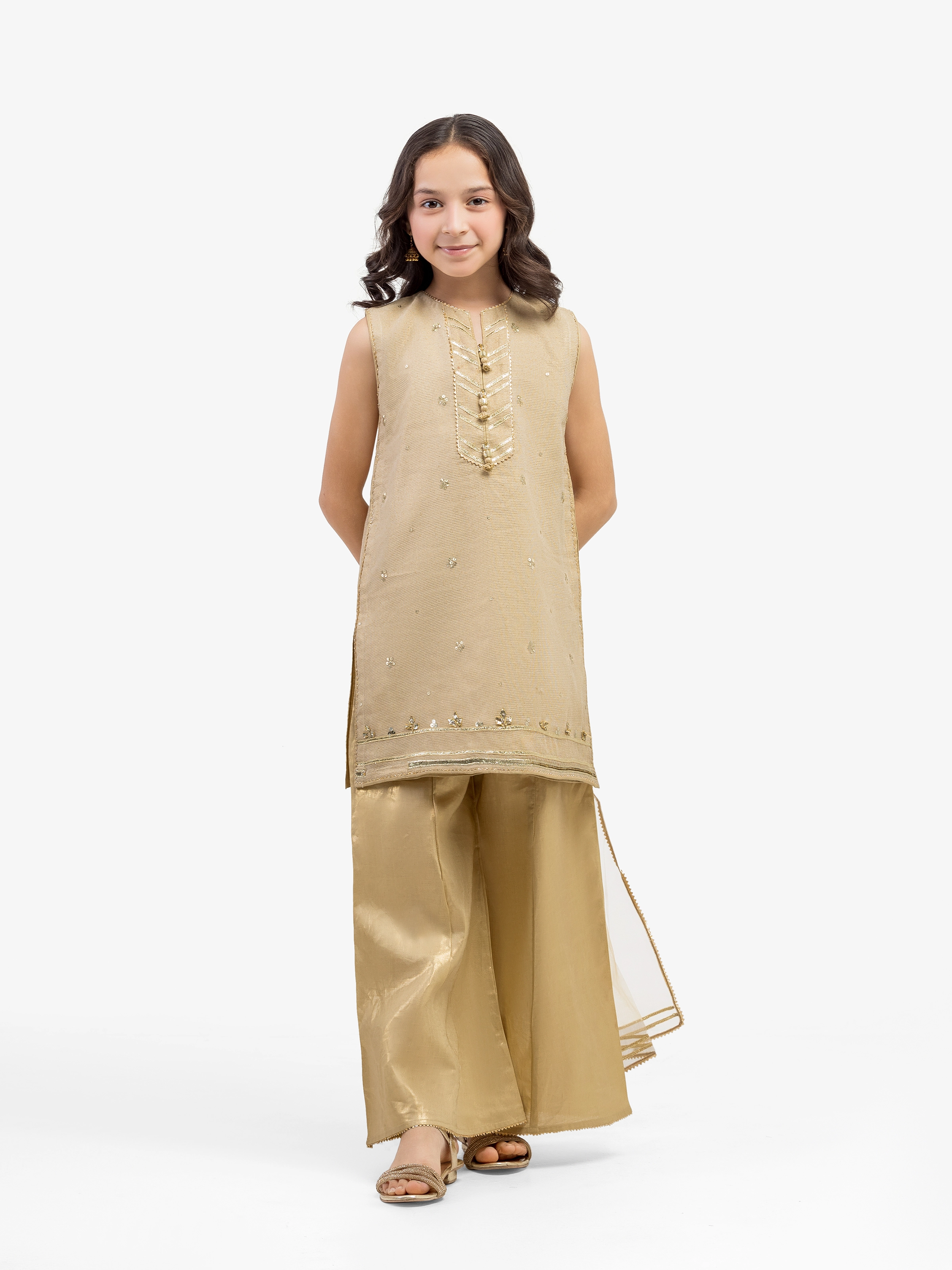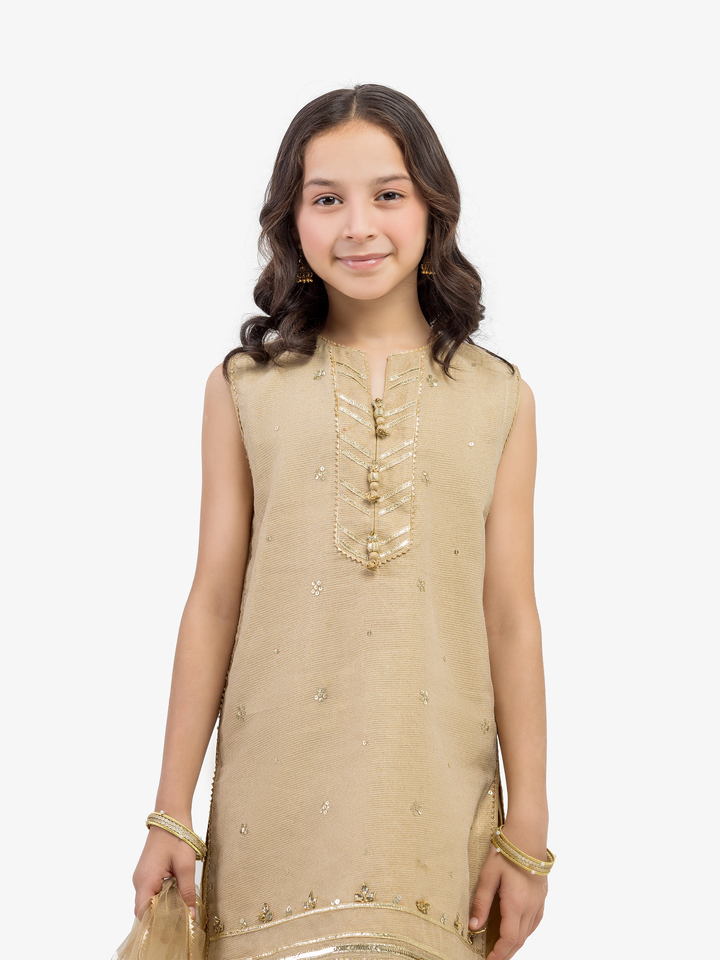 Style: Embroidered Shirt with Embellished Placket Having Separate Attached Sleeves & Inner Used Inside