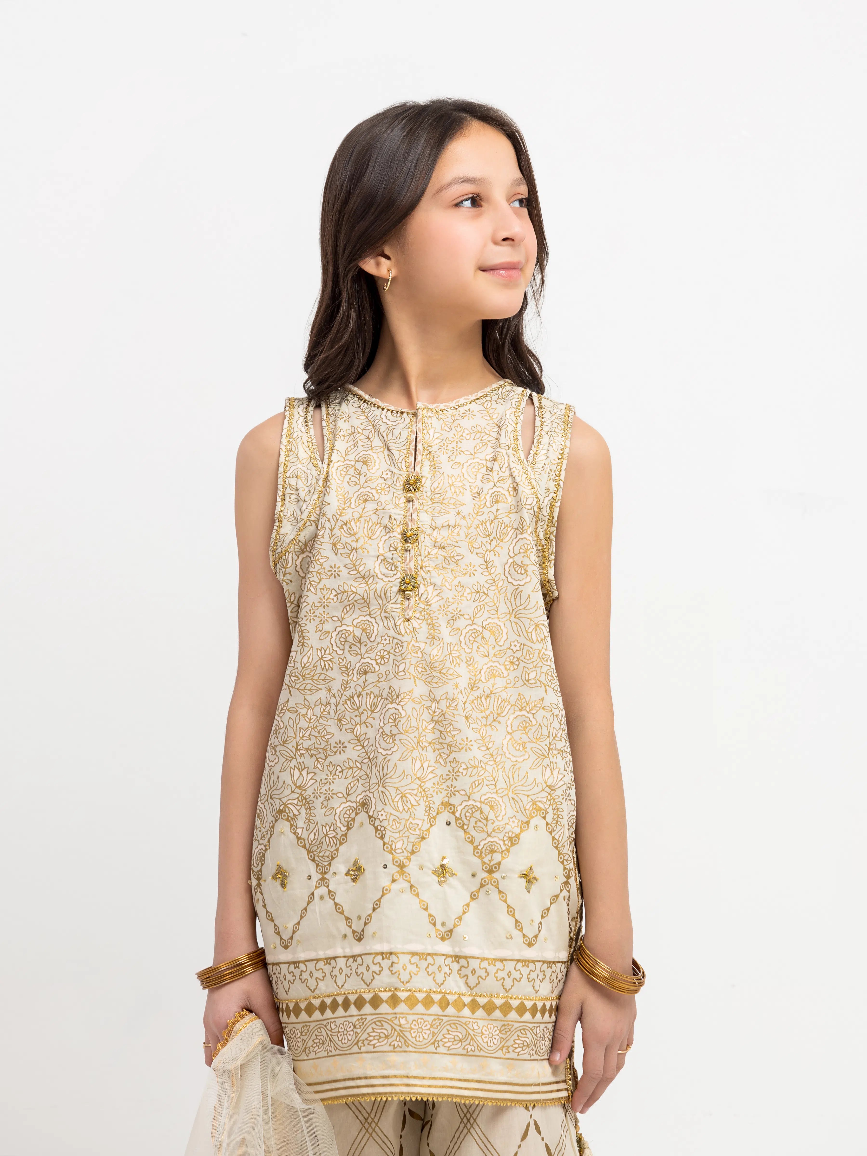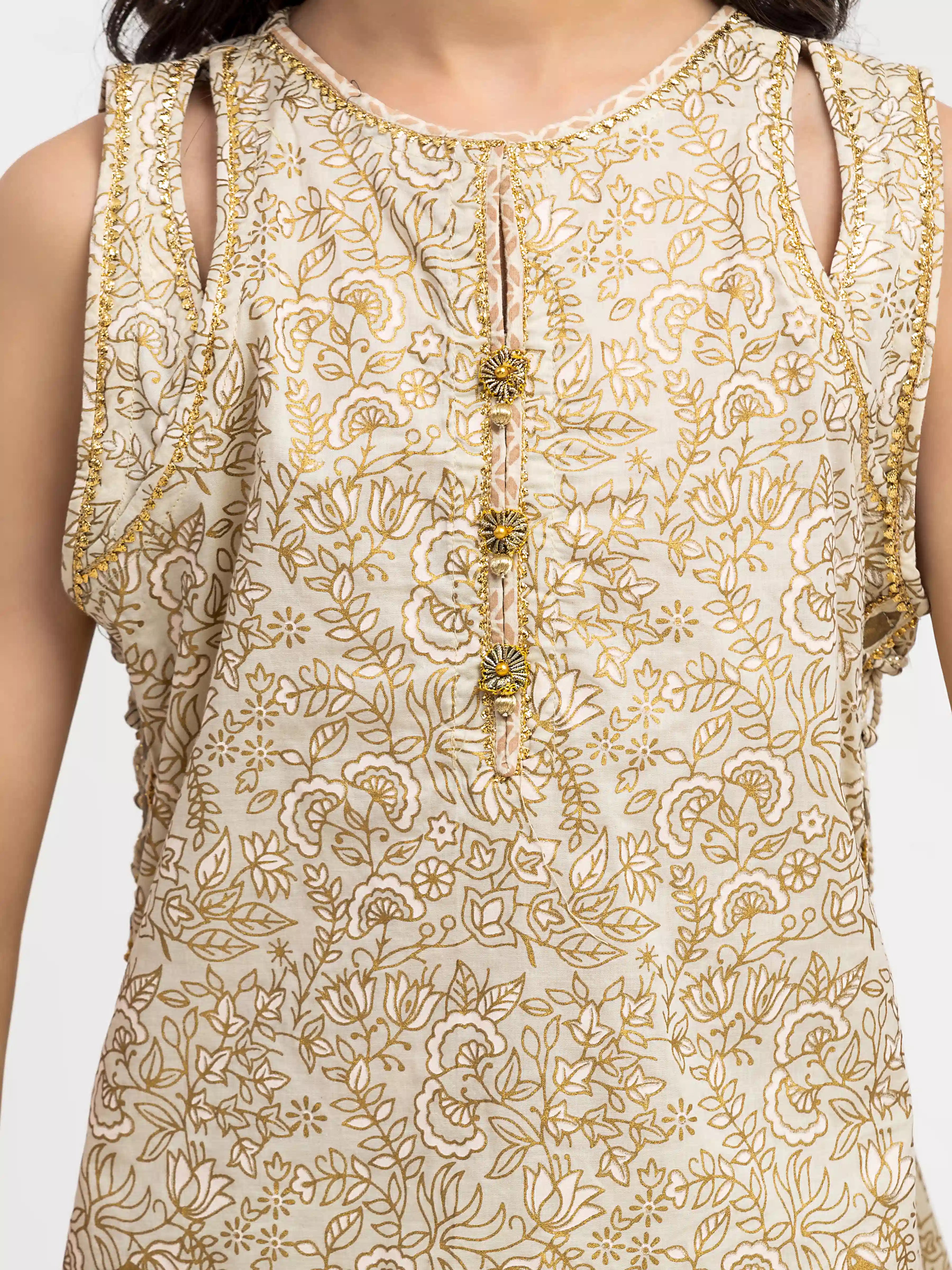 • Style: Block Printed Shirt with Tassel Dori on Chalk & Separate Sleeves are Attached