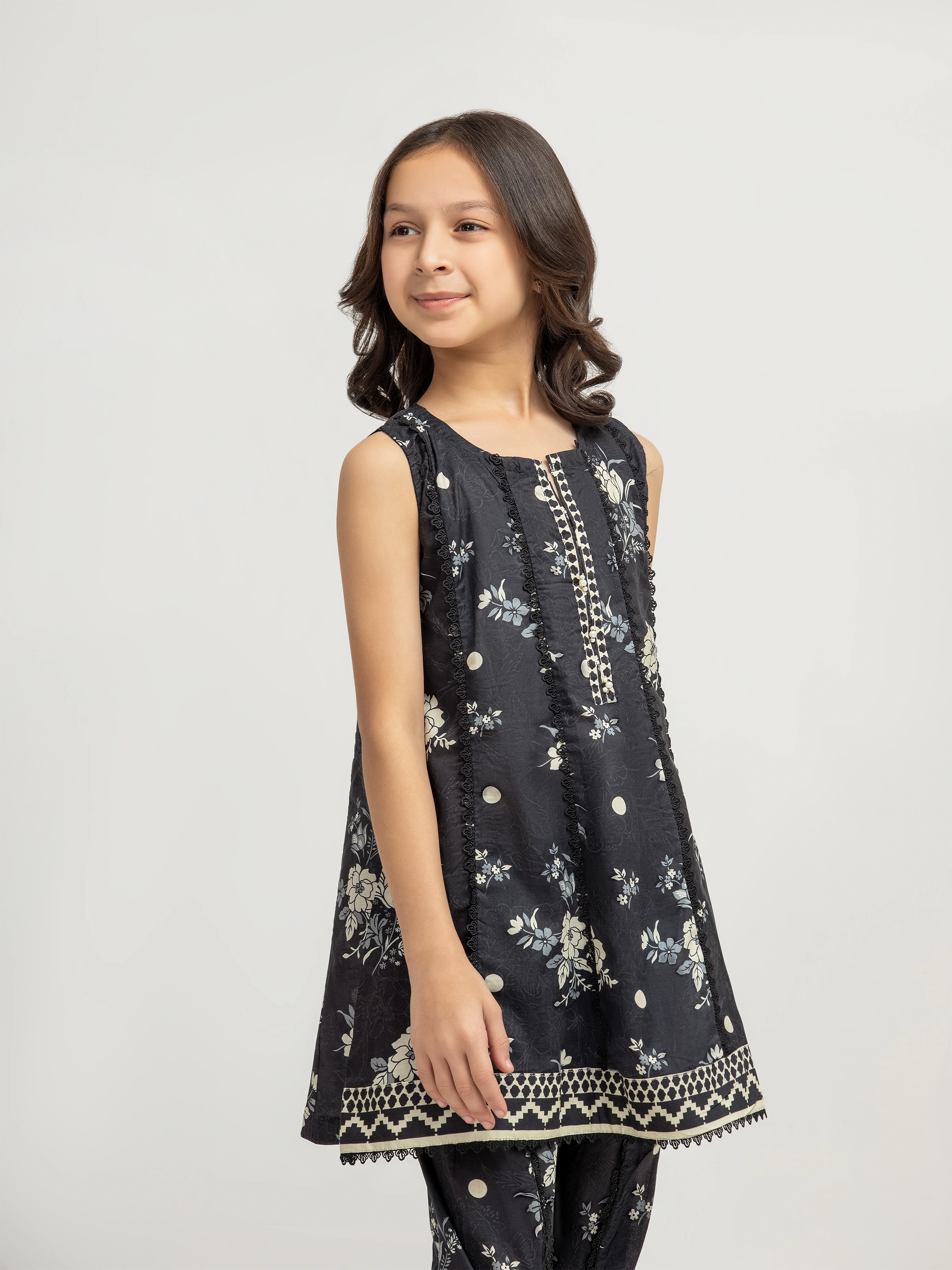 • Style: Floral Printed Shirt with Embellished Placket & Lace Detailing, and Separate Sleeves are Attached