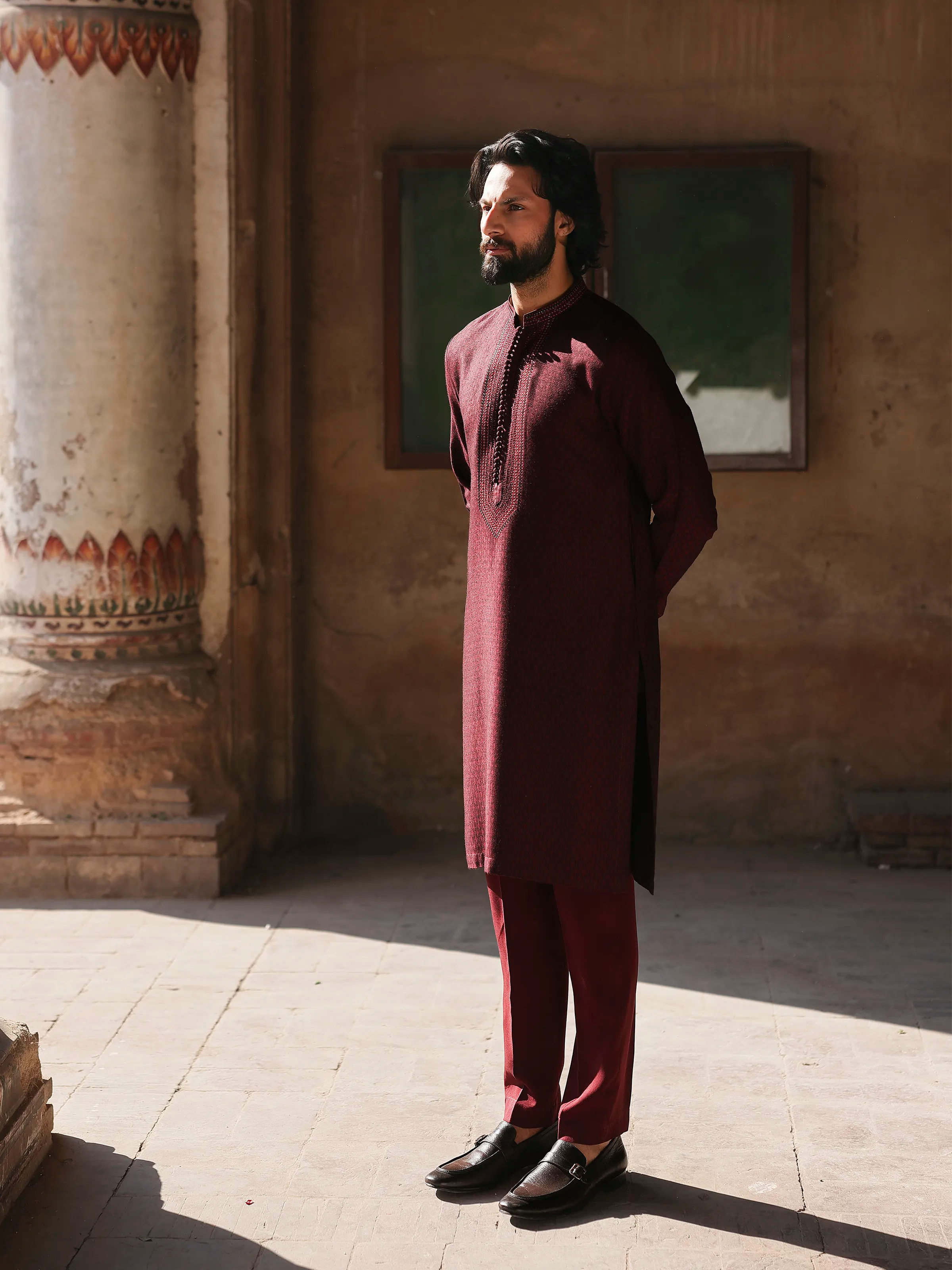 - Style: Embroidered Kurta with Band Collar