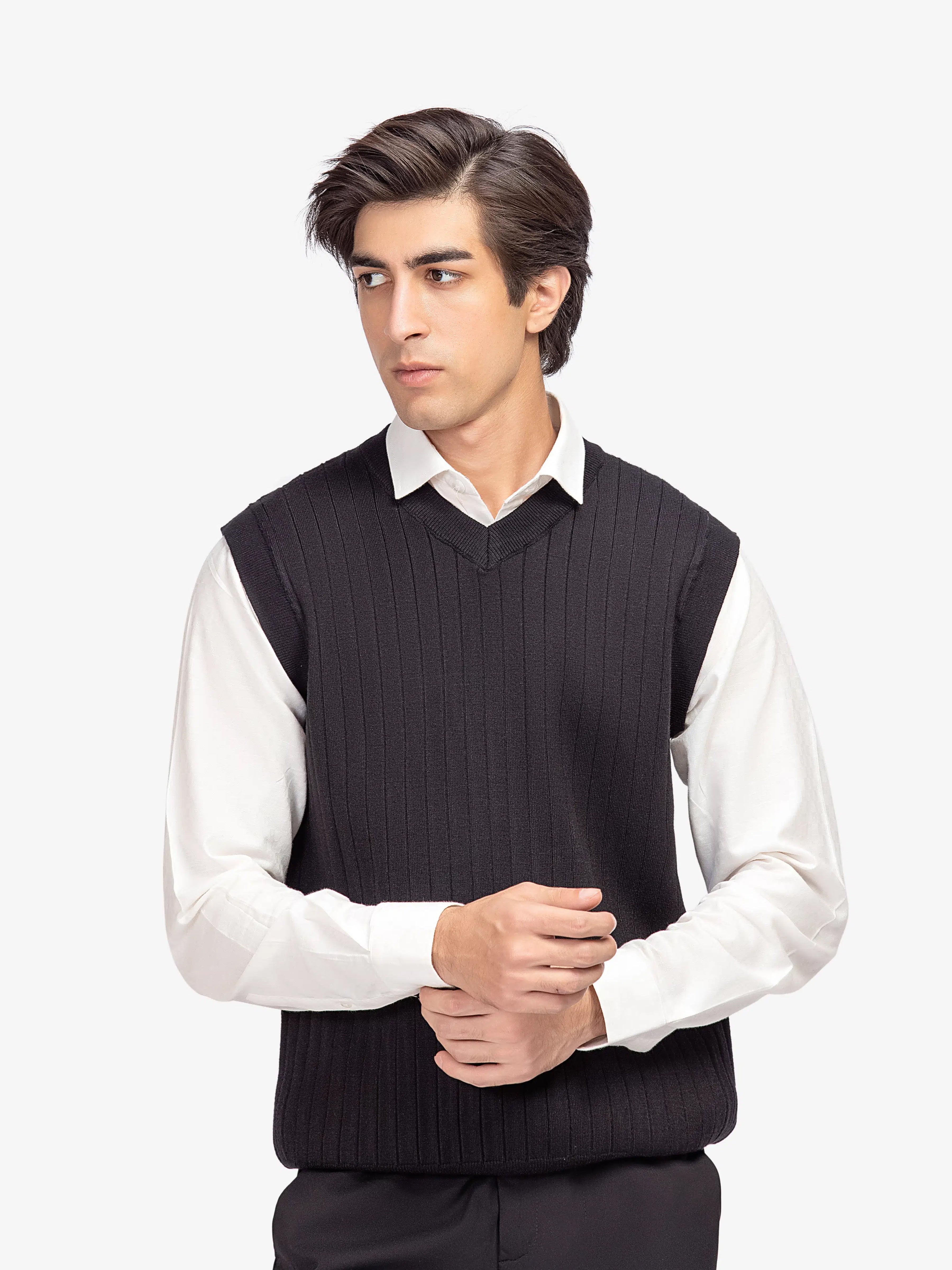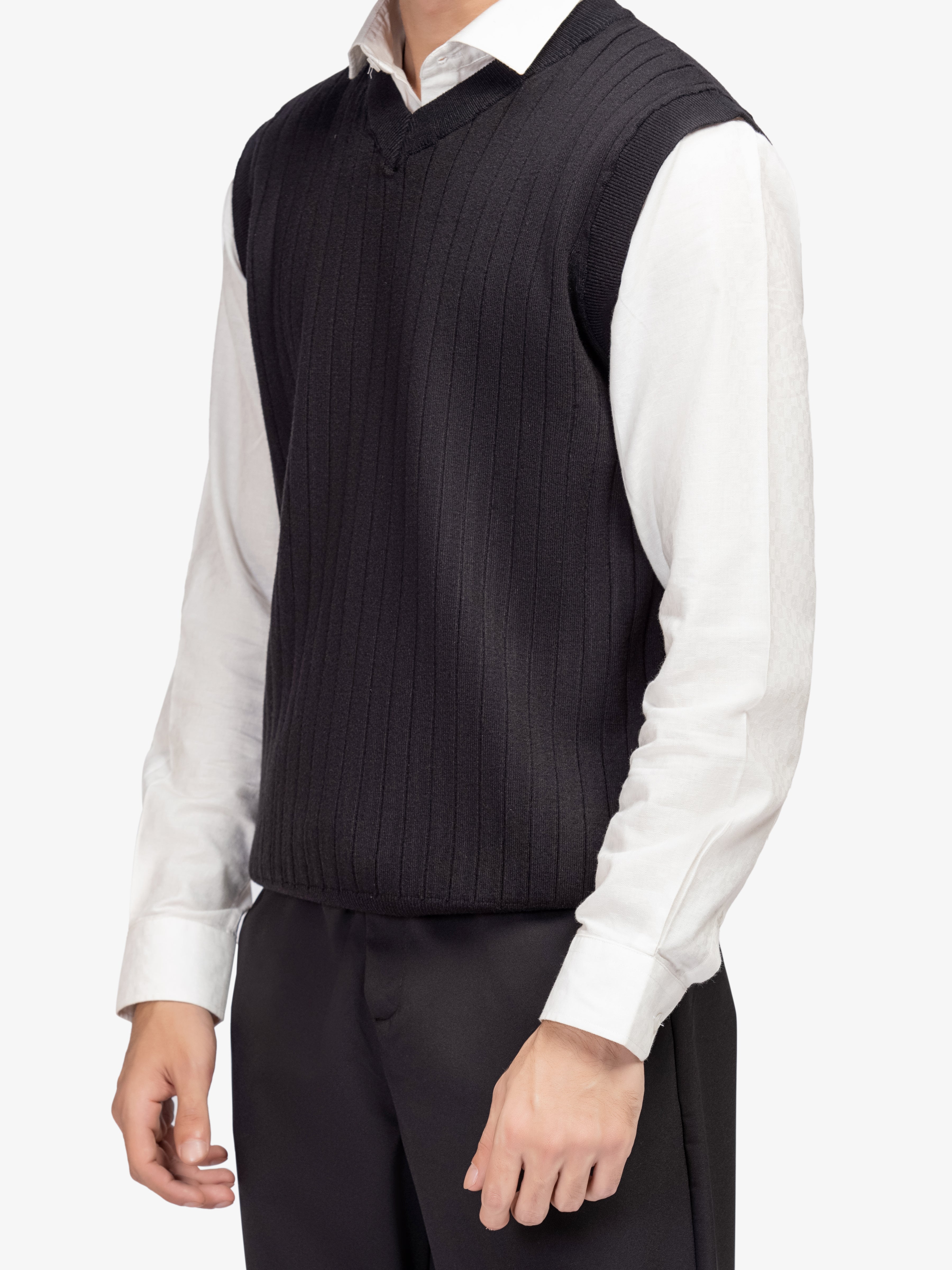 - Style: Sleeveless Sweater with V-neck & Drop Needle Texture Finish