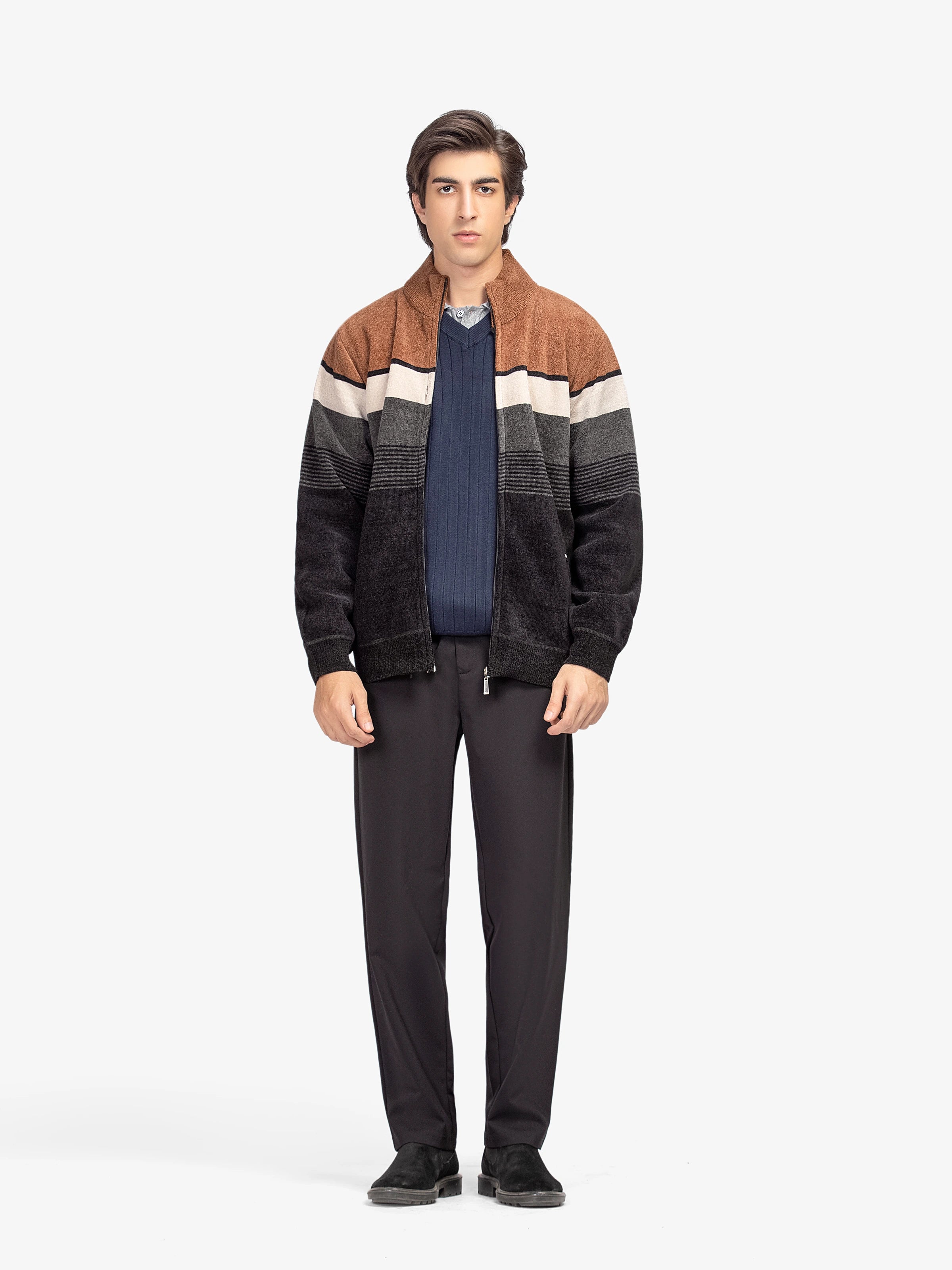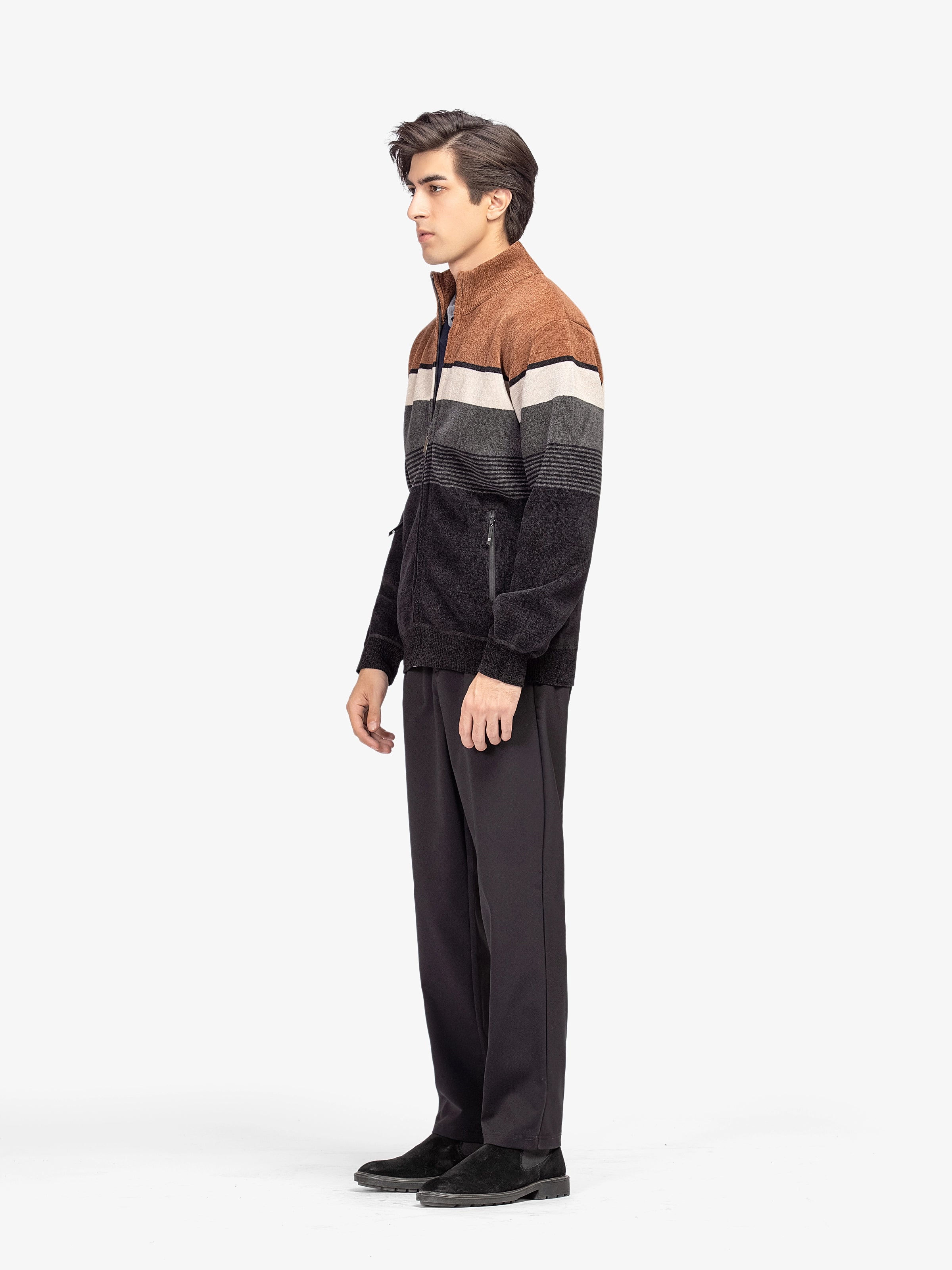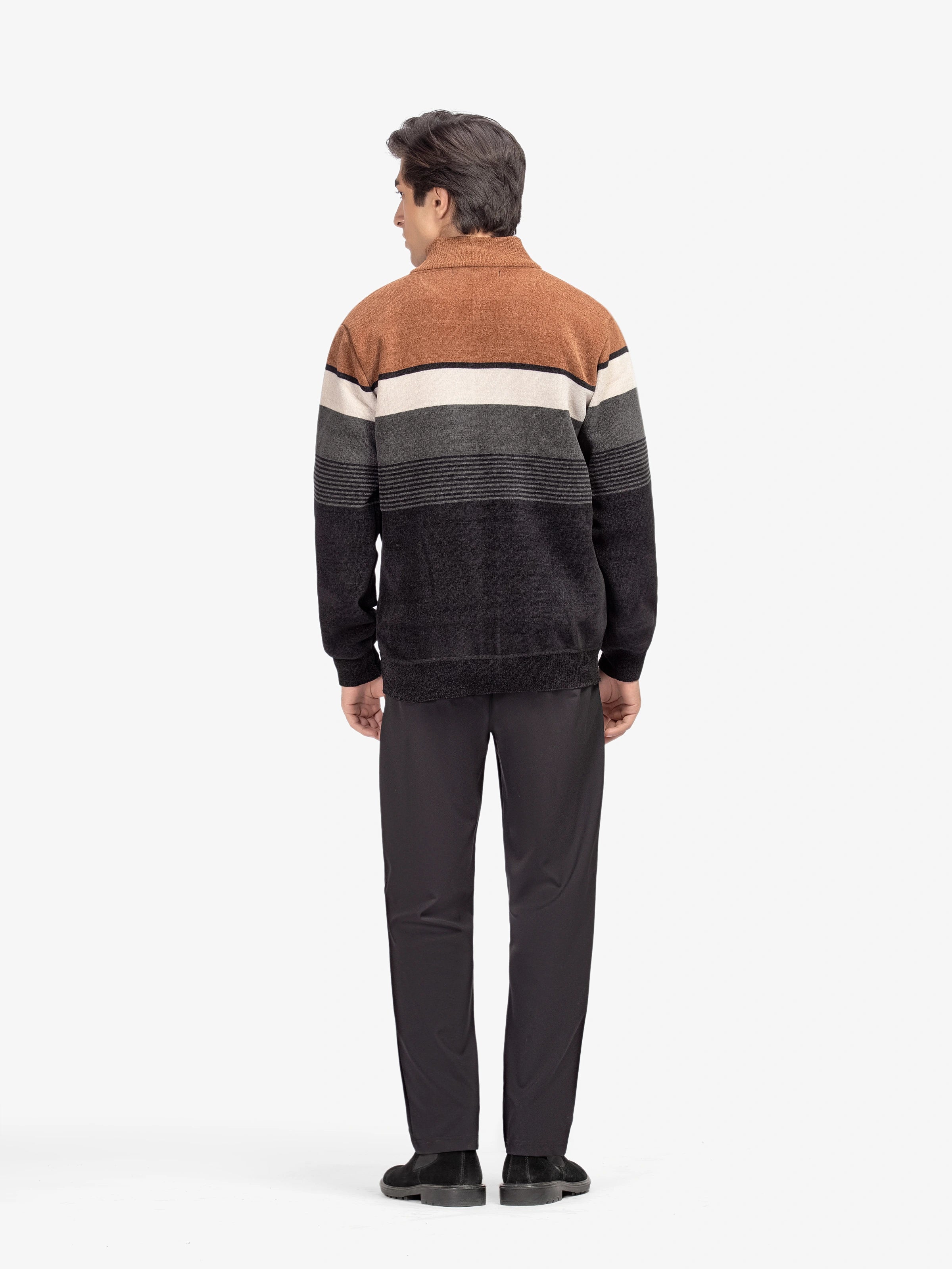 - Style: Textured Fabric Long Sleeves Mock Neck Sweater with Front Zipper Opening & 2 Pockets on It