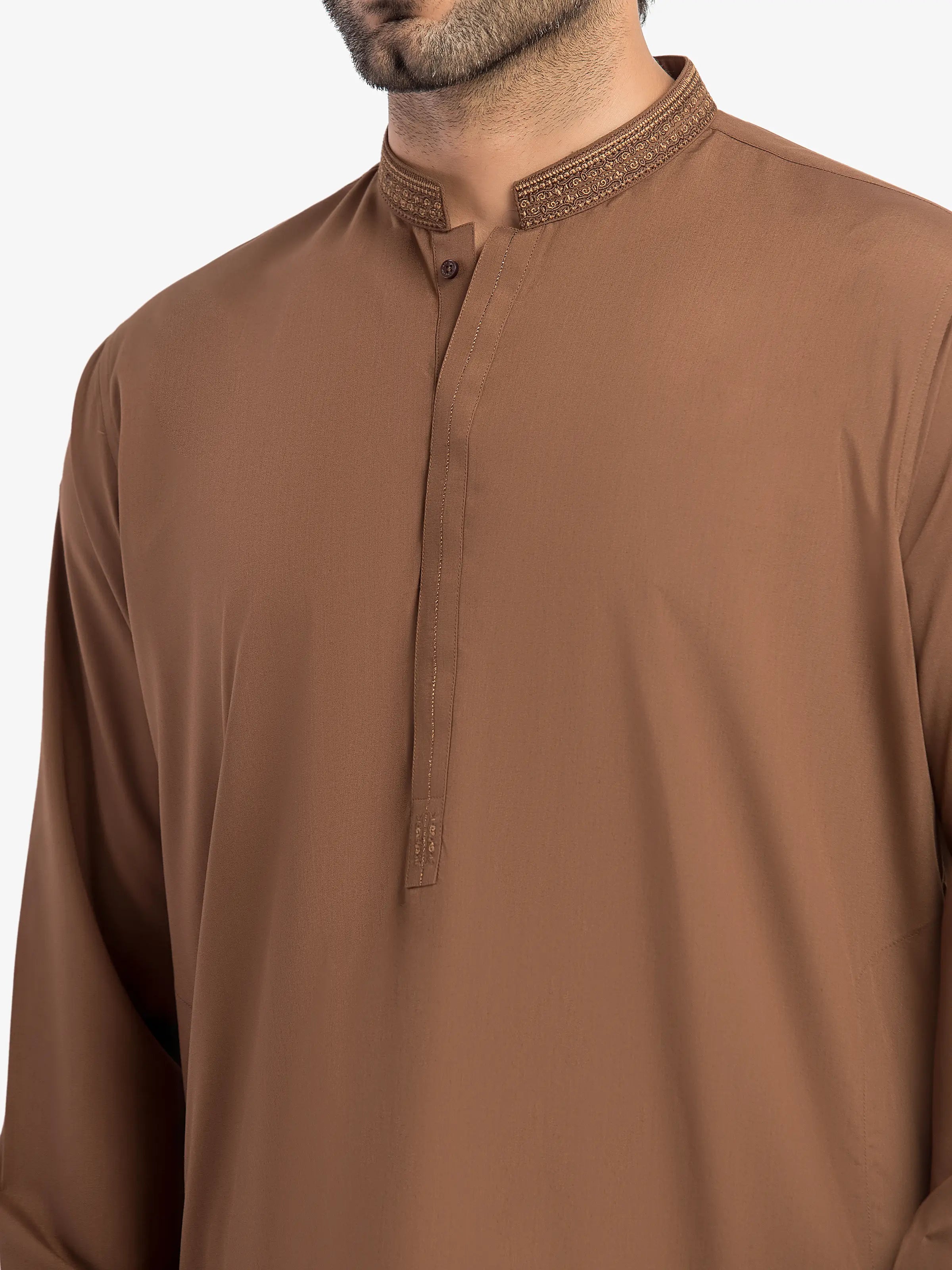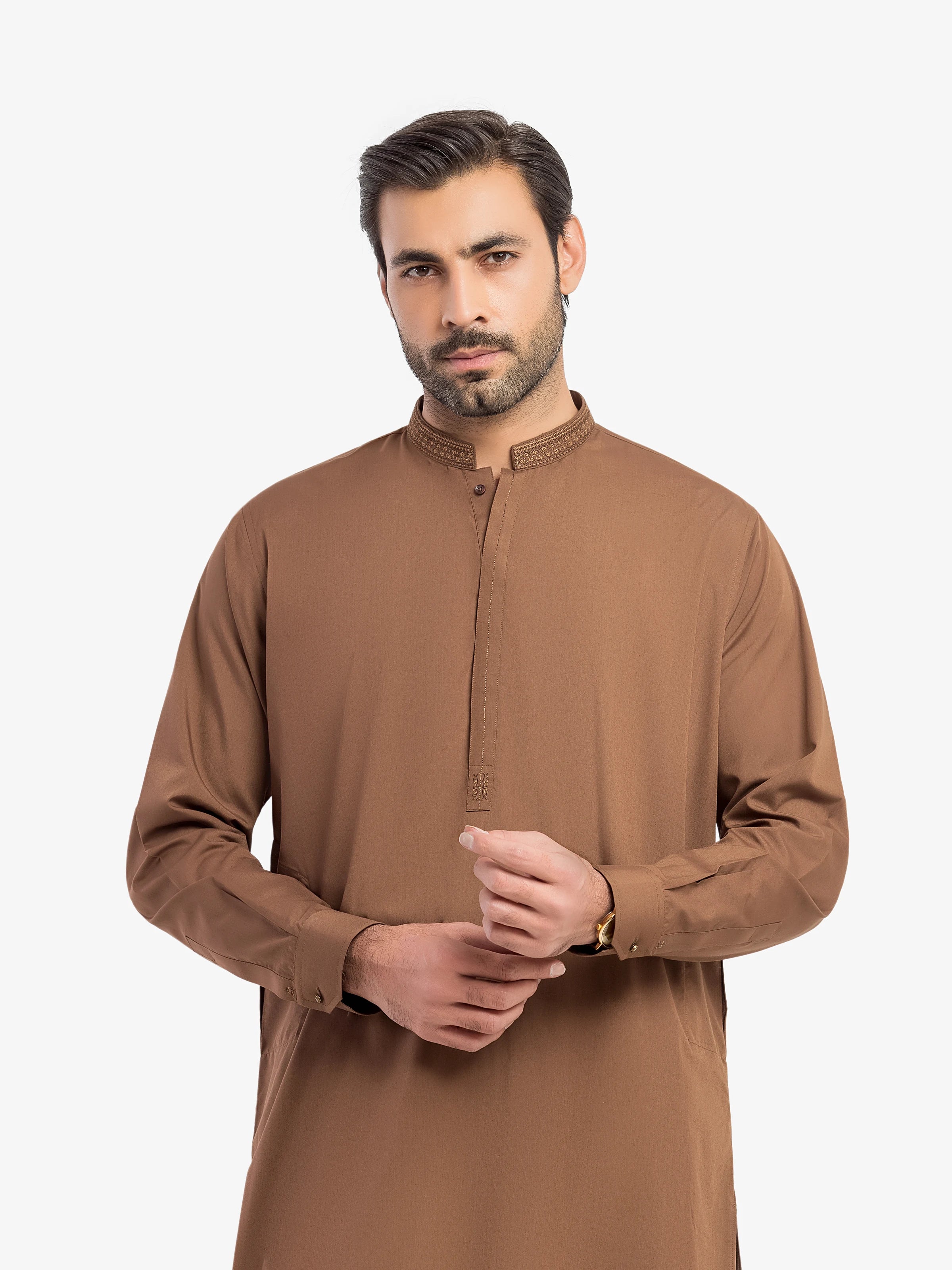- Style: Embroidered Kurta with Band Collar