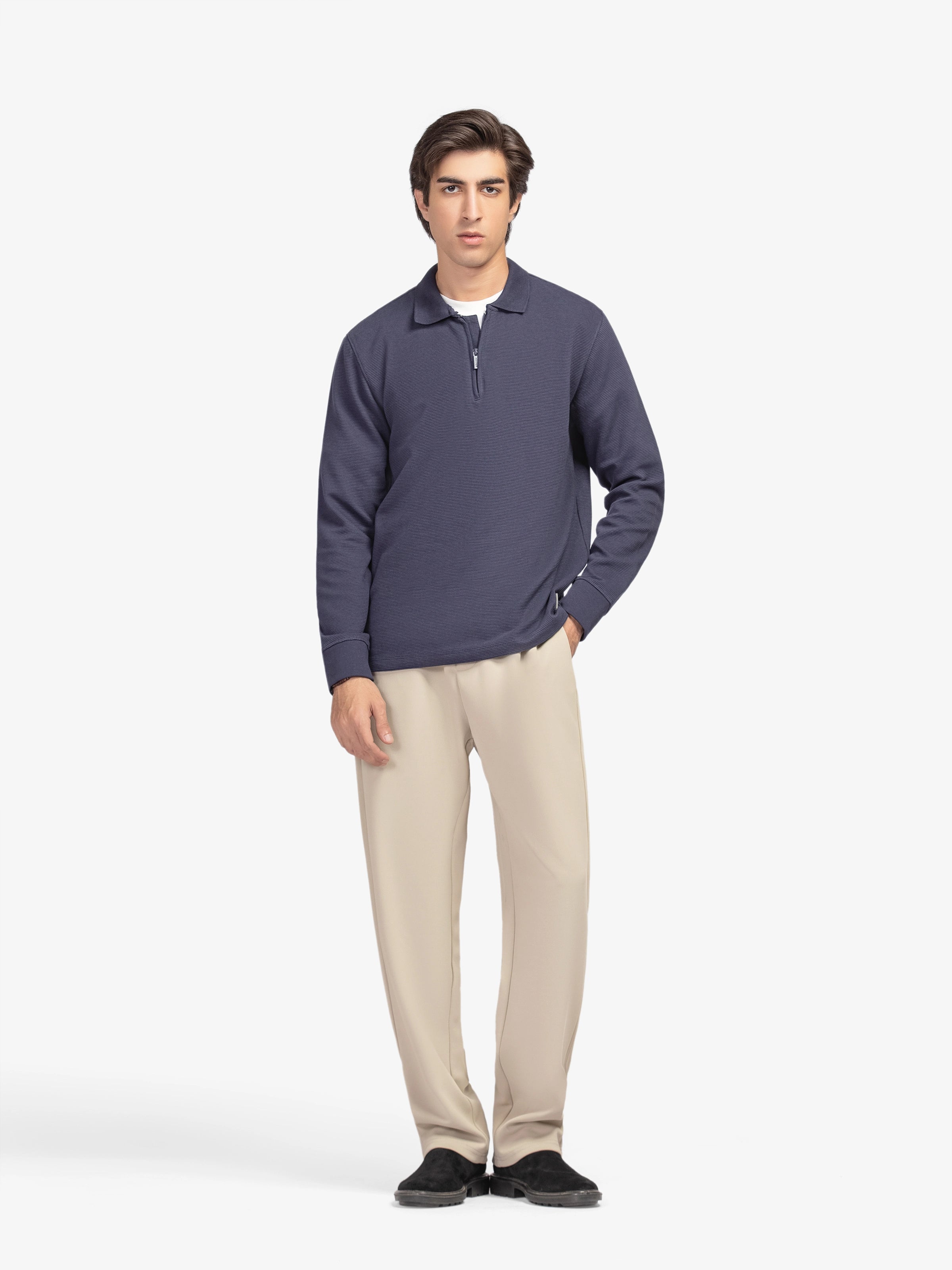 - Style: Plain Polo Shirt with Zip on Front and Patch on Bottom