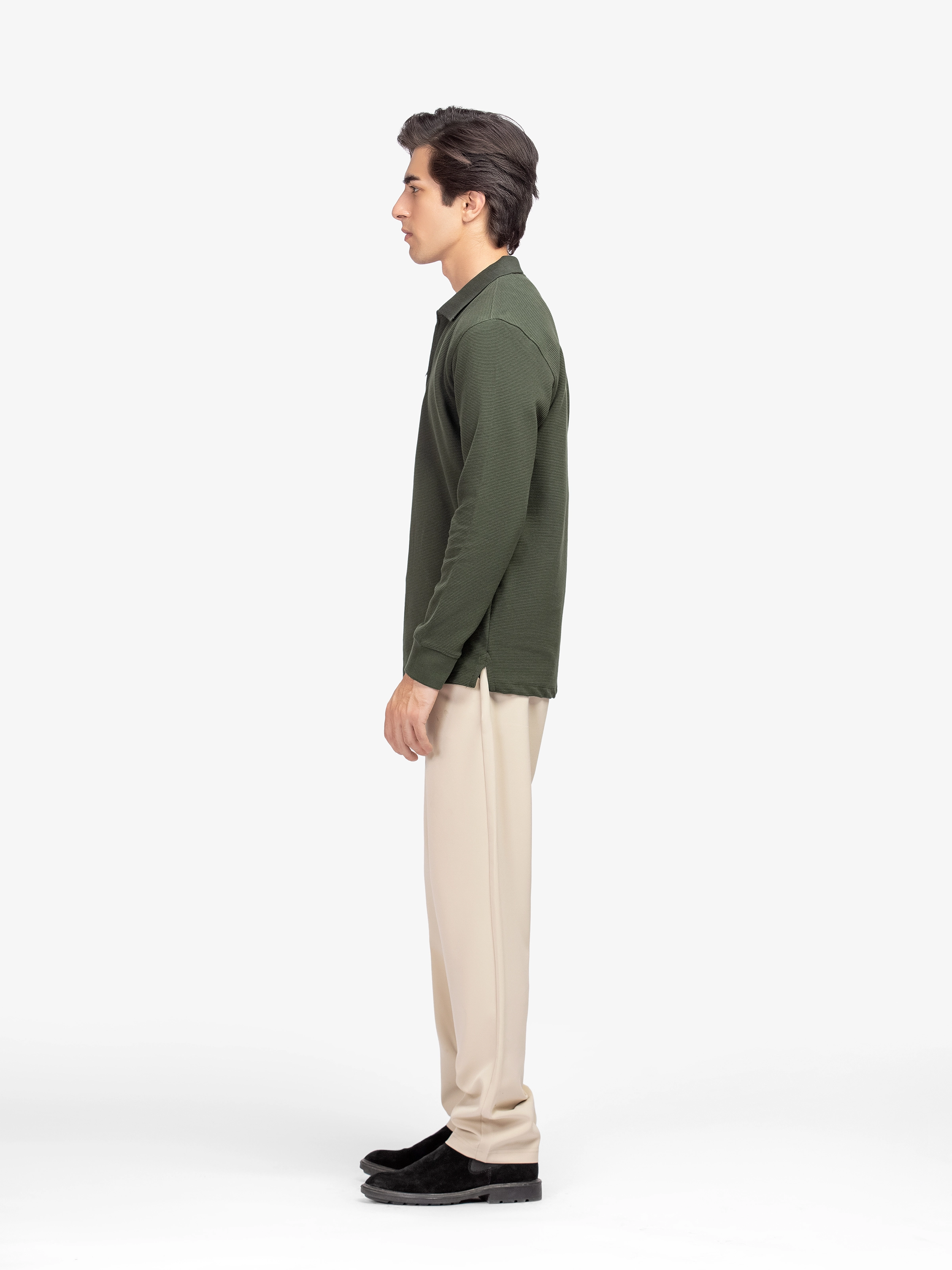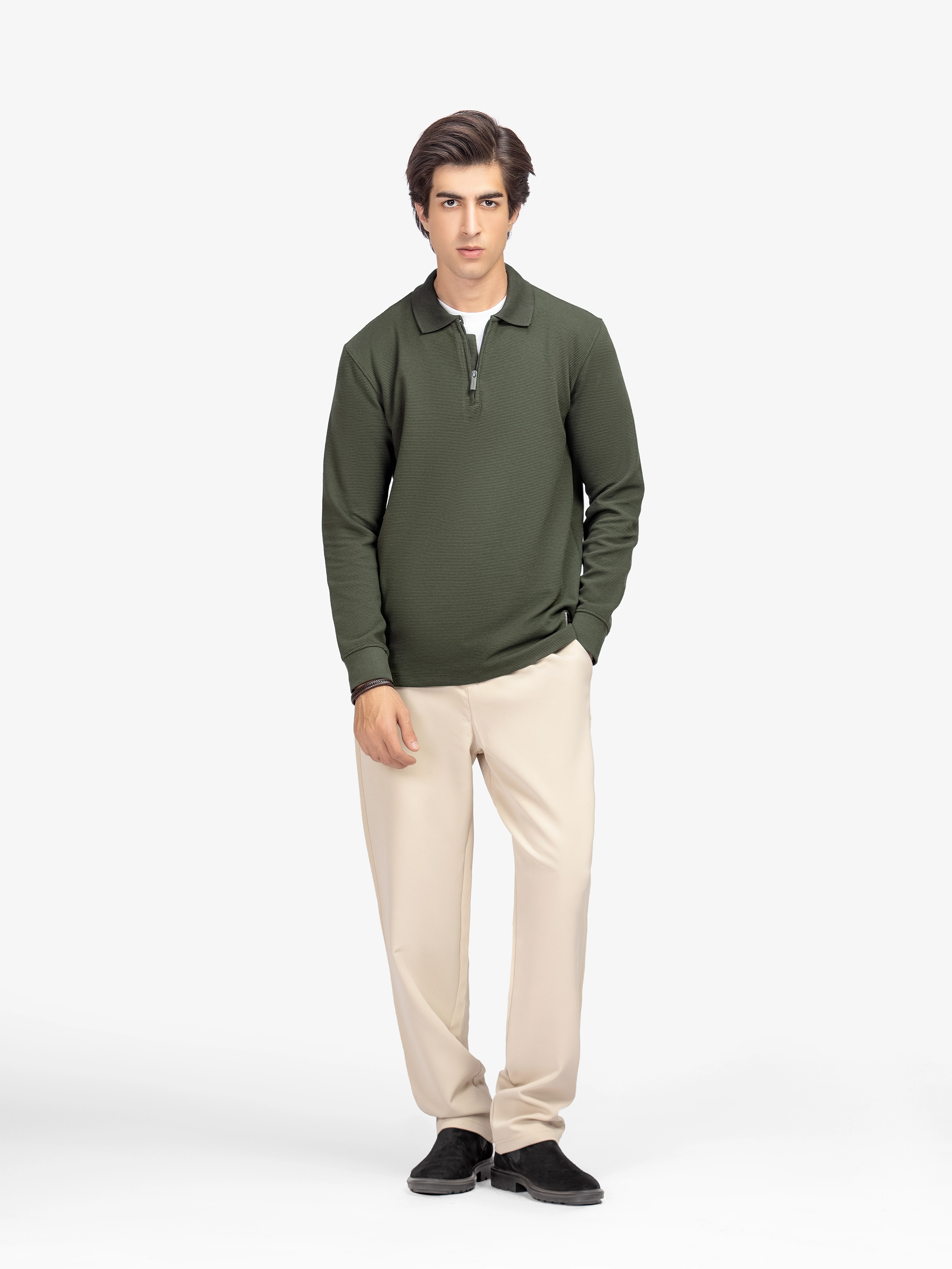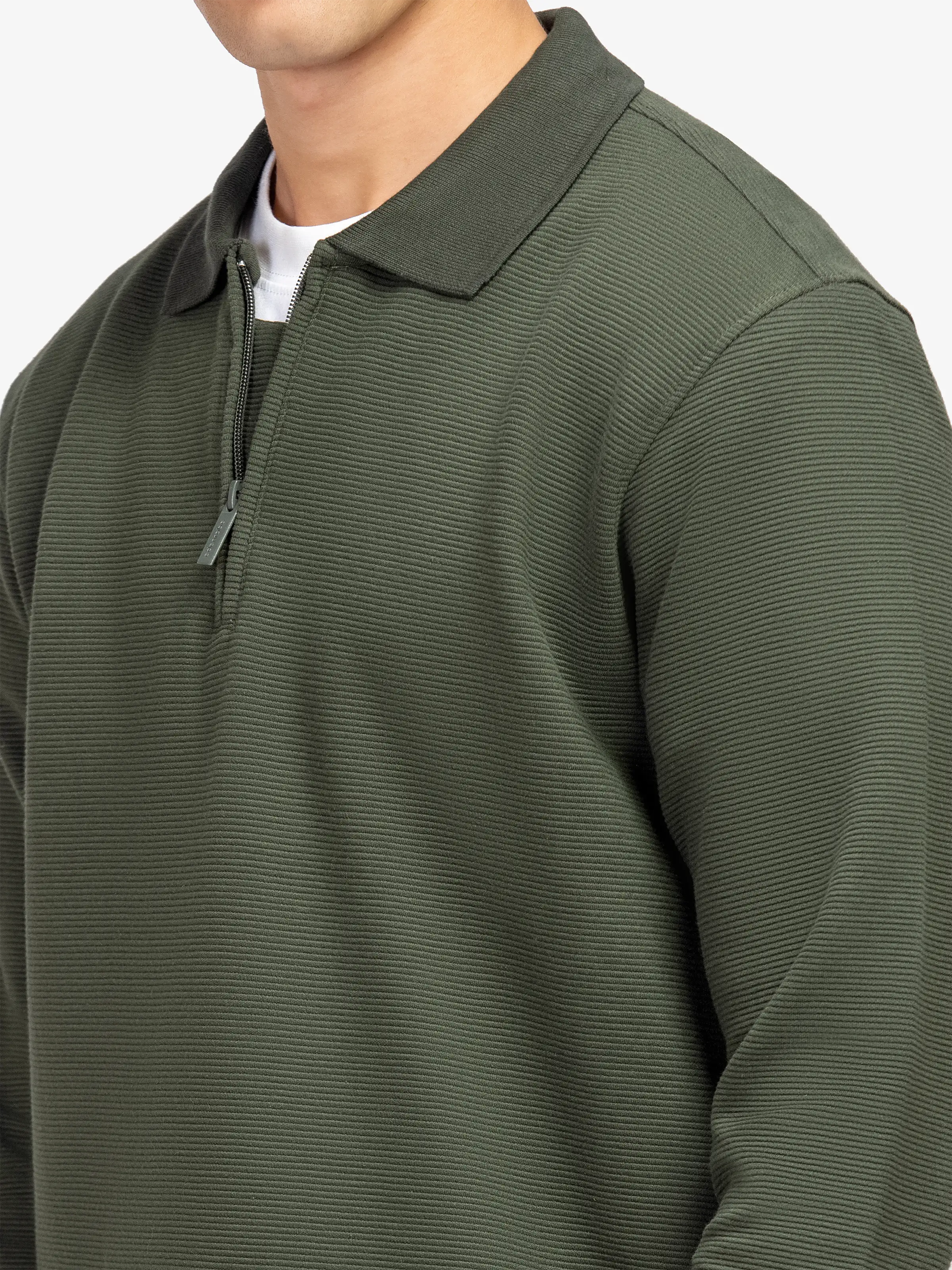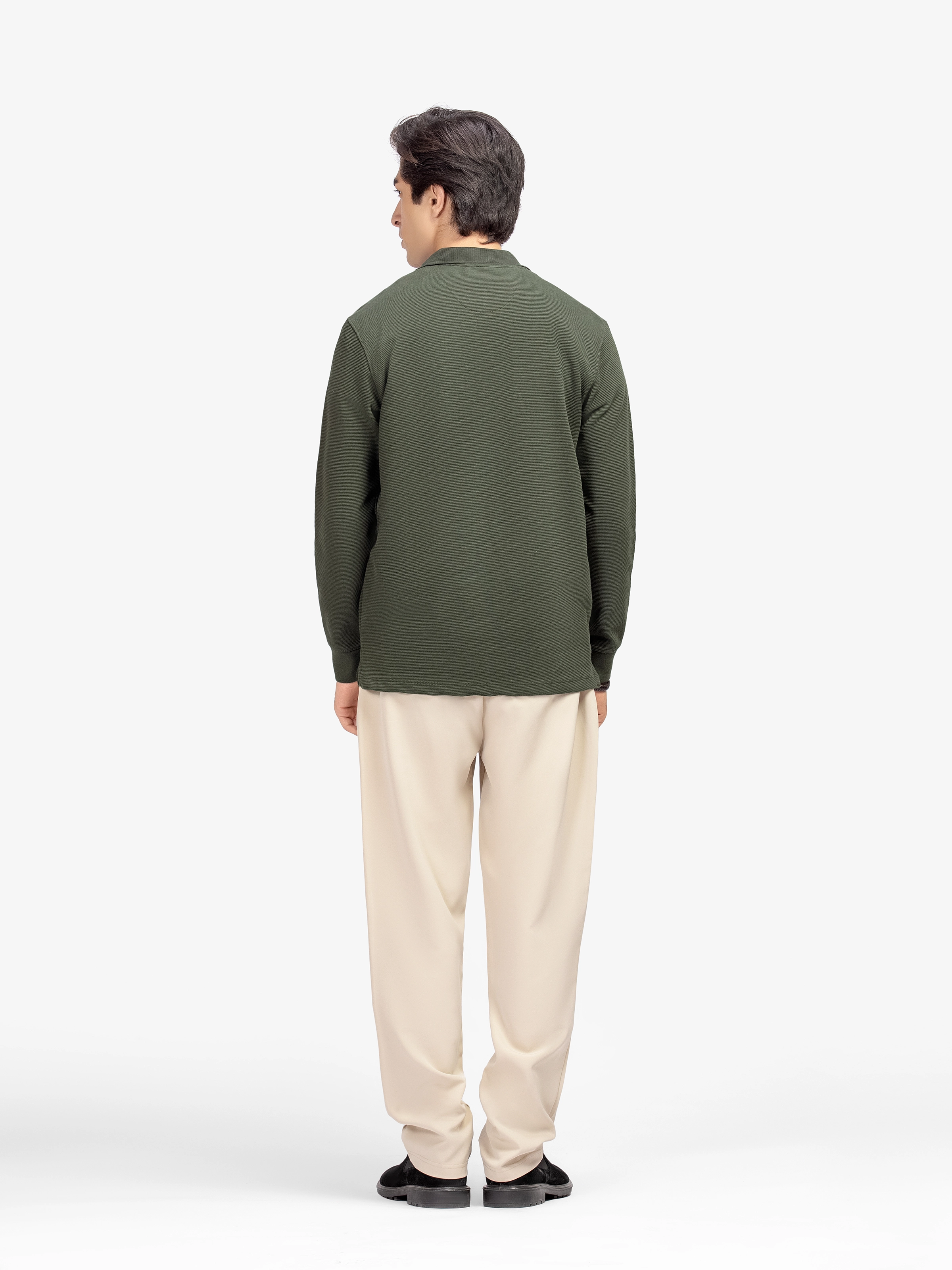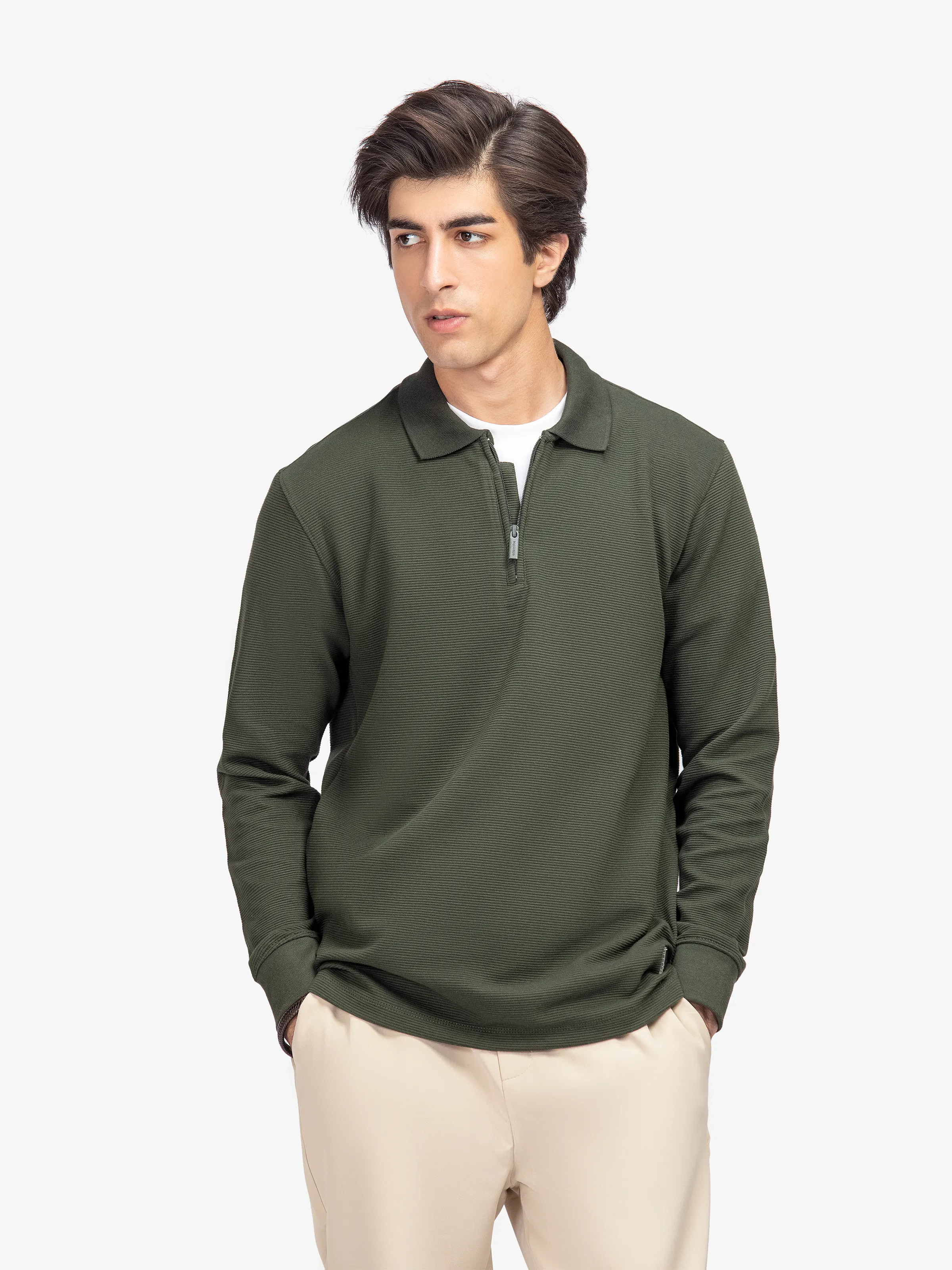 - Style: Textured Fabric Long Sleeves Polo Shirt with Zip on Front