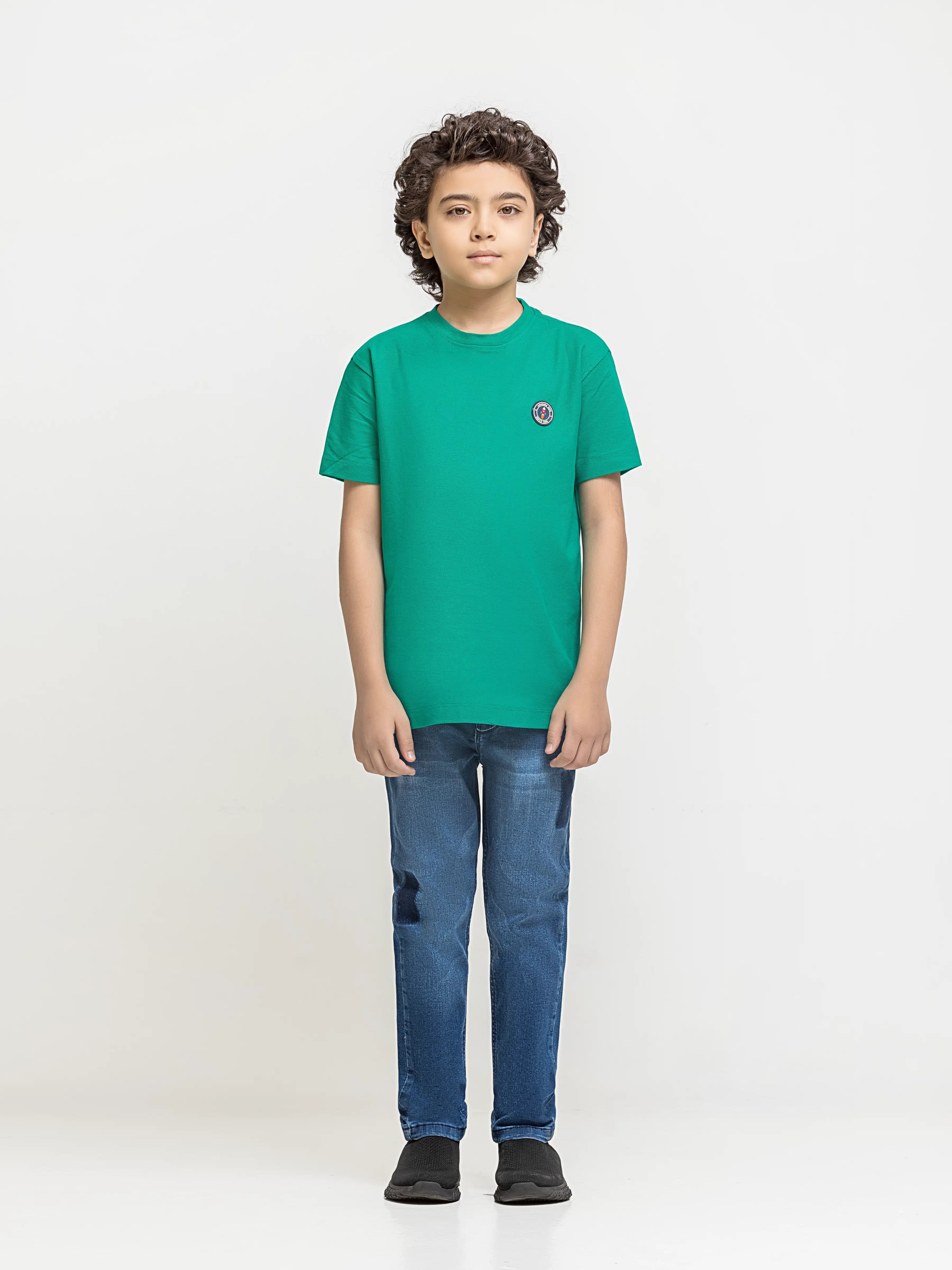- Style: Plain T-shirt with Stitched Rubber Patch on Front