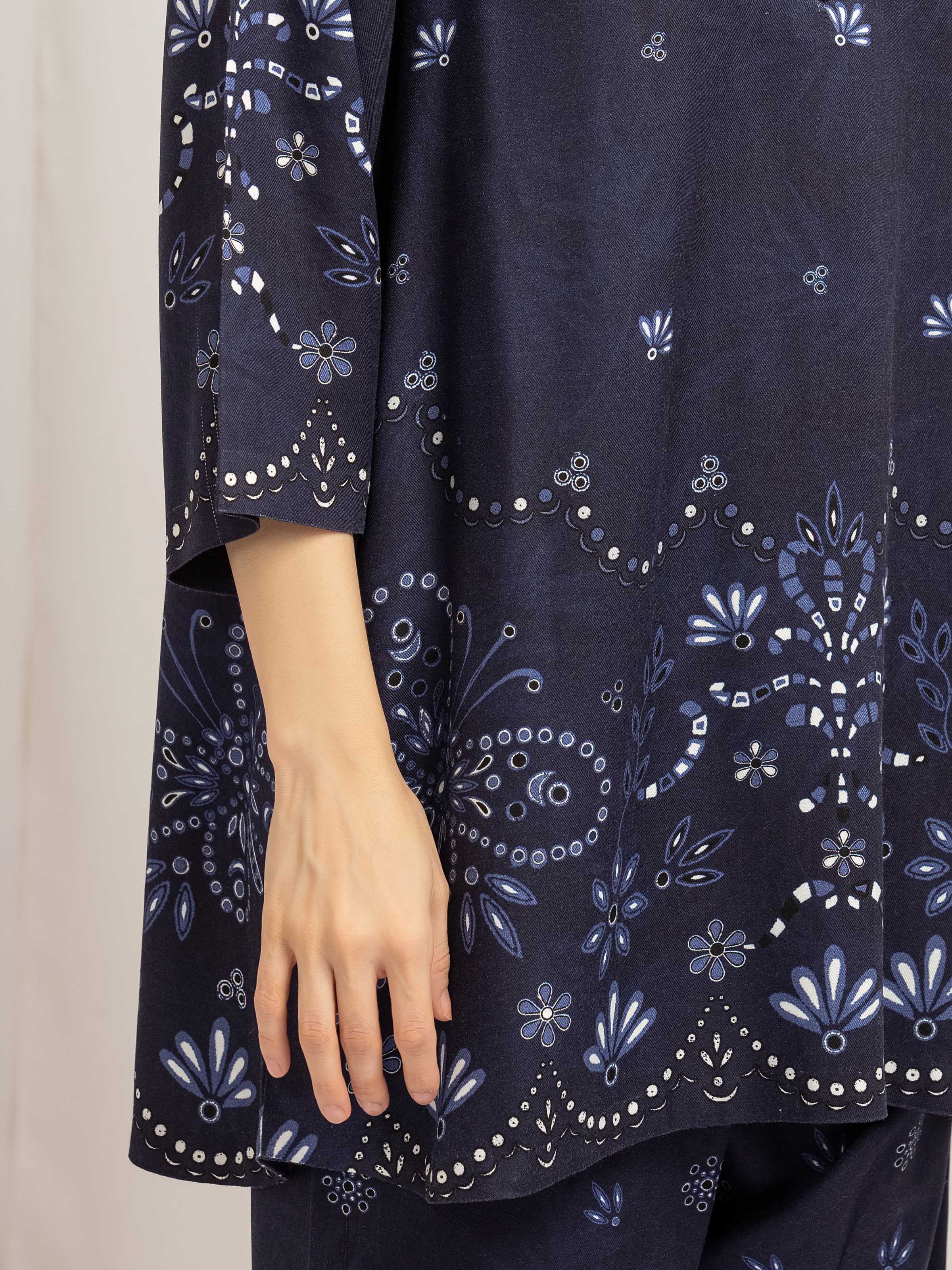 - Style: Floral Printed Short Length Shirt with Lace Detailing