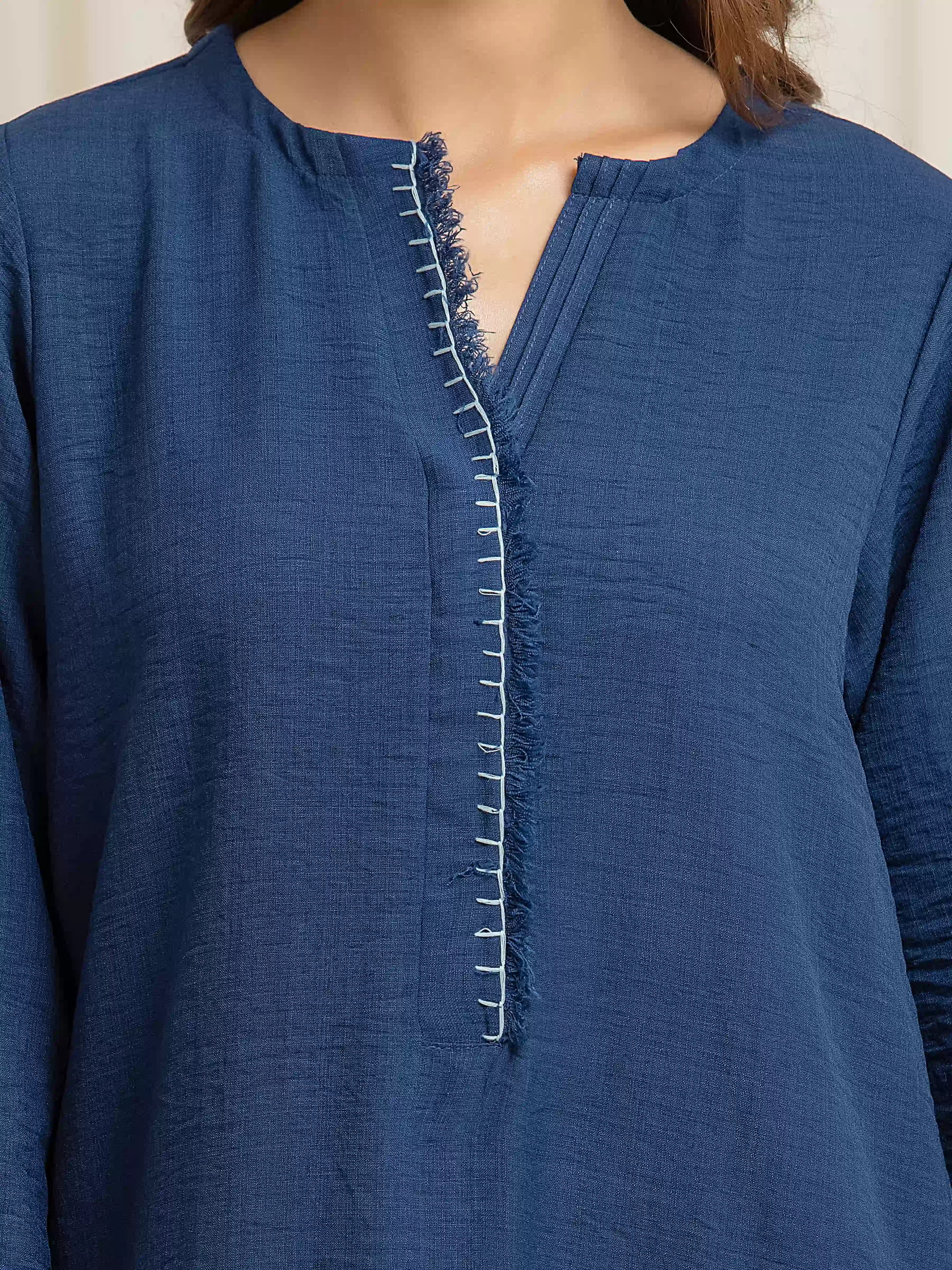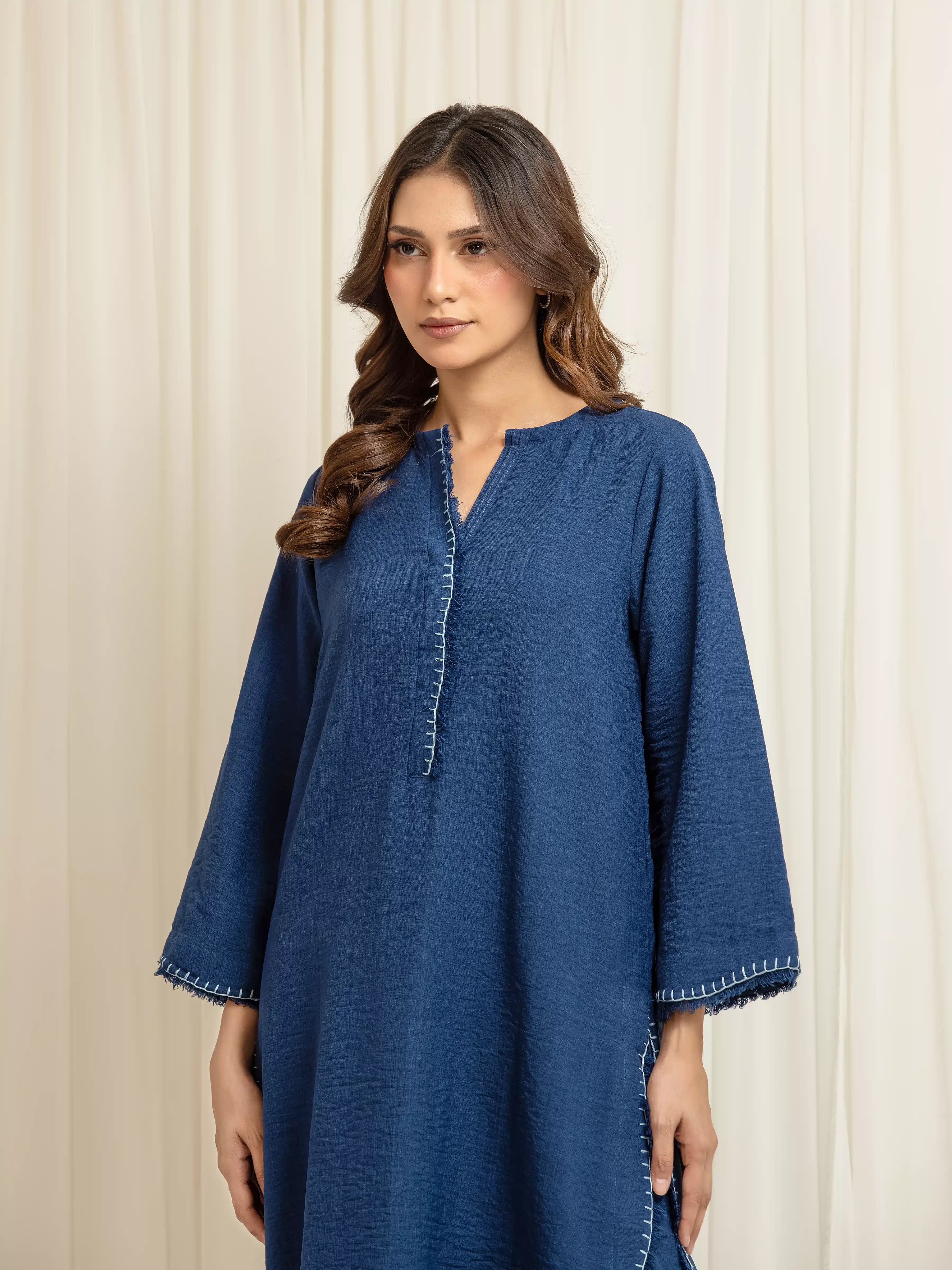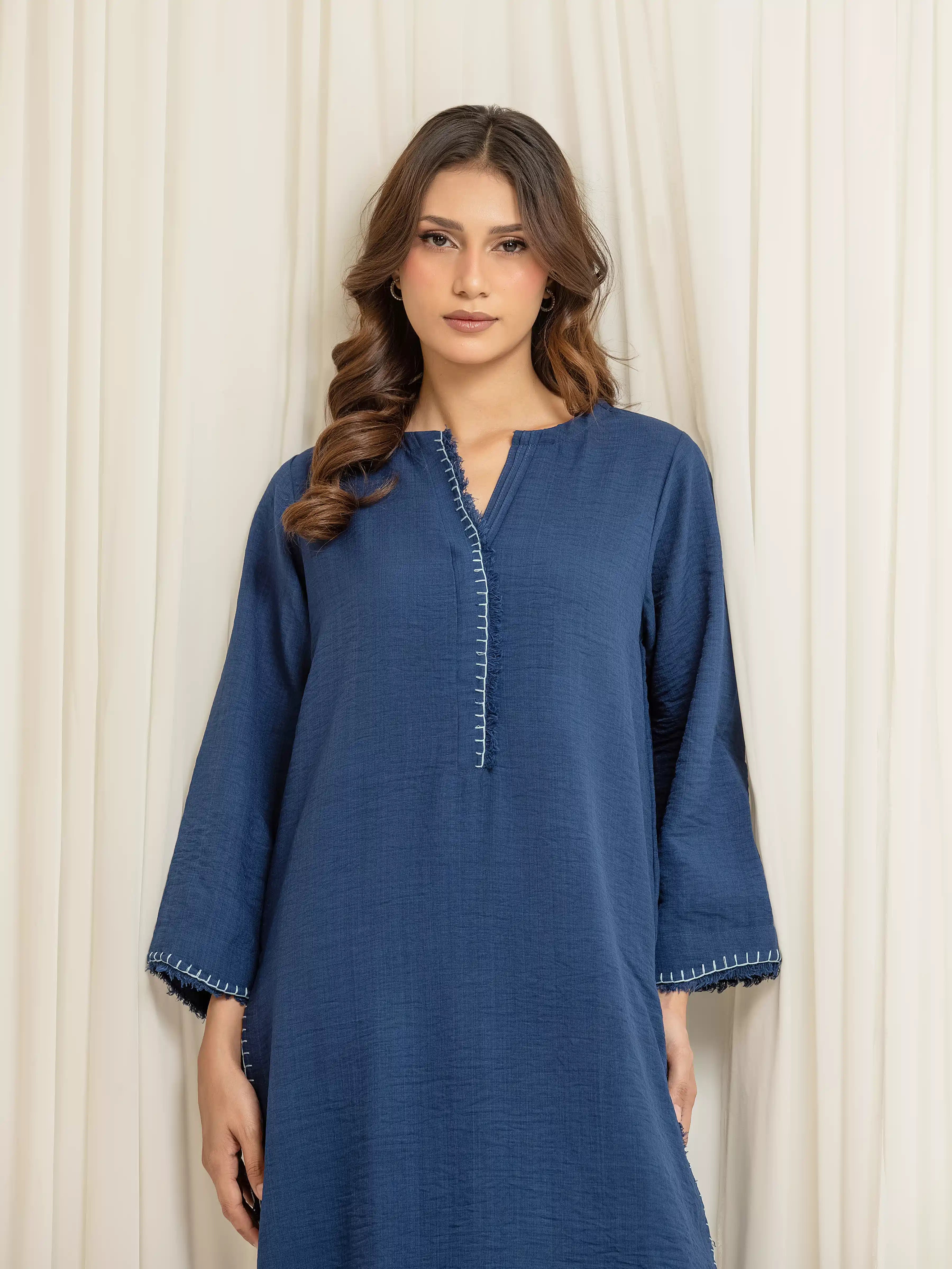 • Style: Plain Shirt with Brush Thread Detailing on Front