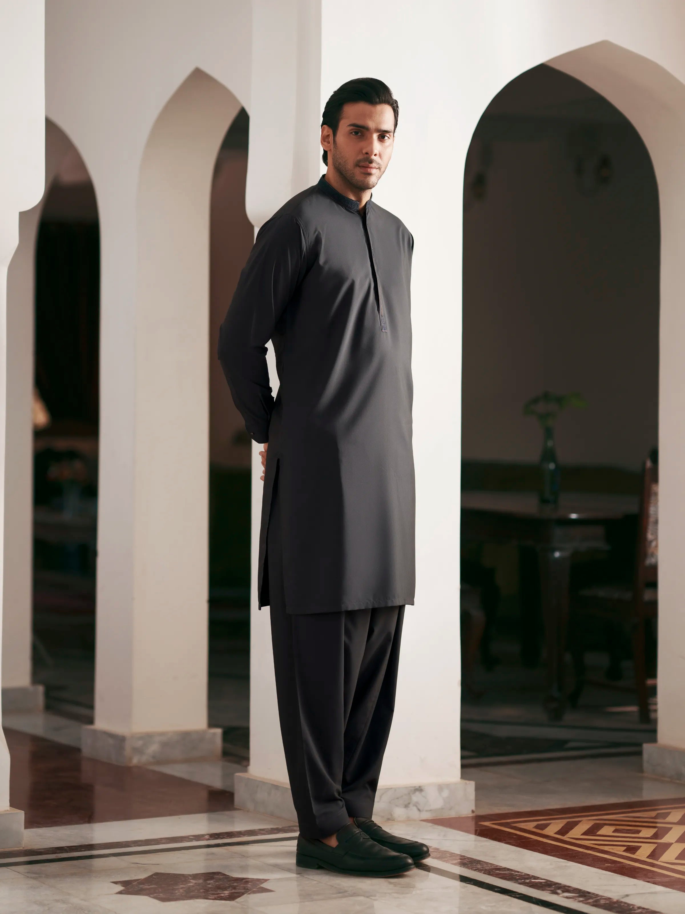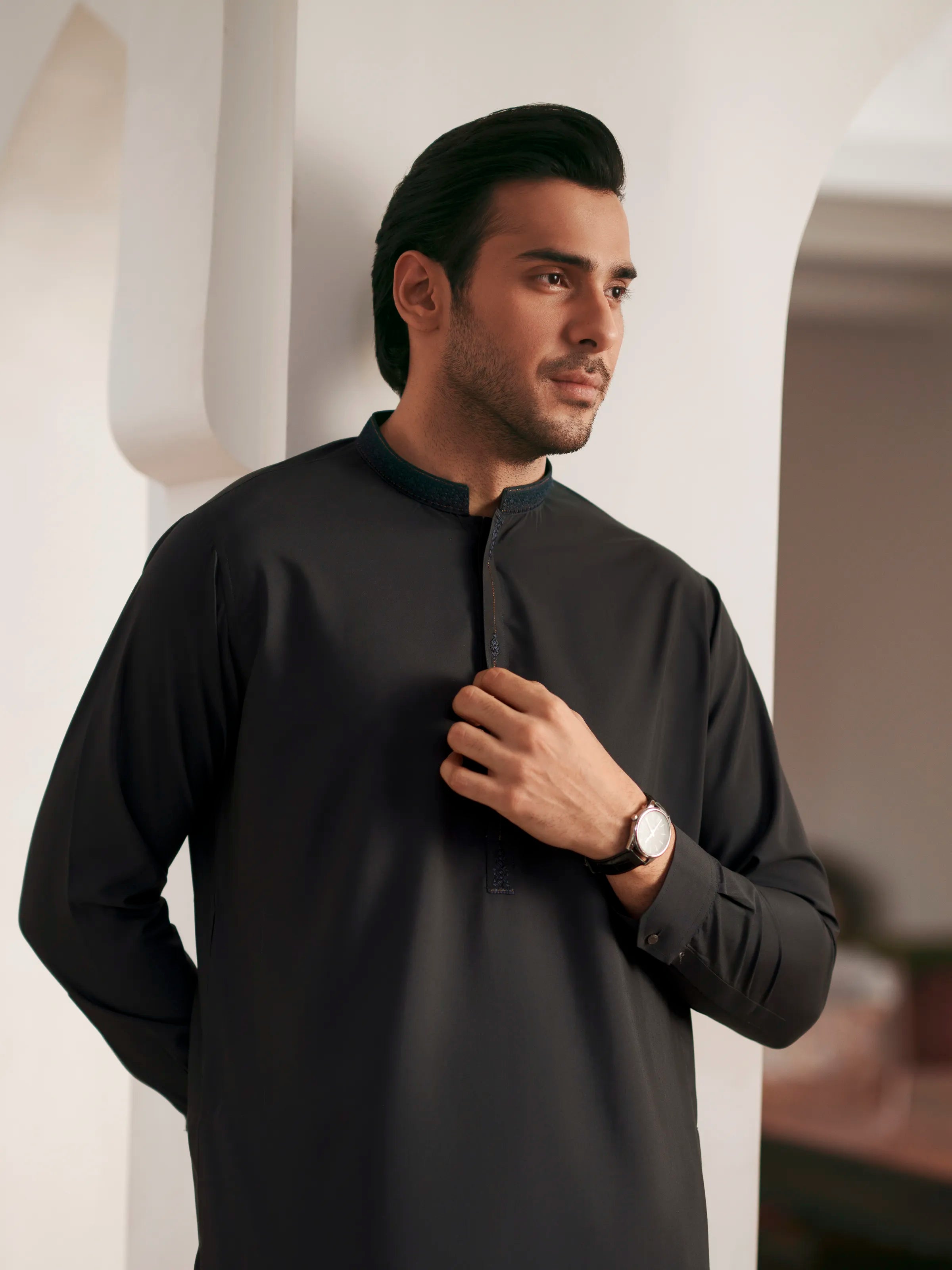 • Style: Embroidered Kurta with Band Collar