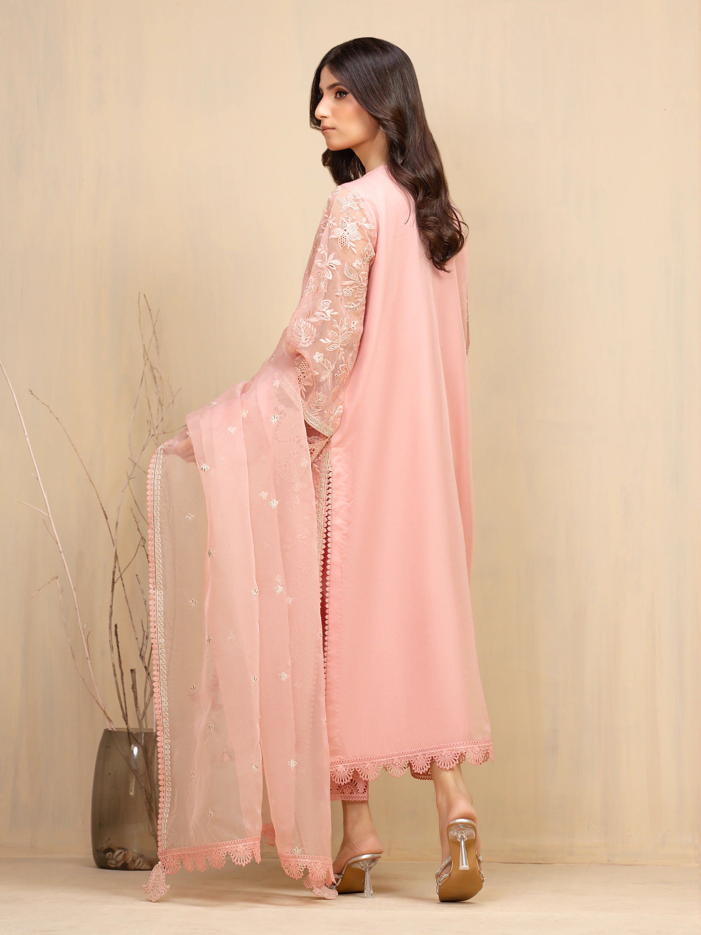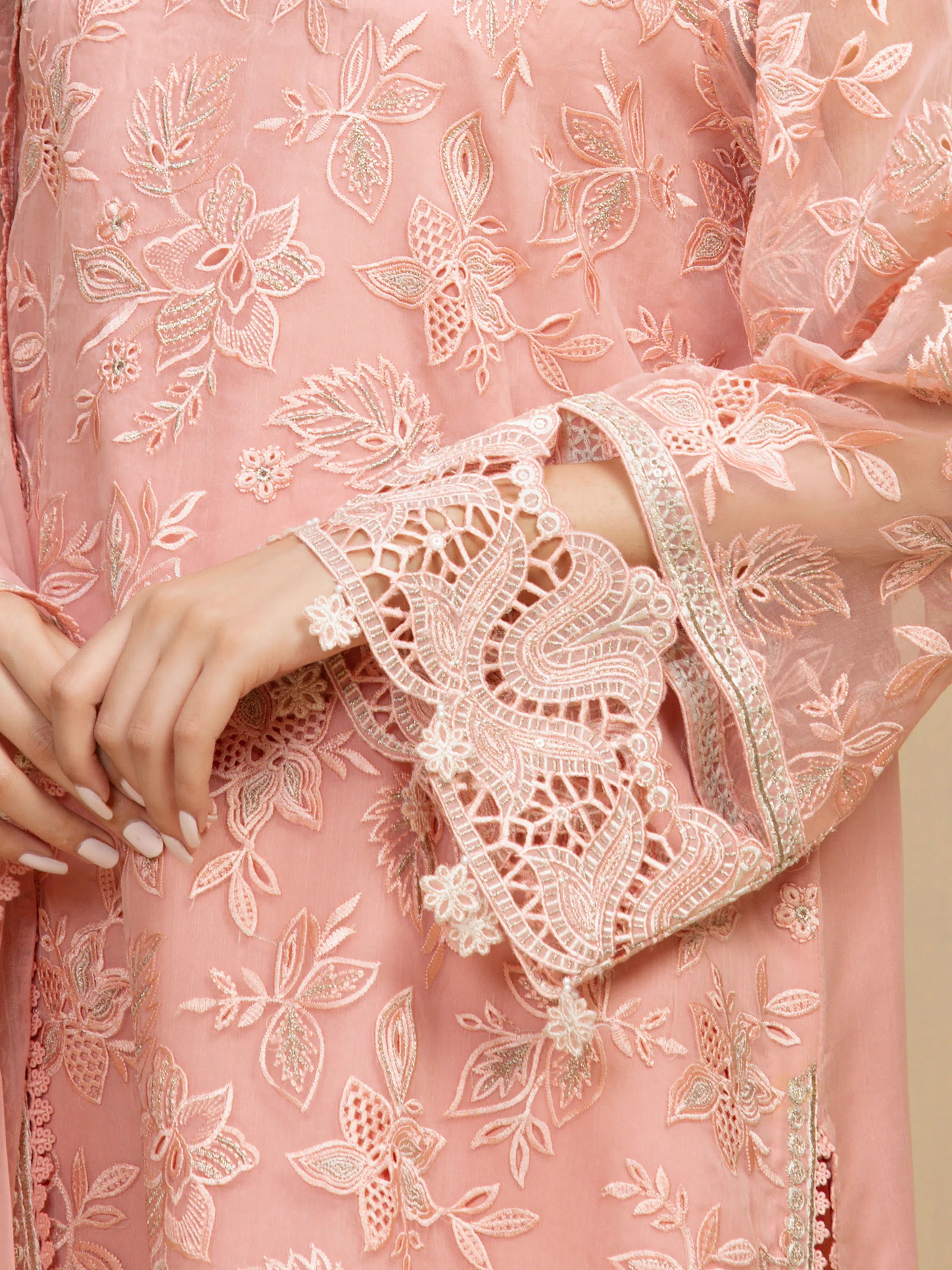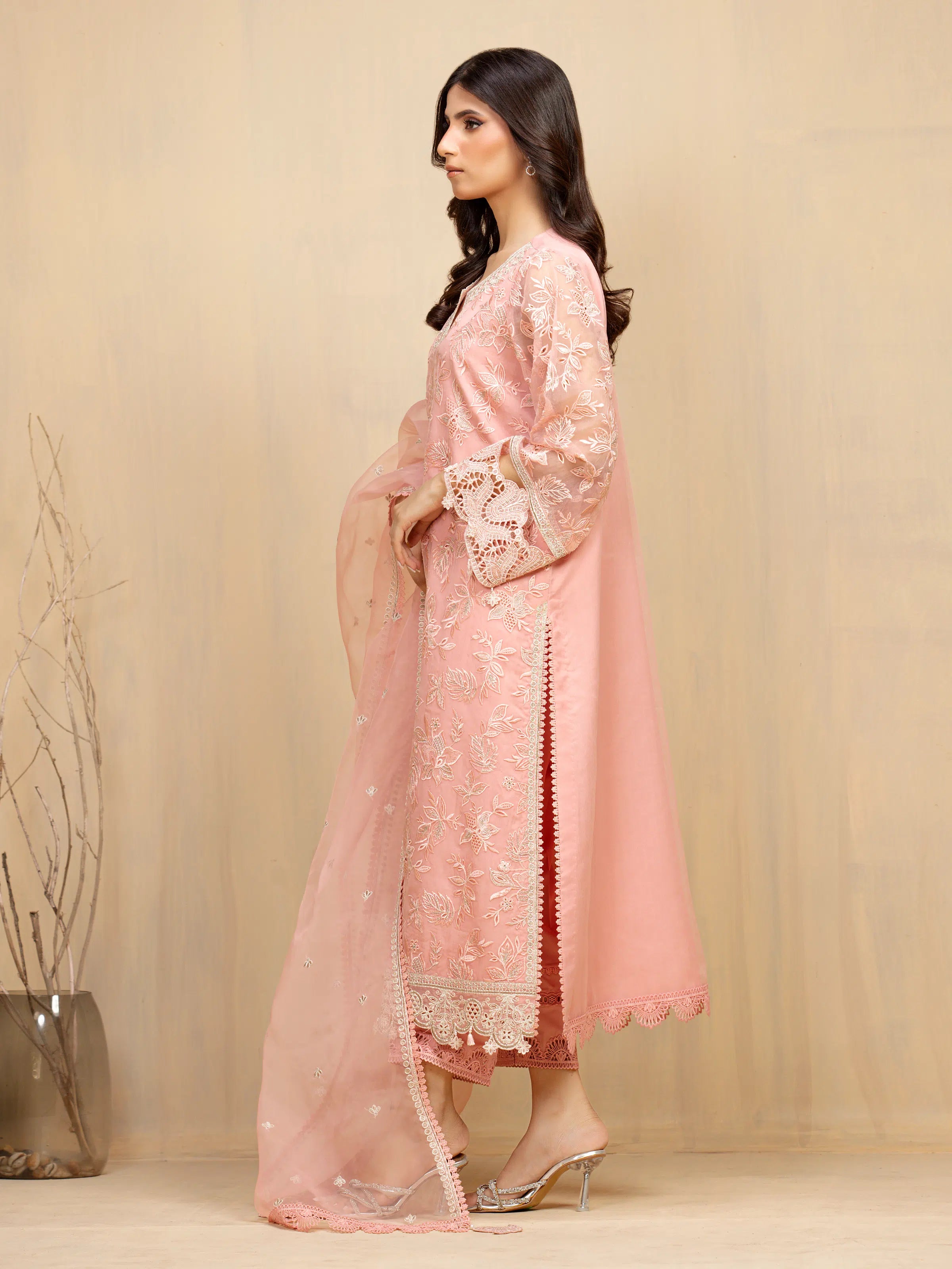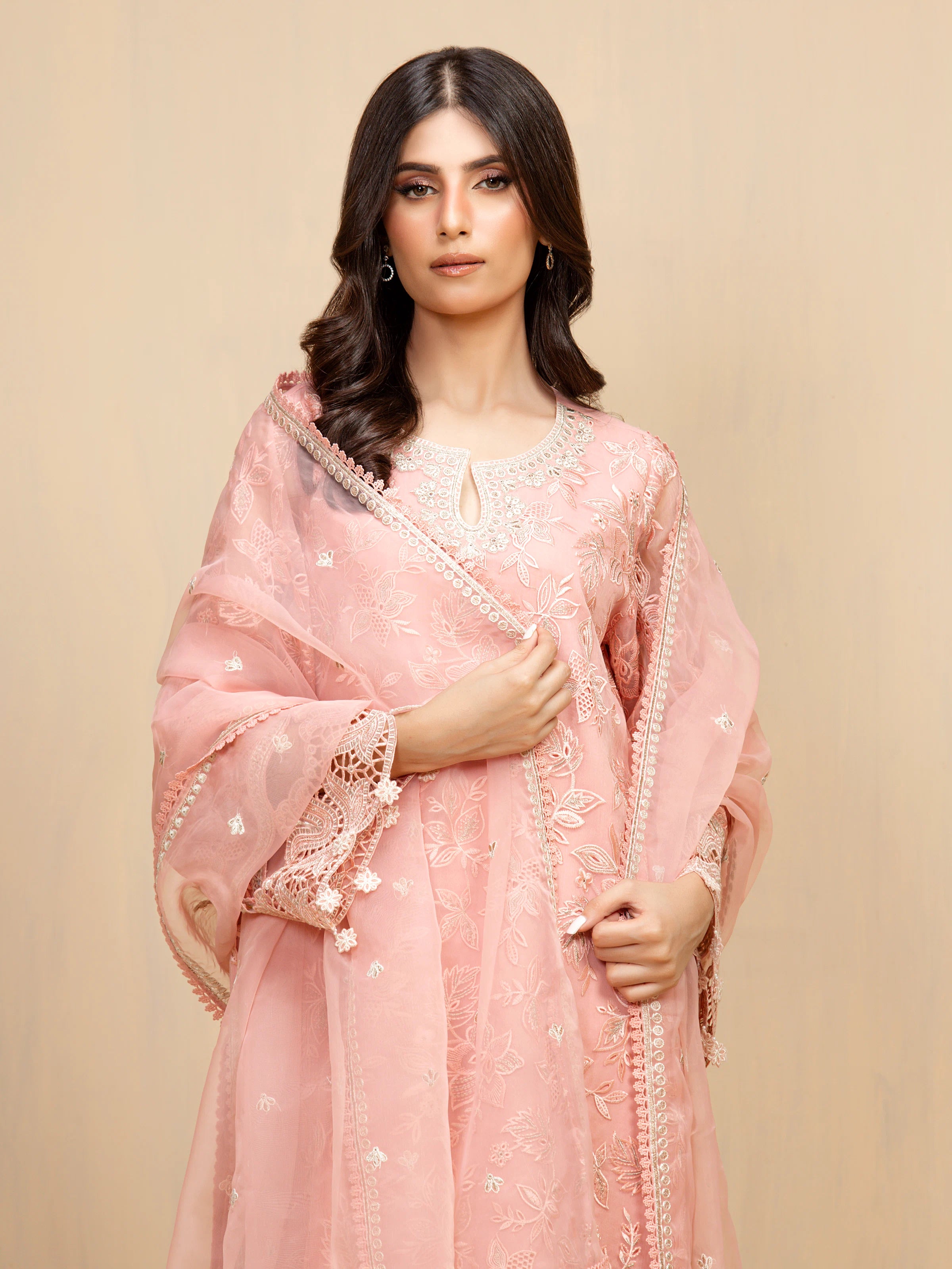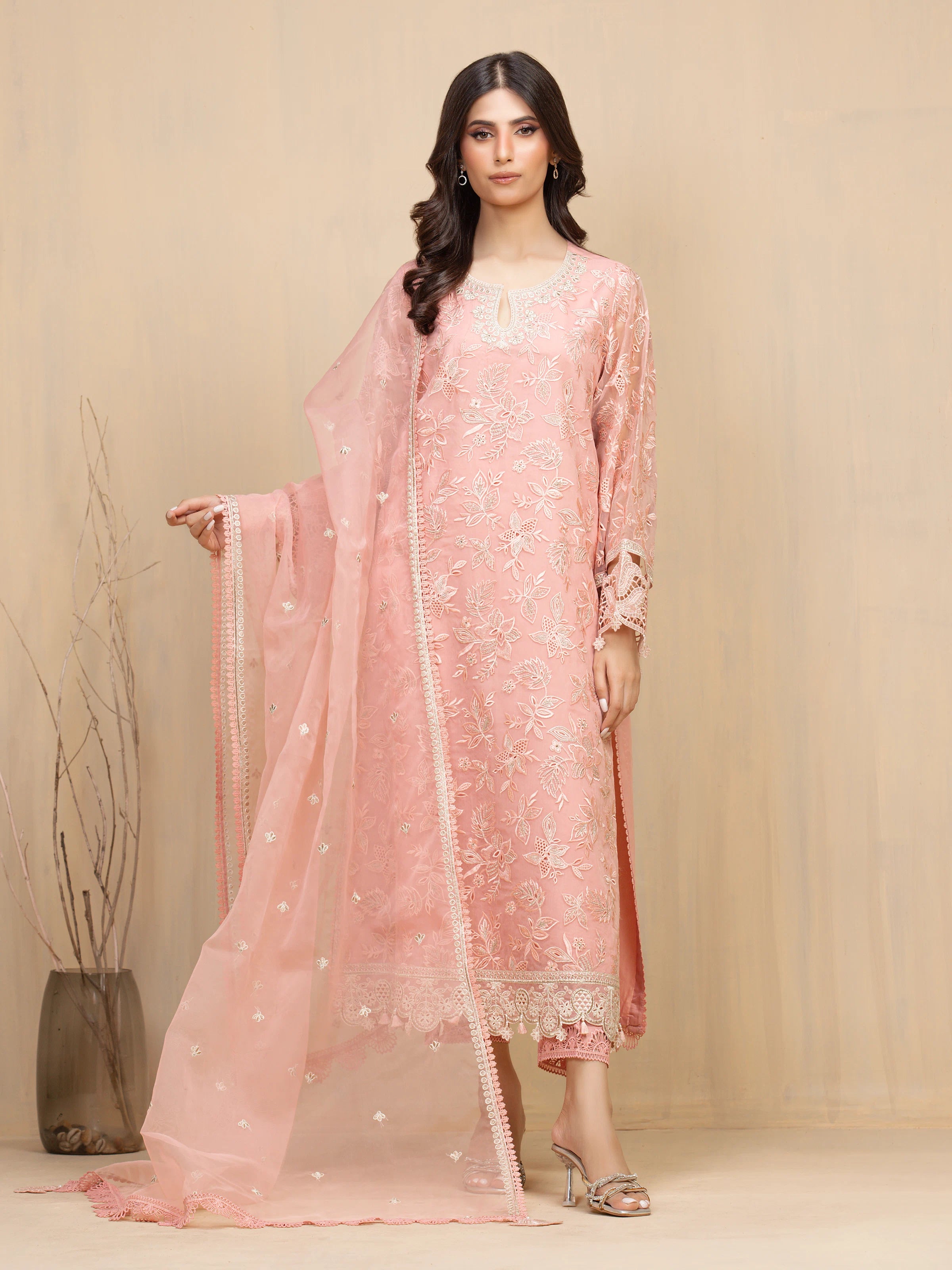 Unstitched Light Pink Embroidered Organza 3 Piece