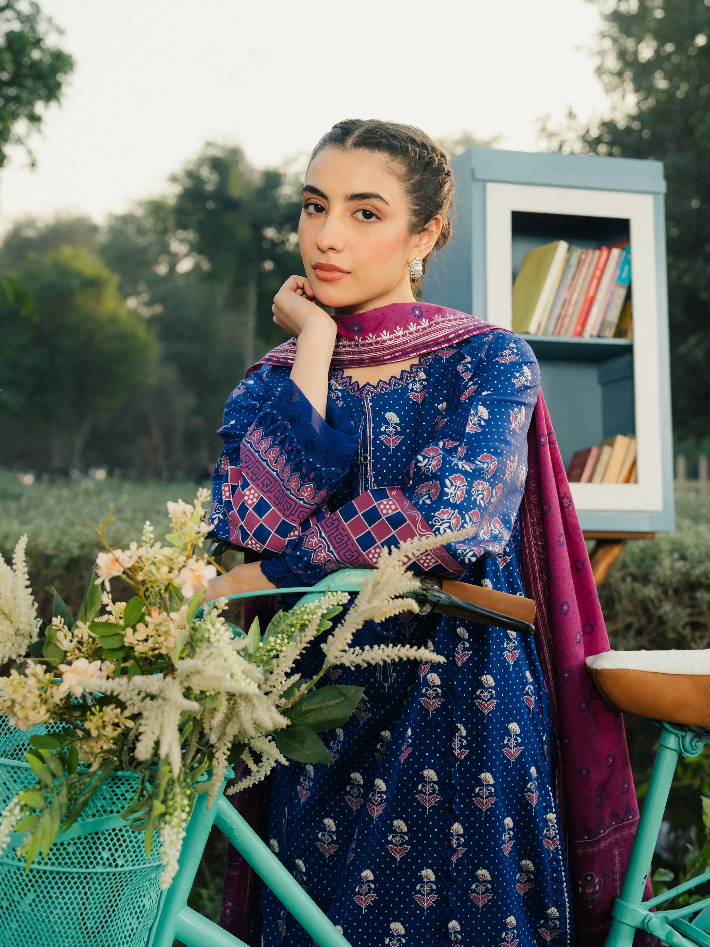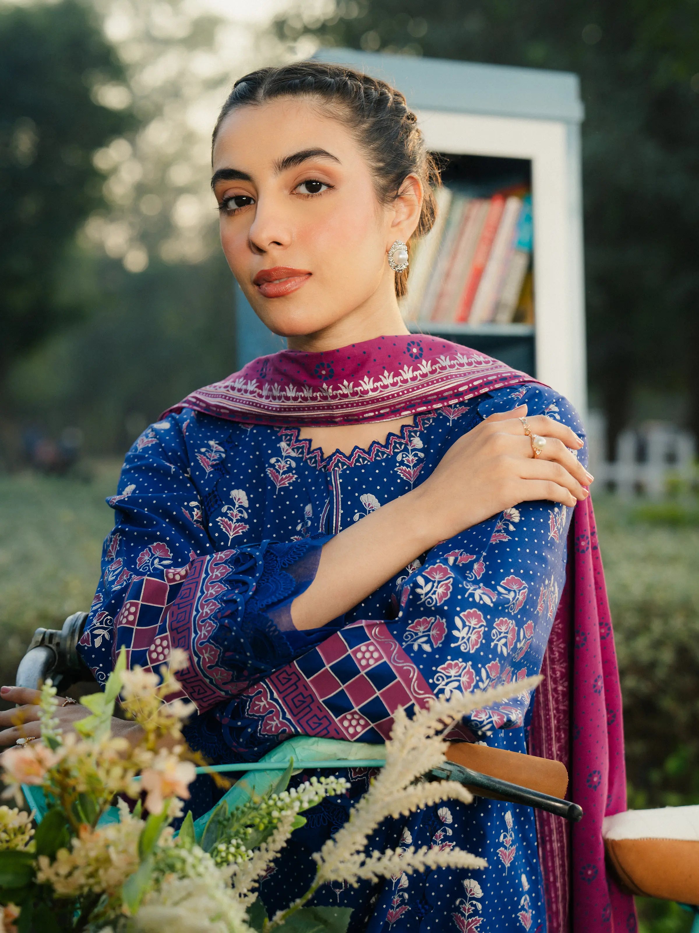Unstitched Navy Blue Block Print Cambric 1 Piece