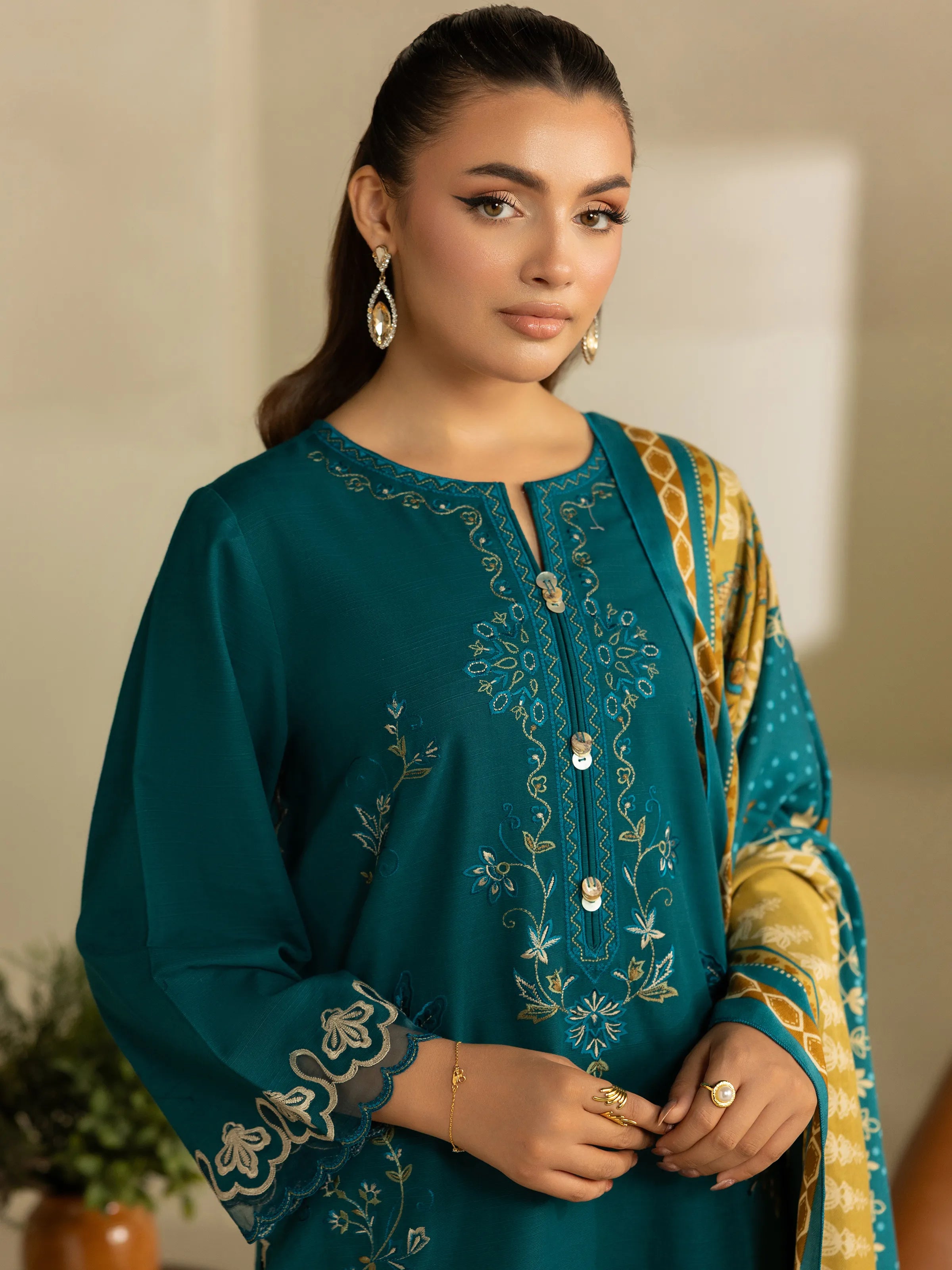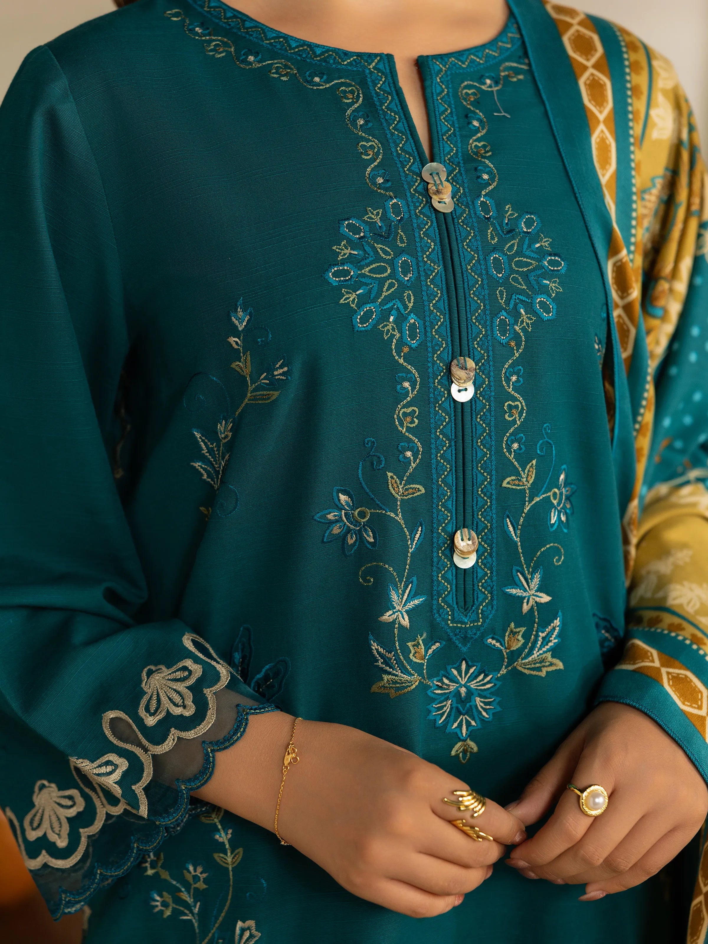 Style: Embroidered Kurti with Embellished Placket & Organza Trims Sleeves