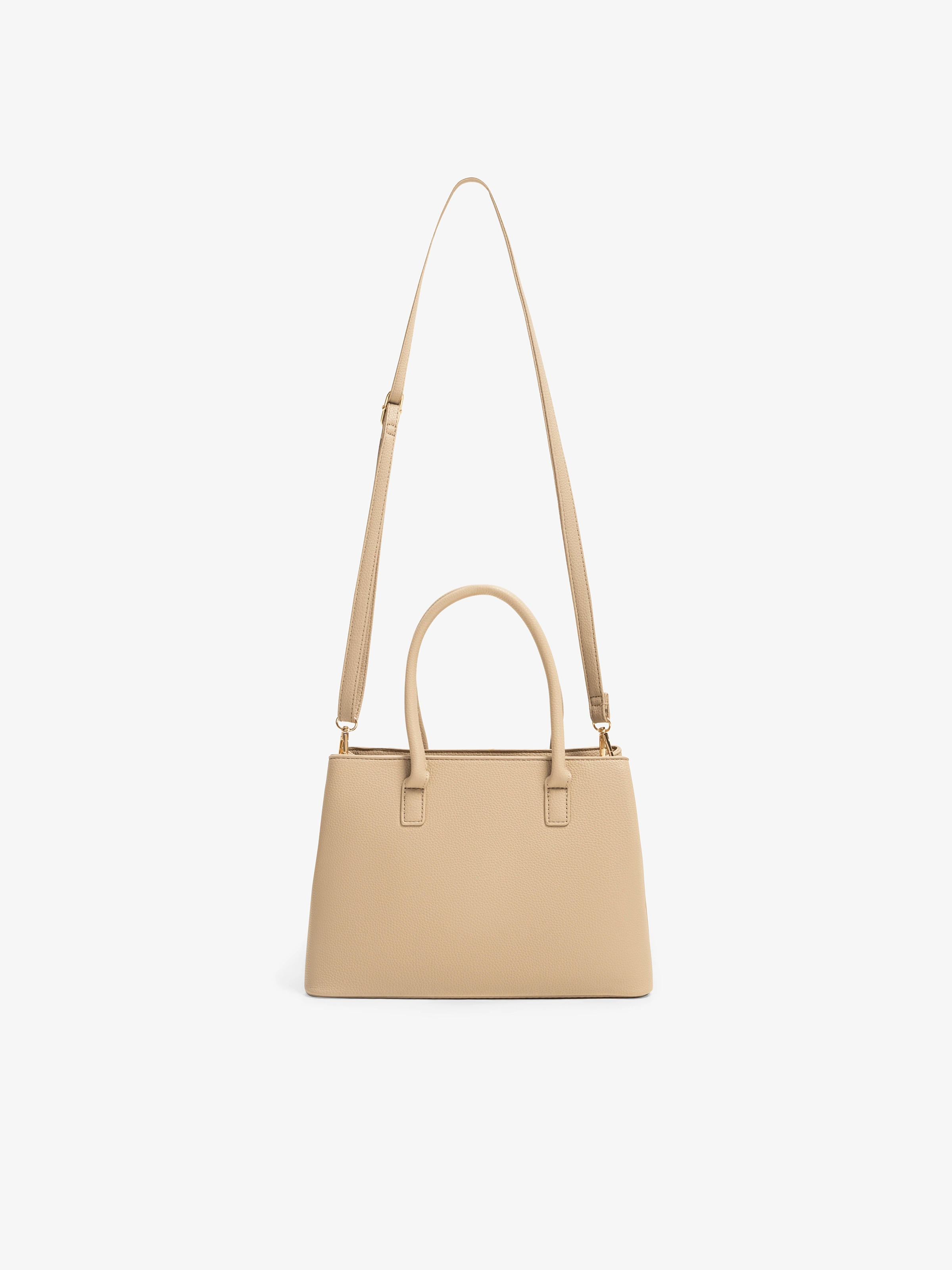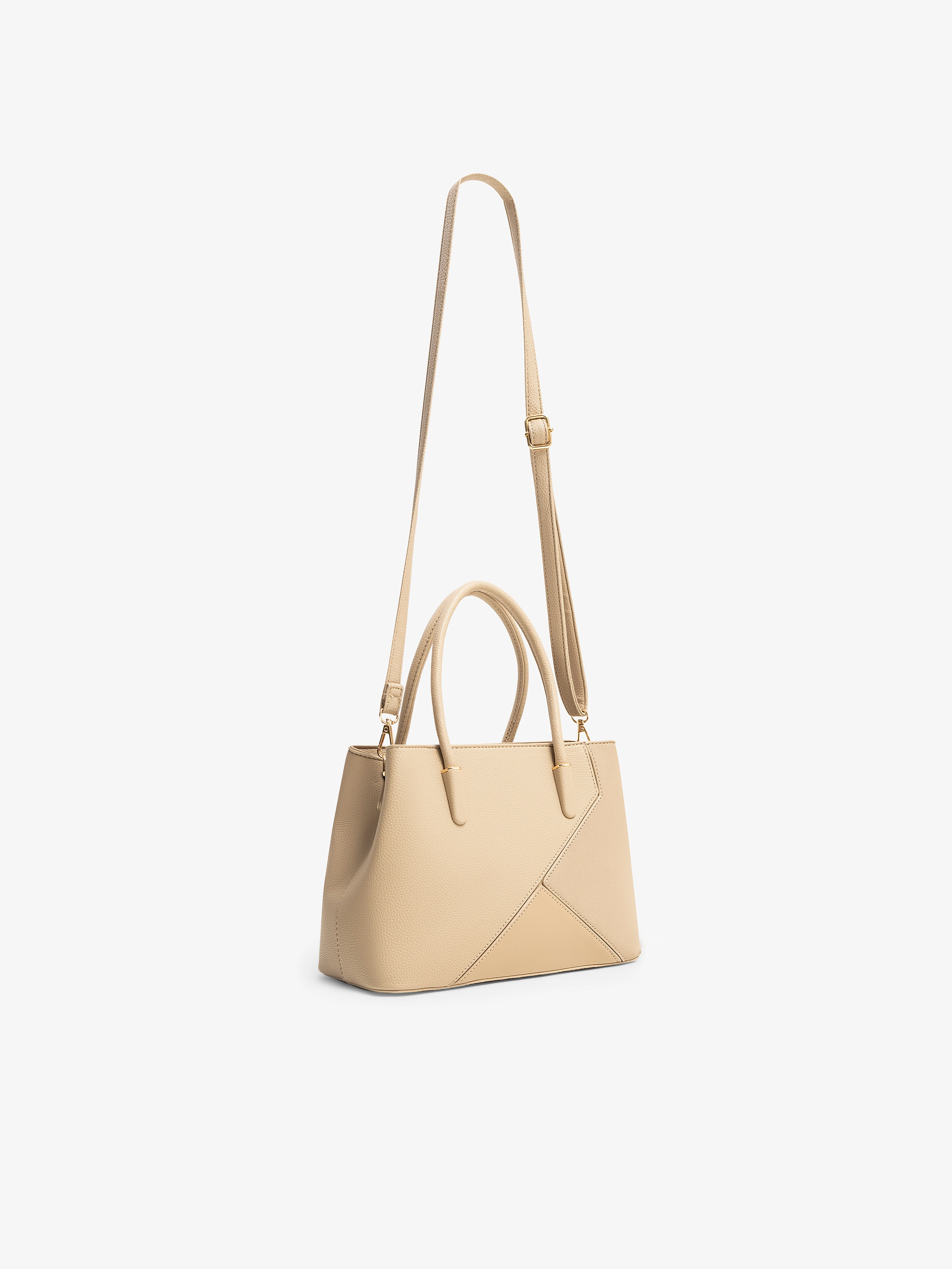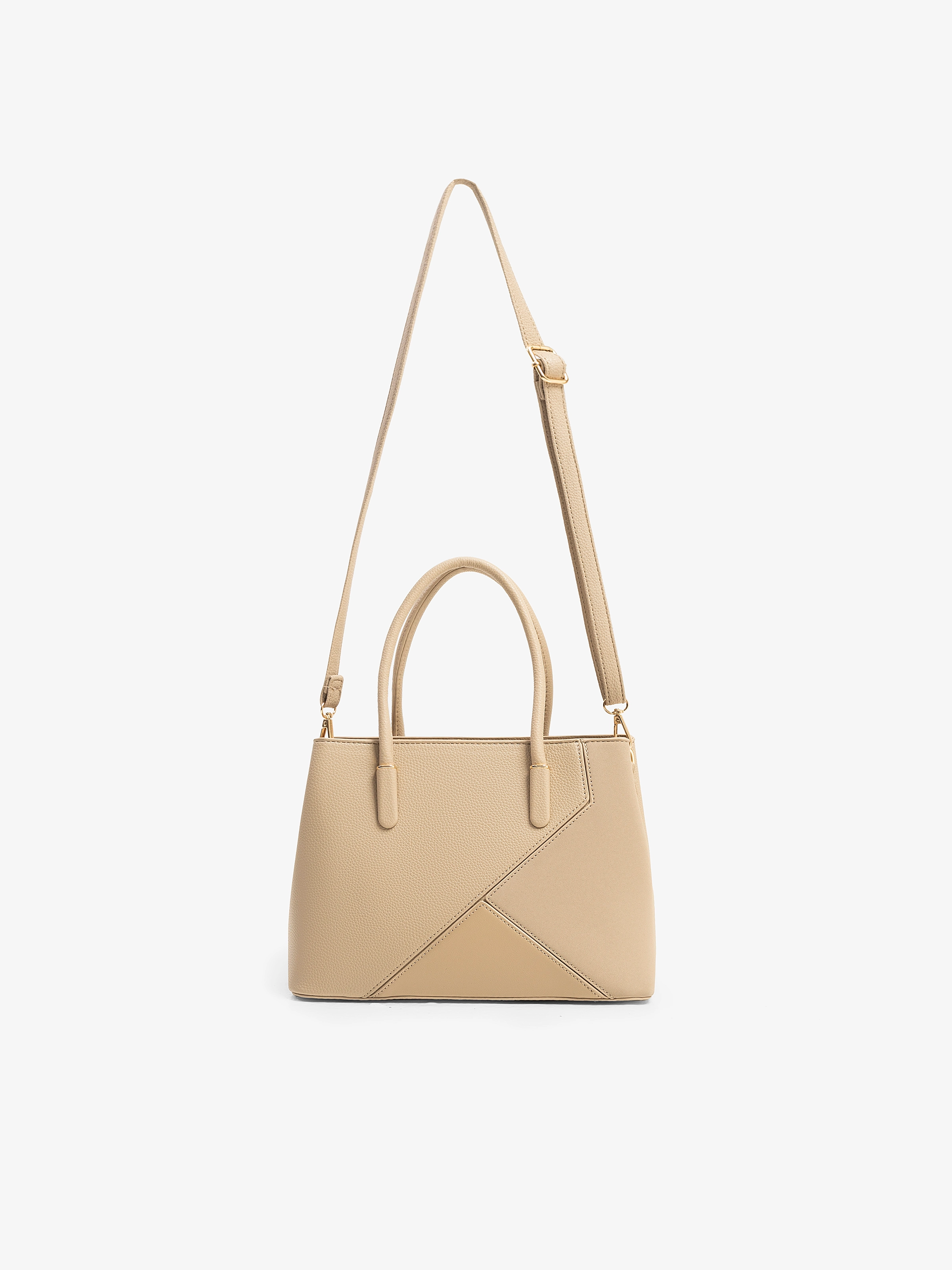 - Material: Pebbled Faux Leather with Geometric Multi-Tonal Panel