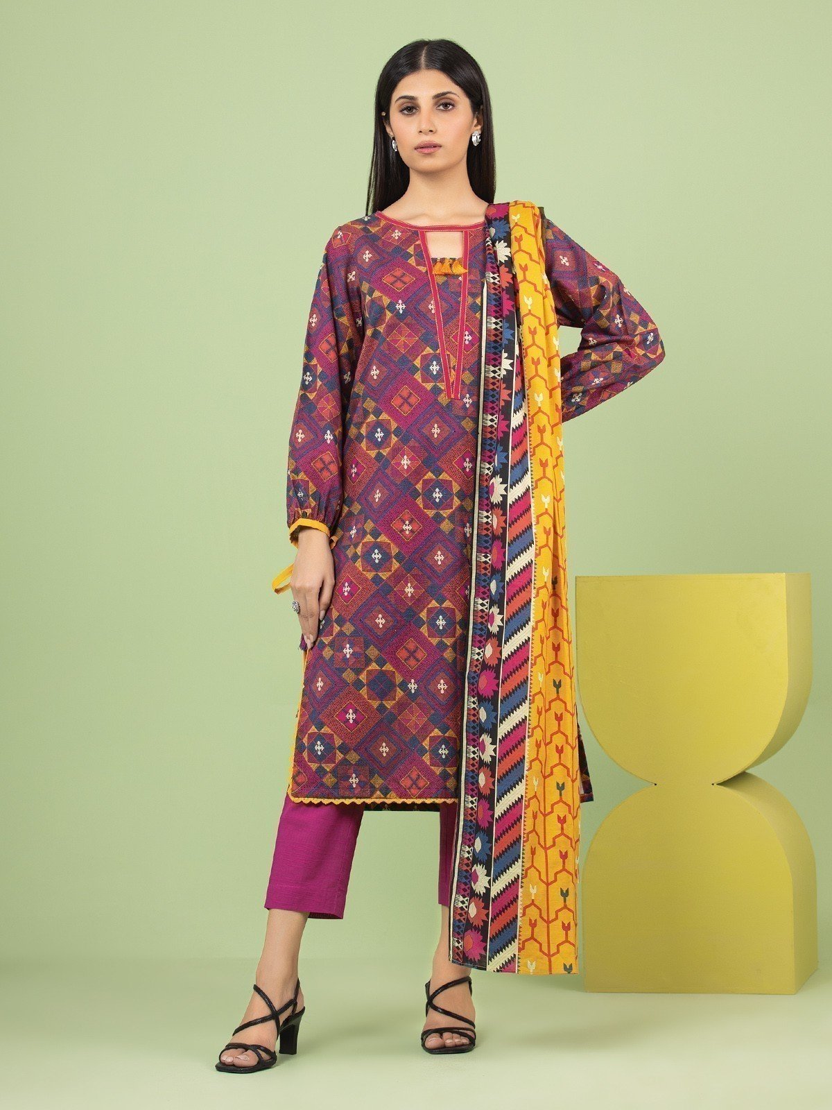 Unstitched Pink Multi Printed Lawn 2 Piece