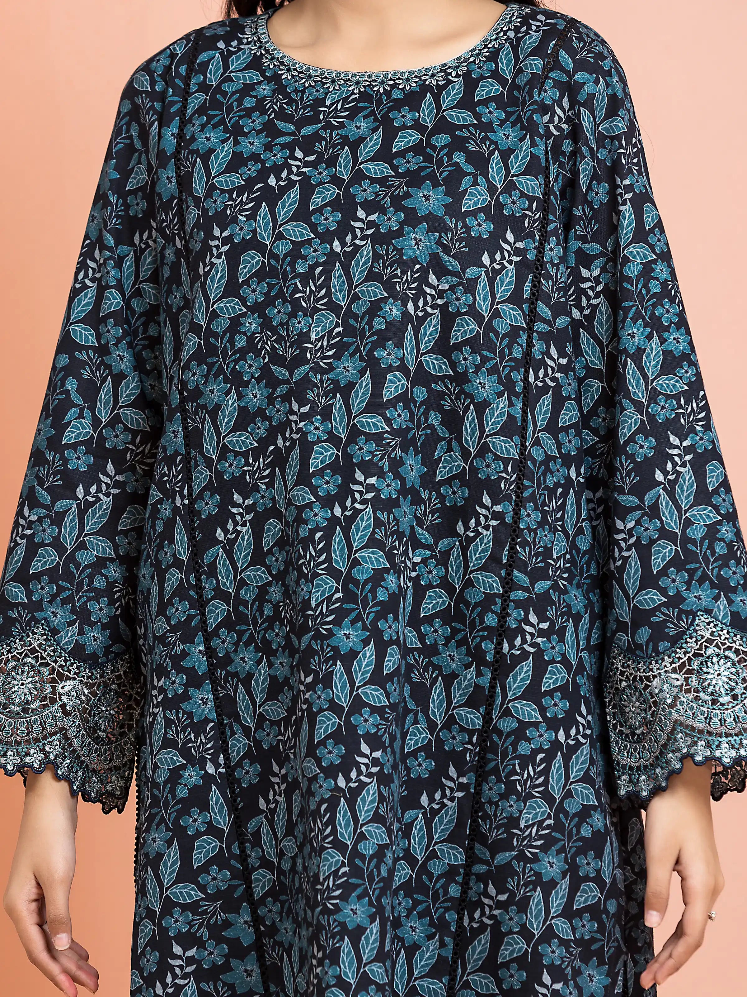 Unstitched Black Embroidered Marina Twill 2 Piece