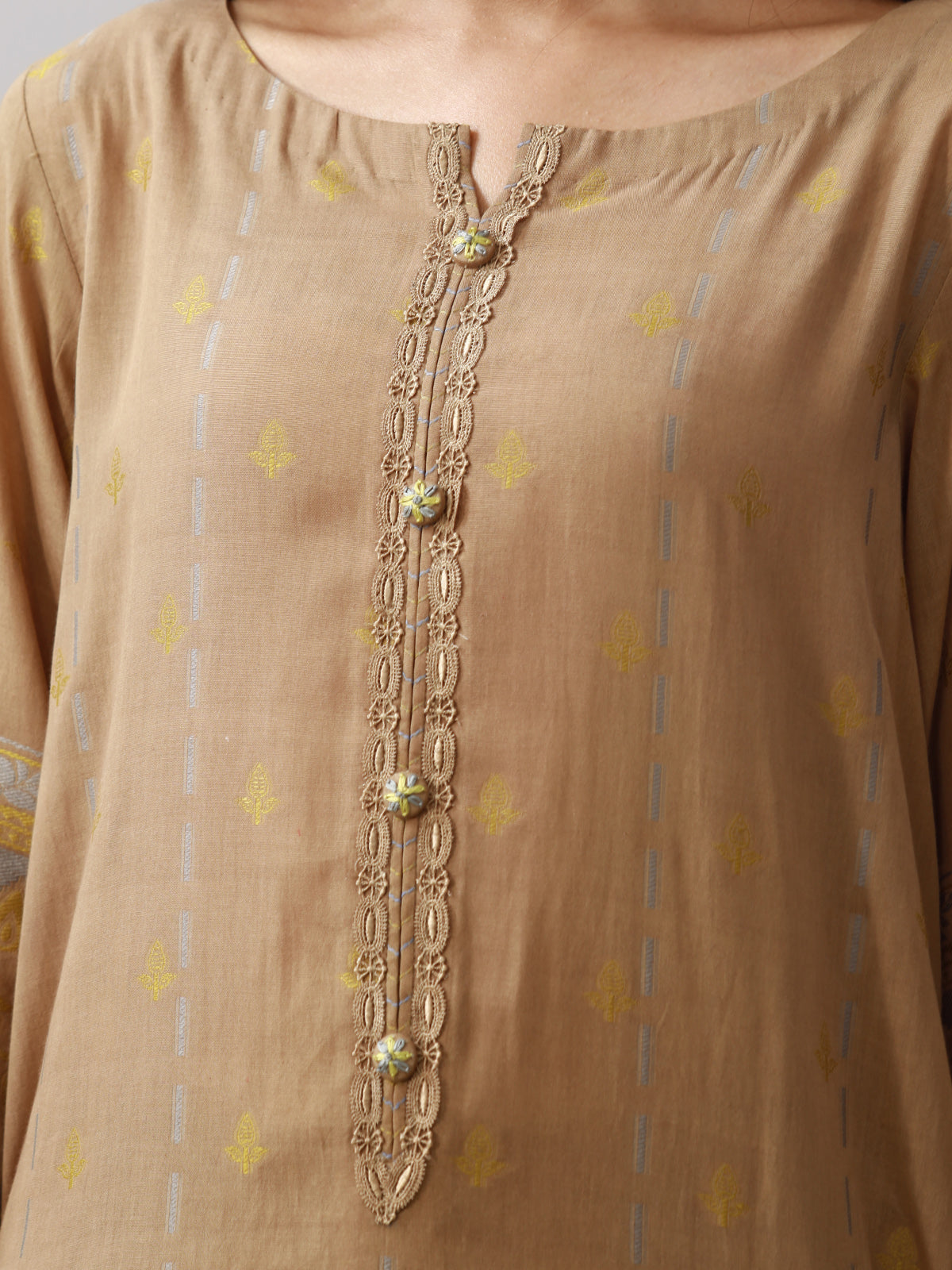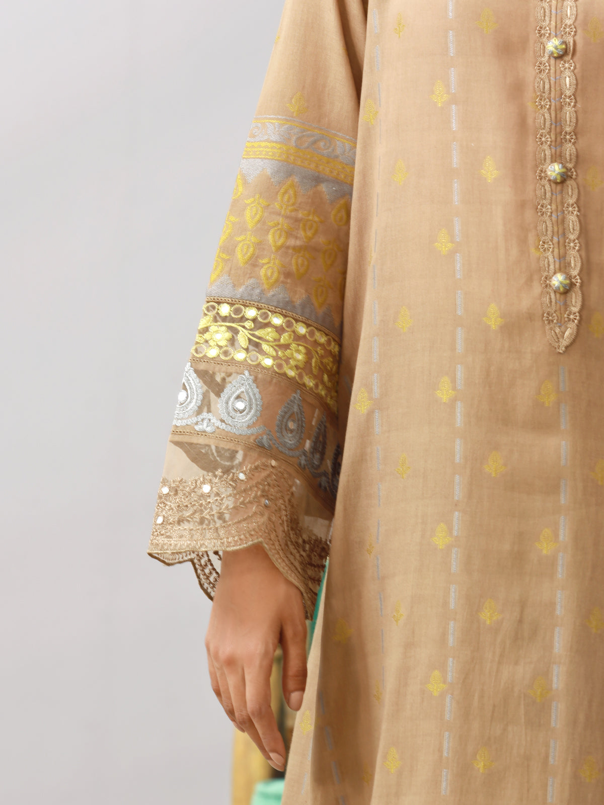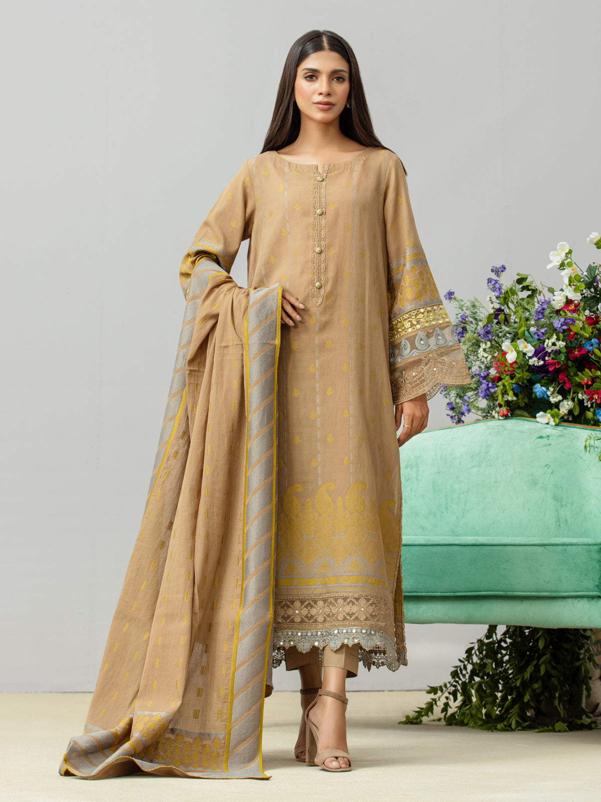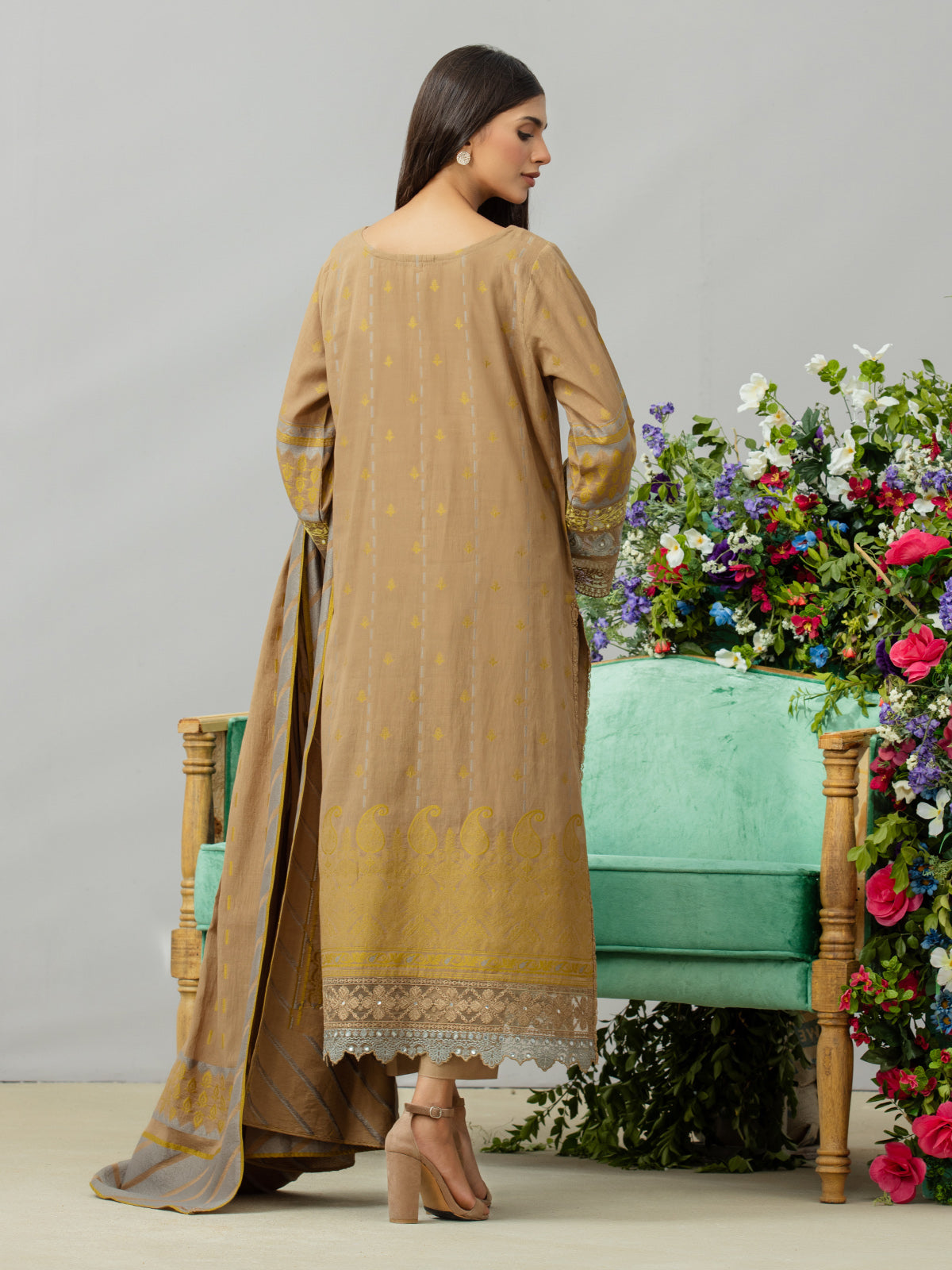 Unstitched Khaki Embroidered Jacquard 2 Piece