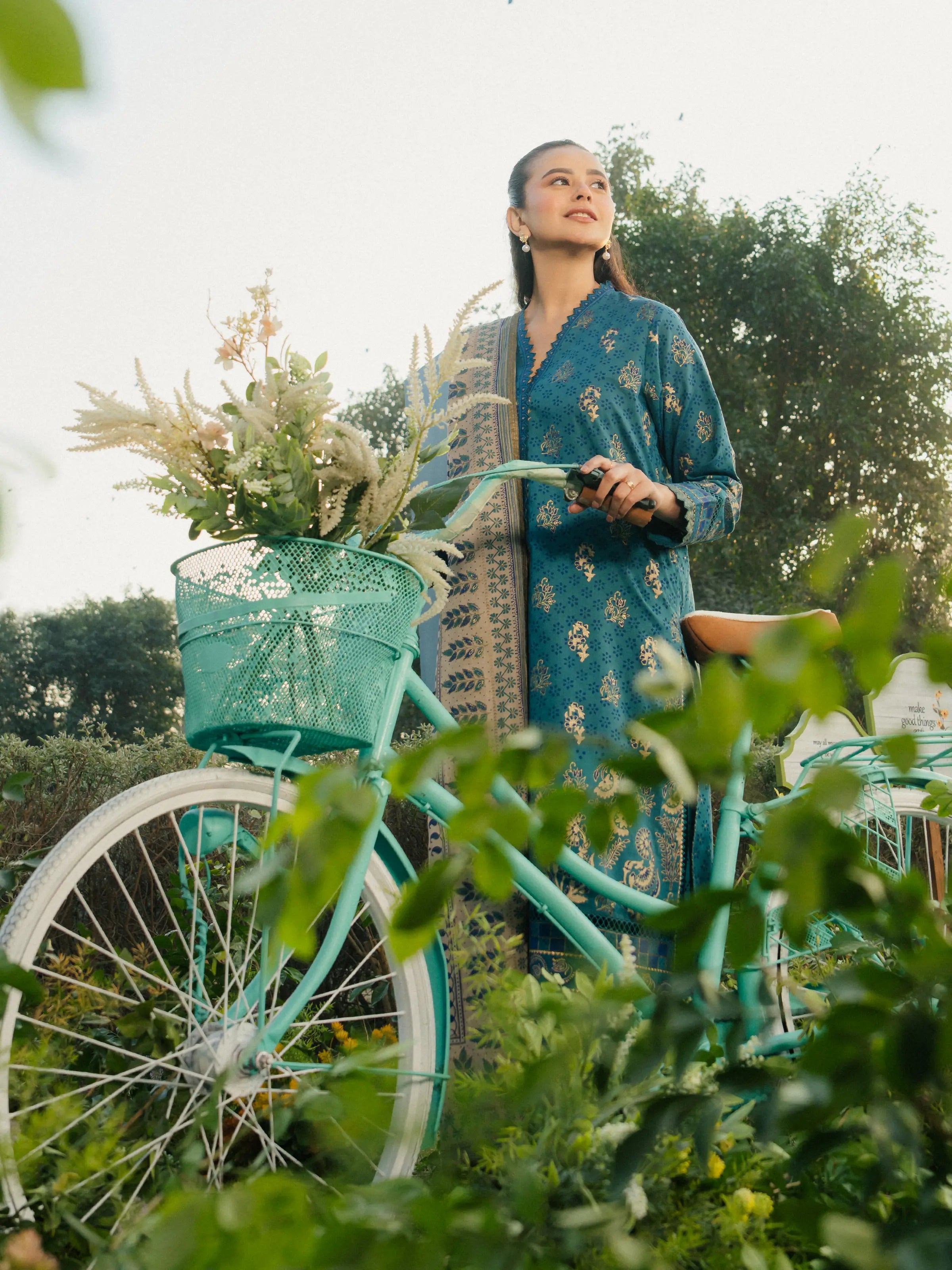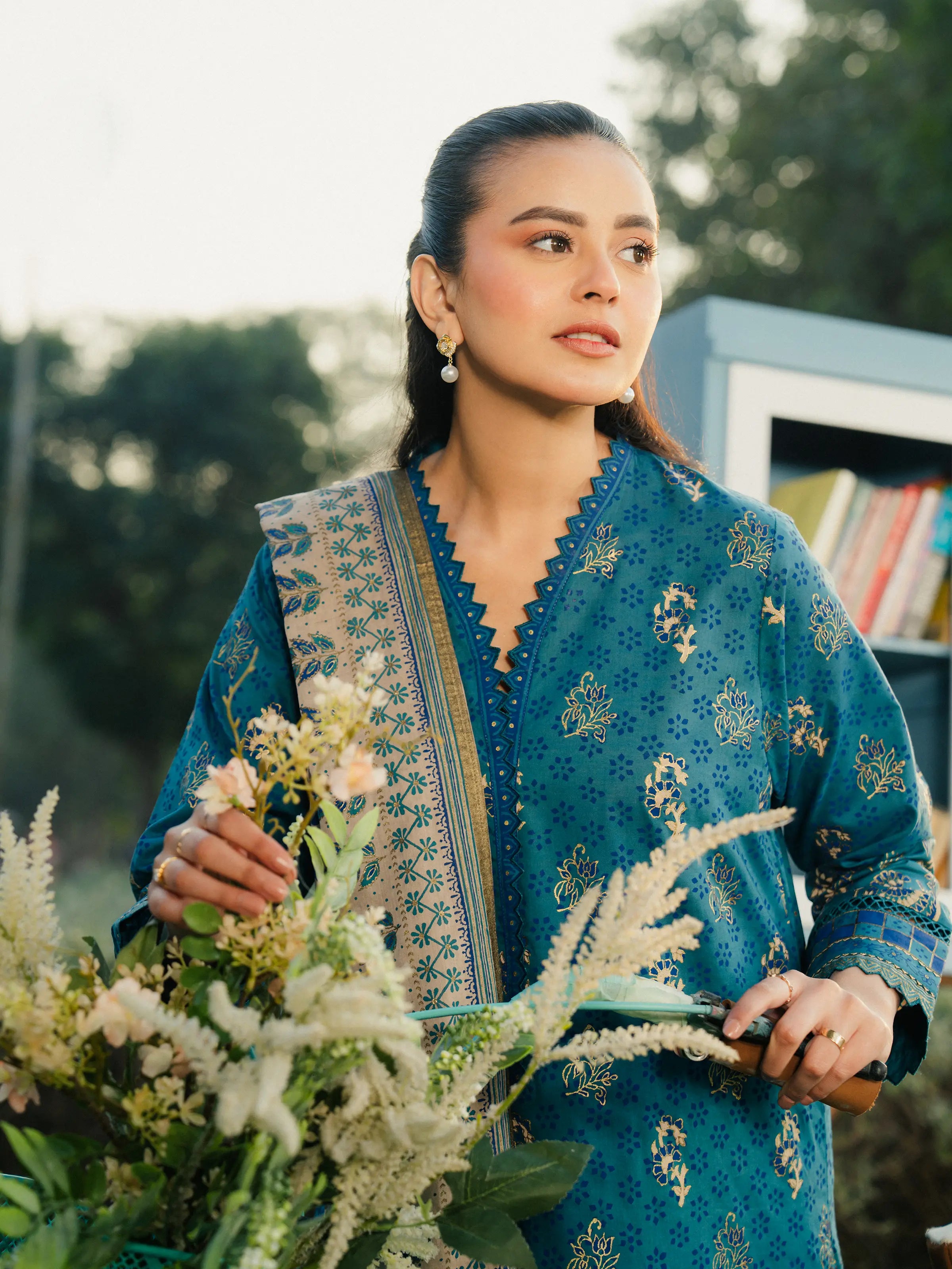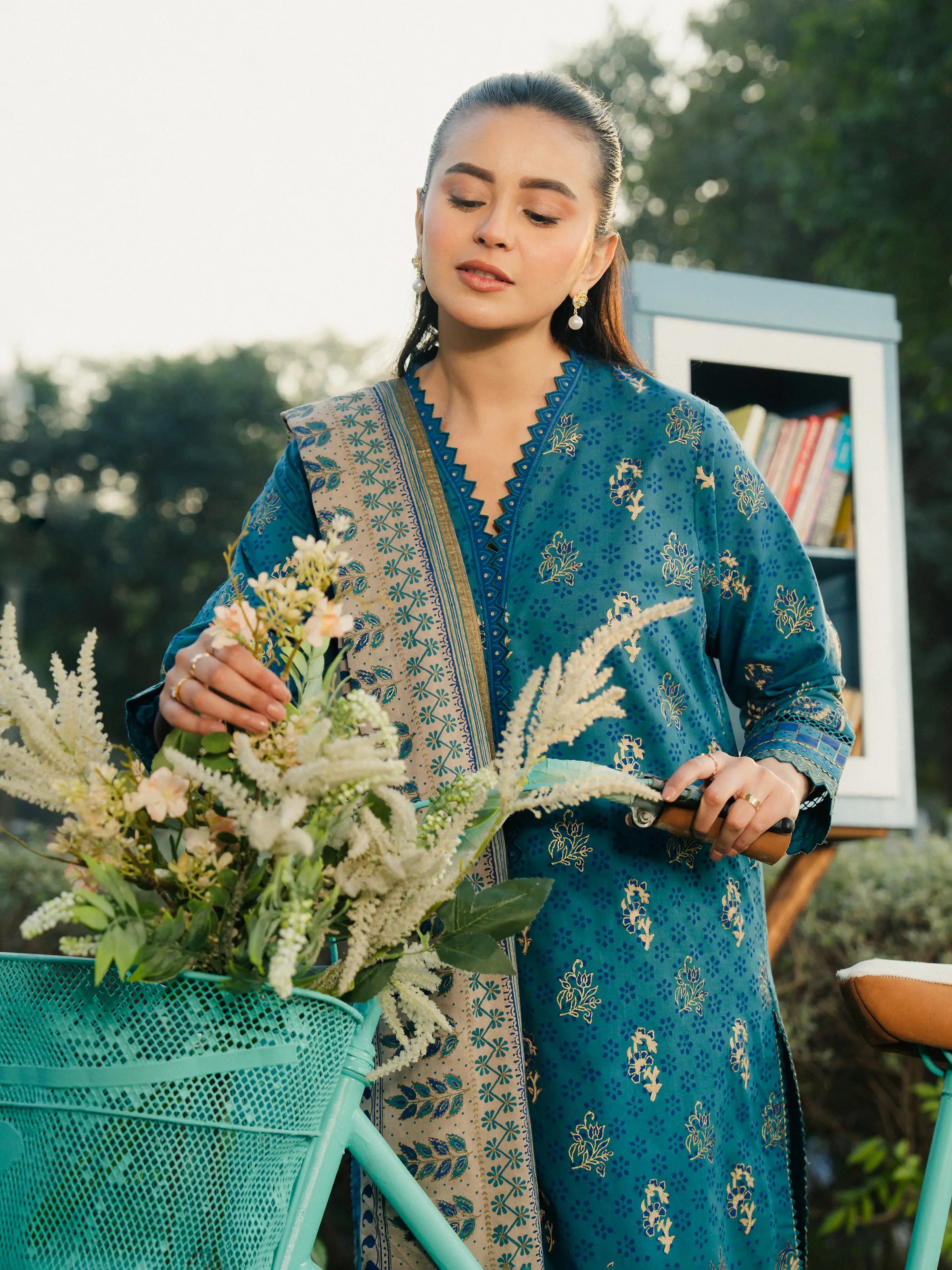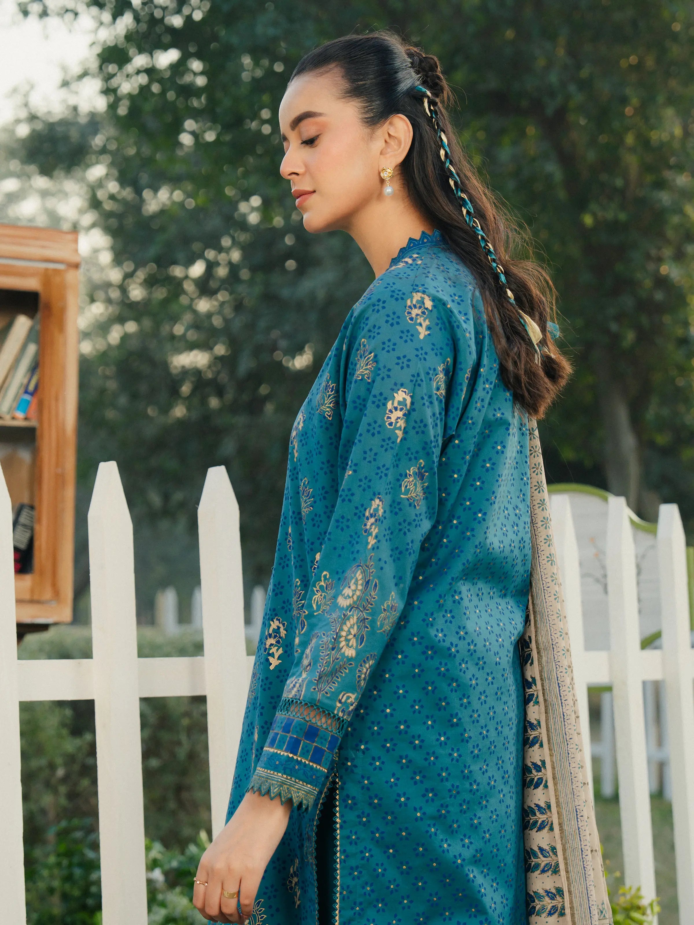 Unstitched Teal Printed Cambric 1 Piece