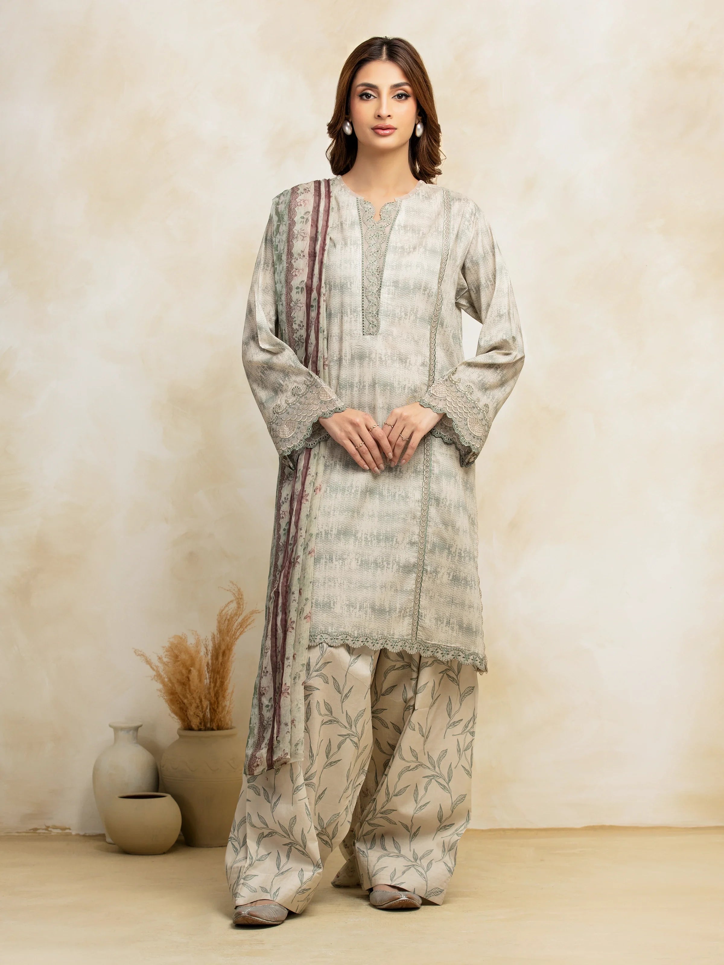 Unstitched Light Beige Embroidered Lawn 2 Piece
