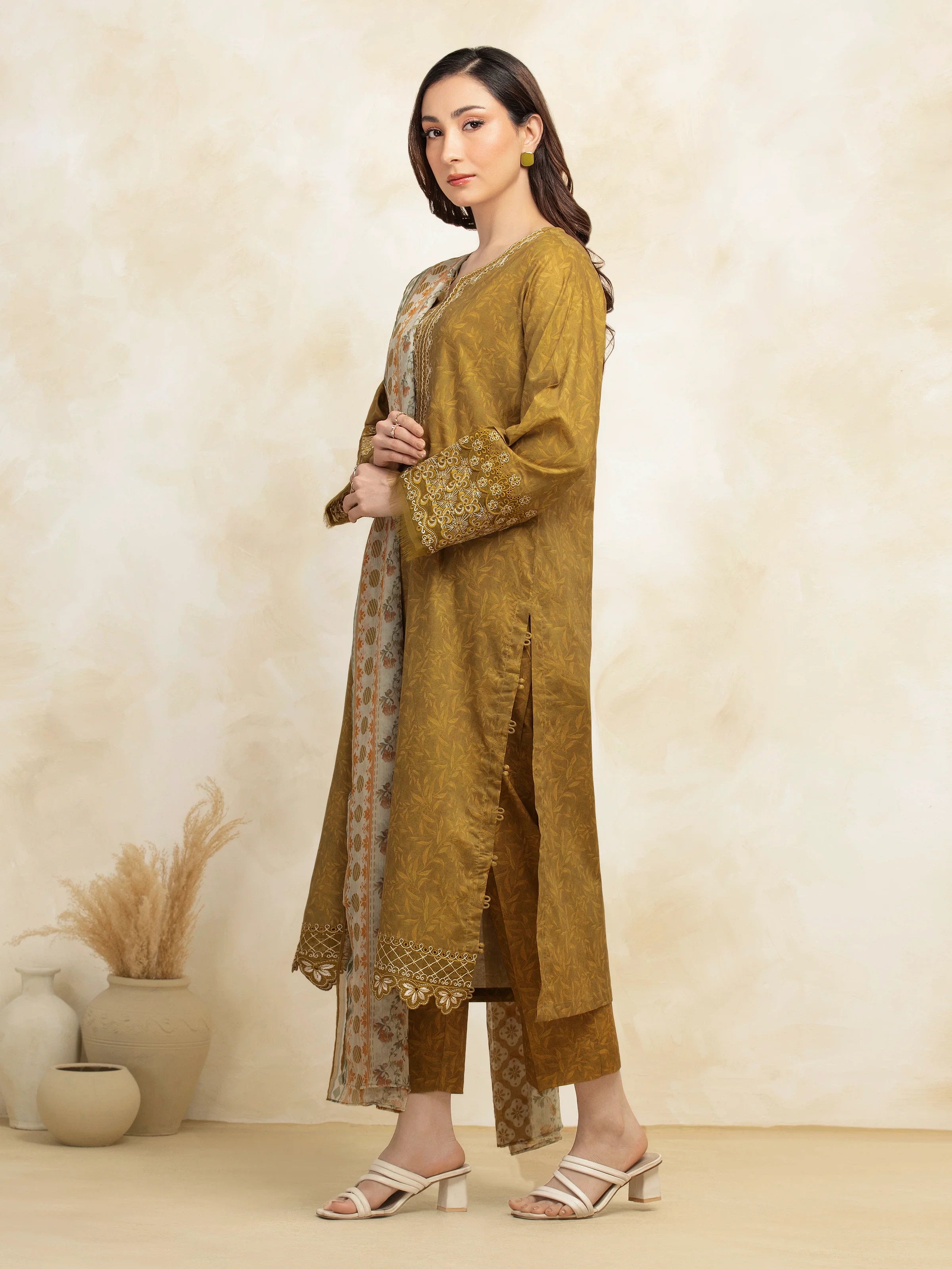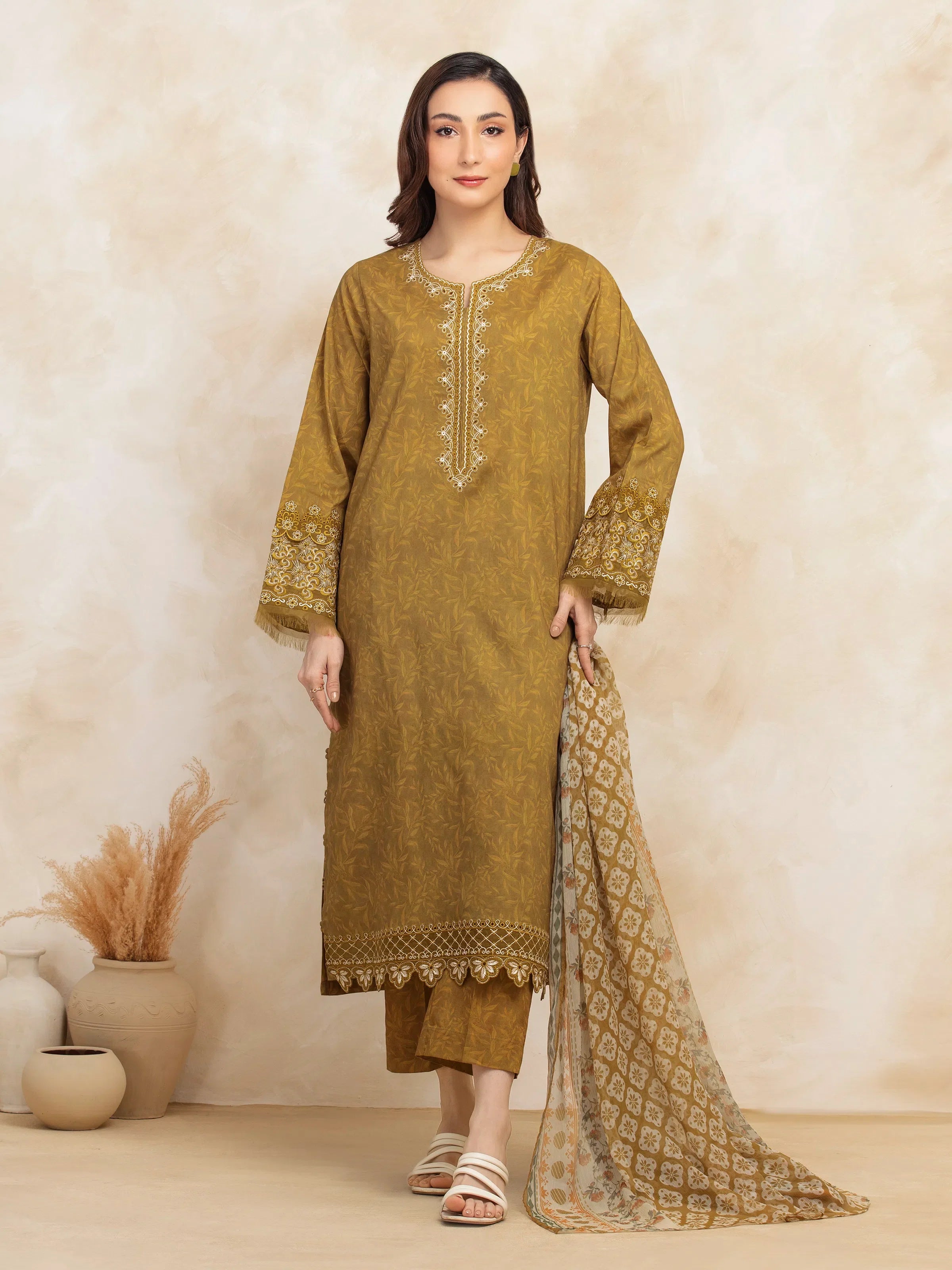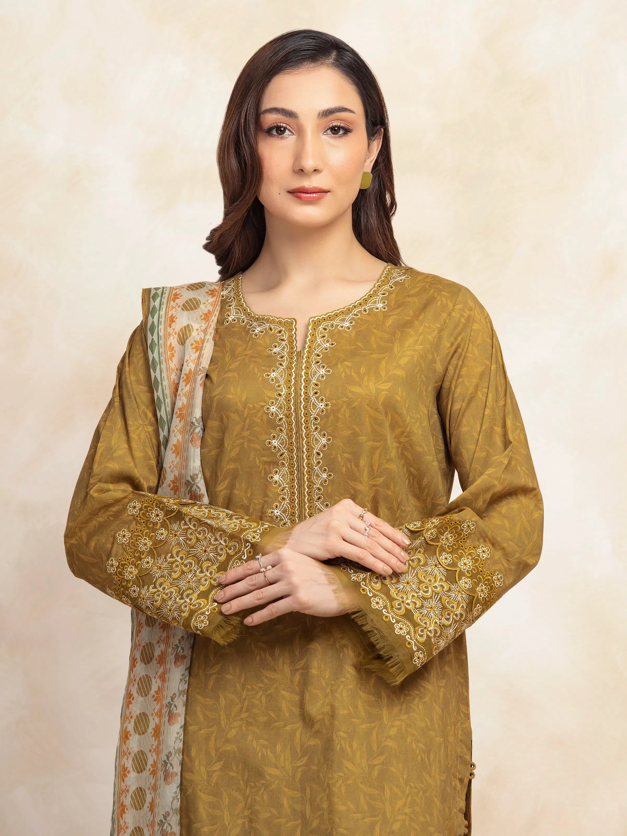 Unstitched Mustard Embroidered Lawn 2 Piece
