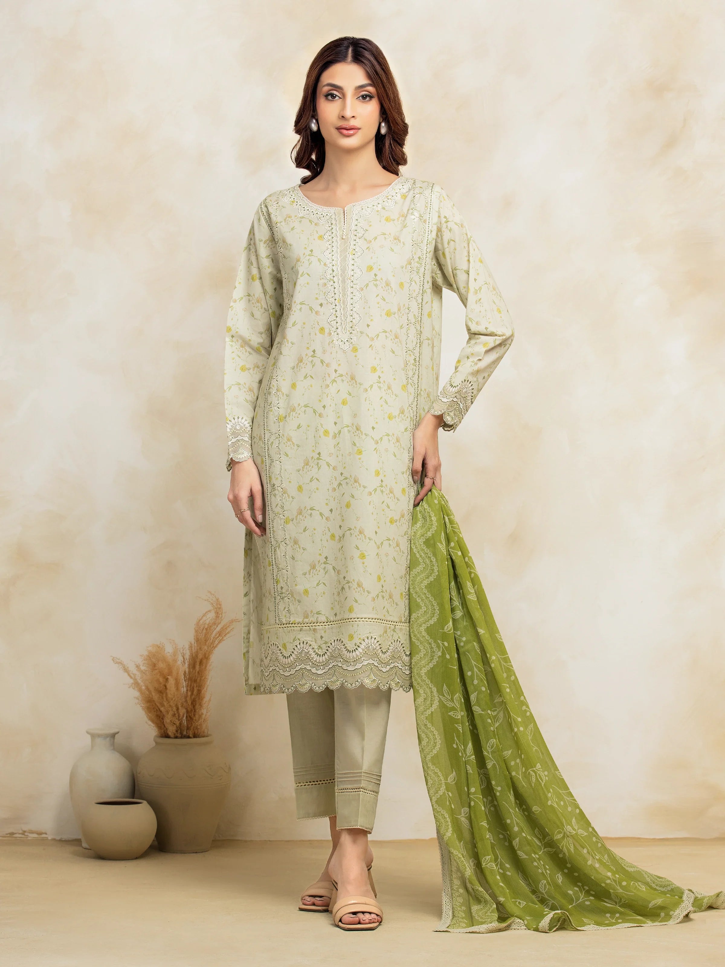 Unstitched Light Green Embroidered Lawn 2 Piece