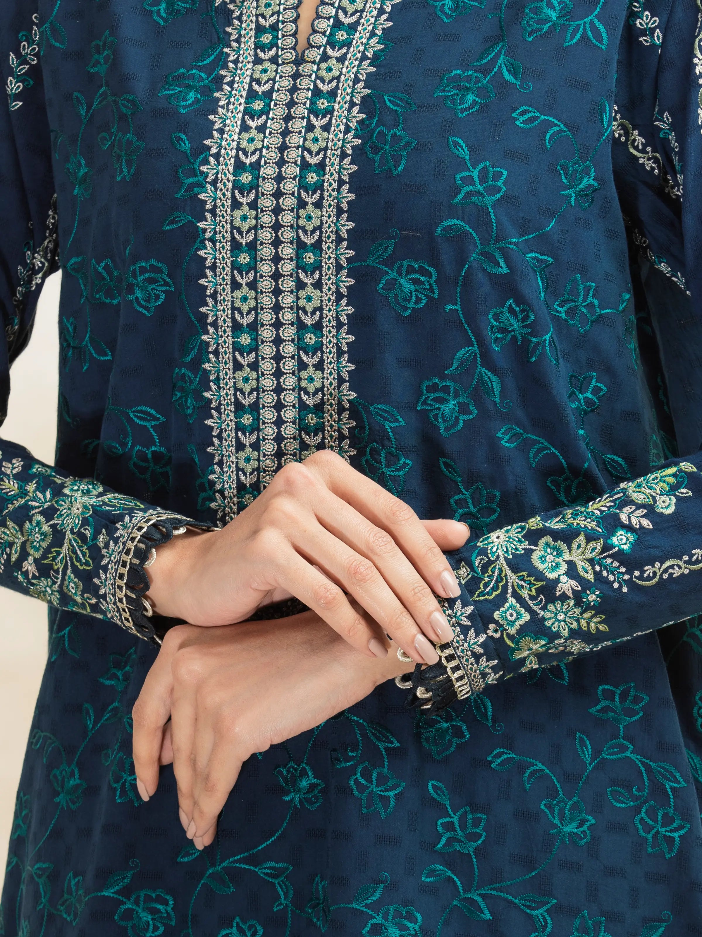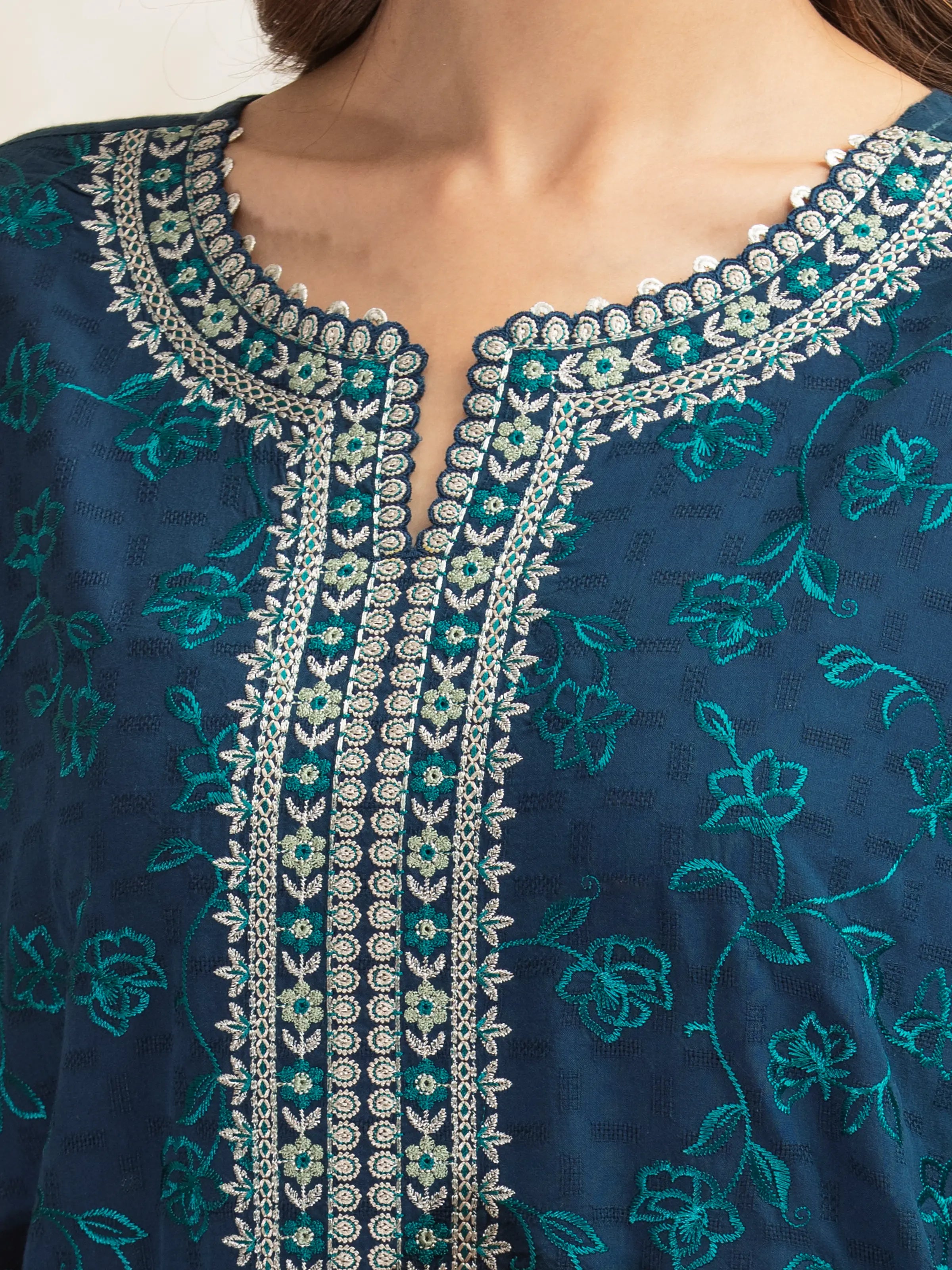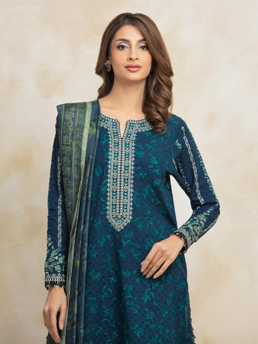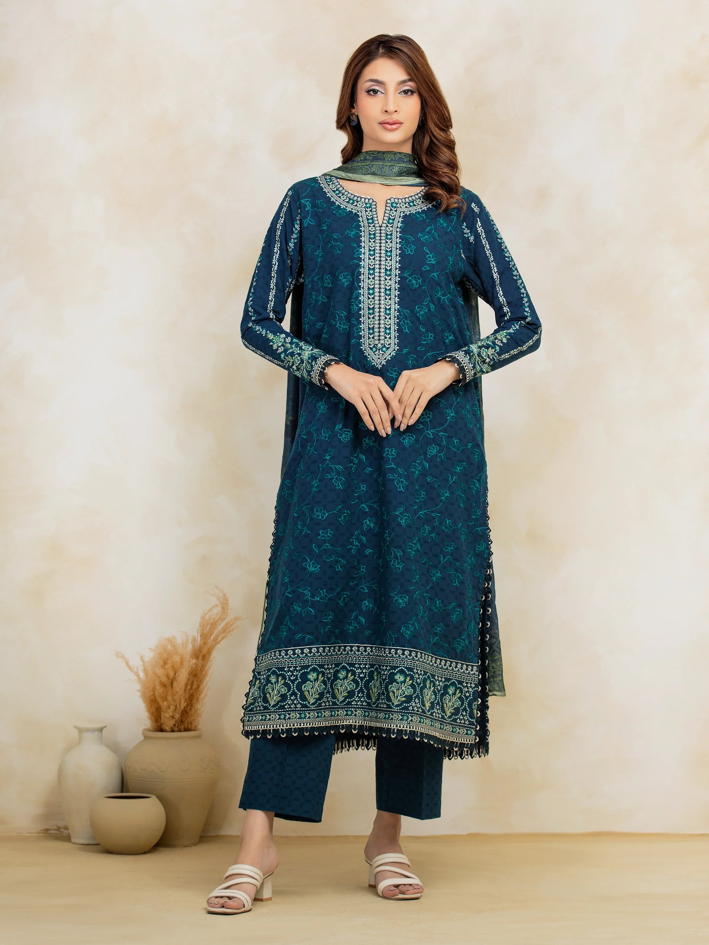 Unstitched Dark Teal Embroidered Lawn 2 Piece