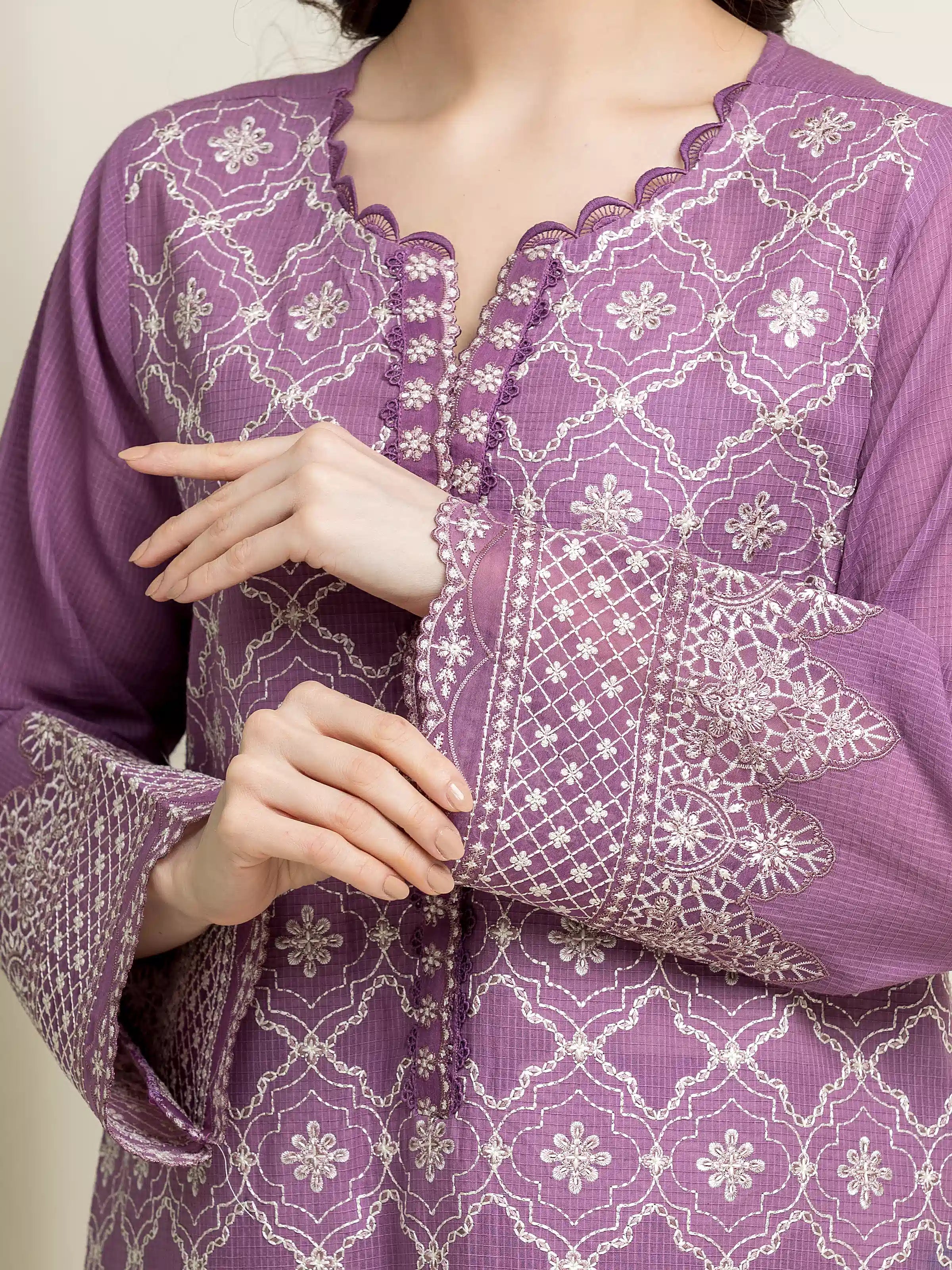 Unstitched Dark Lilac Embroidered Lawn 2 Piece