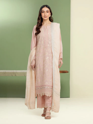 Unstitched Light Peach Embroidered Slub Lawn 2 Piece