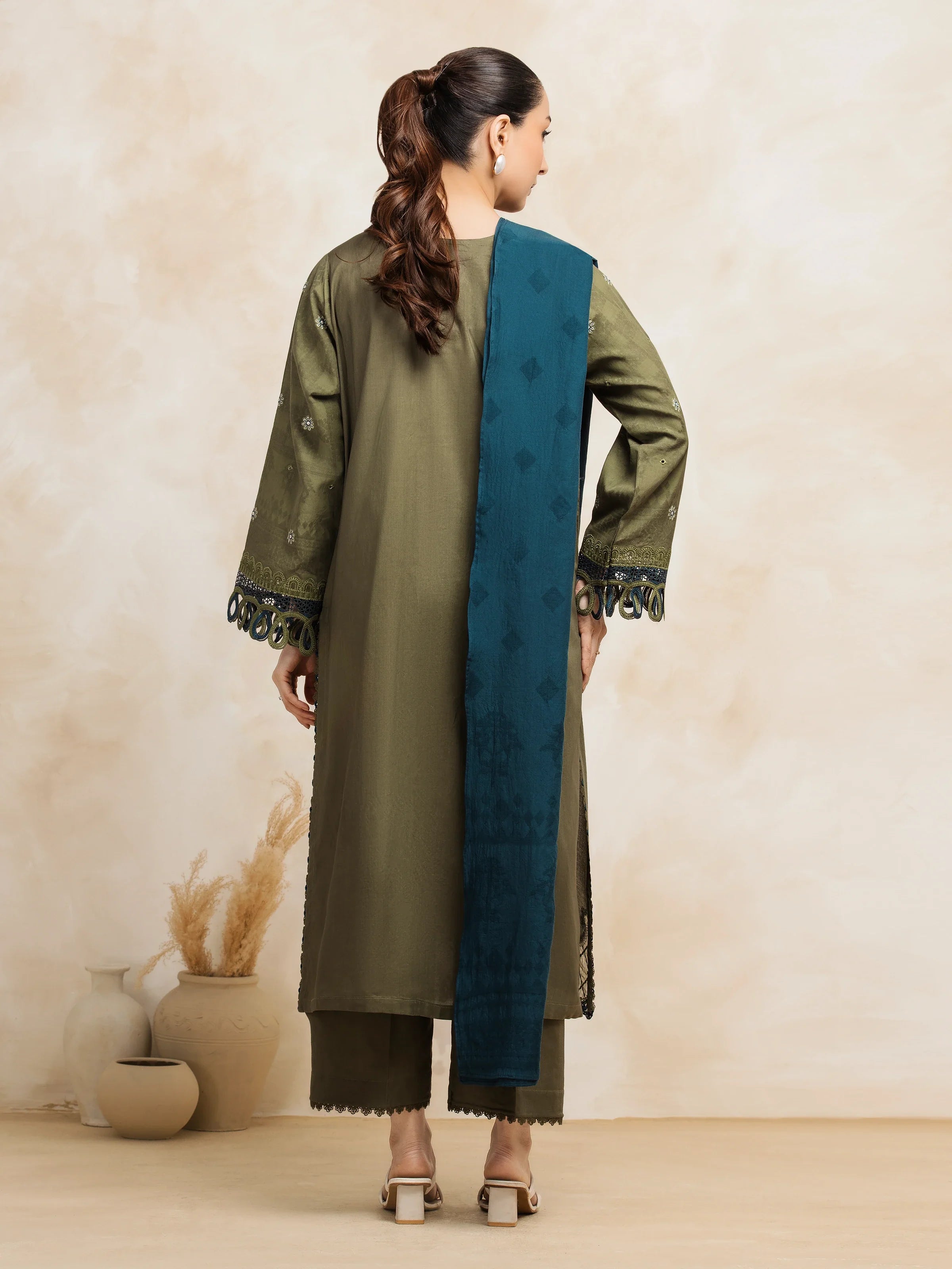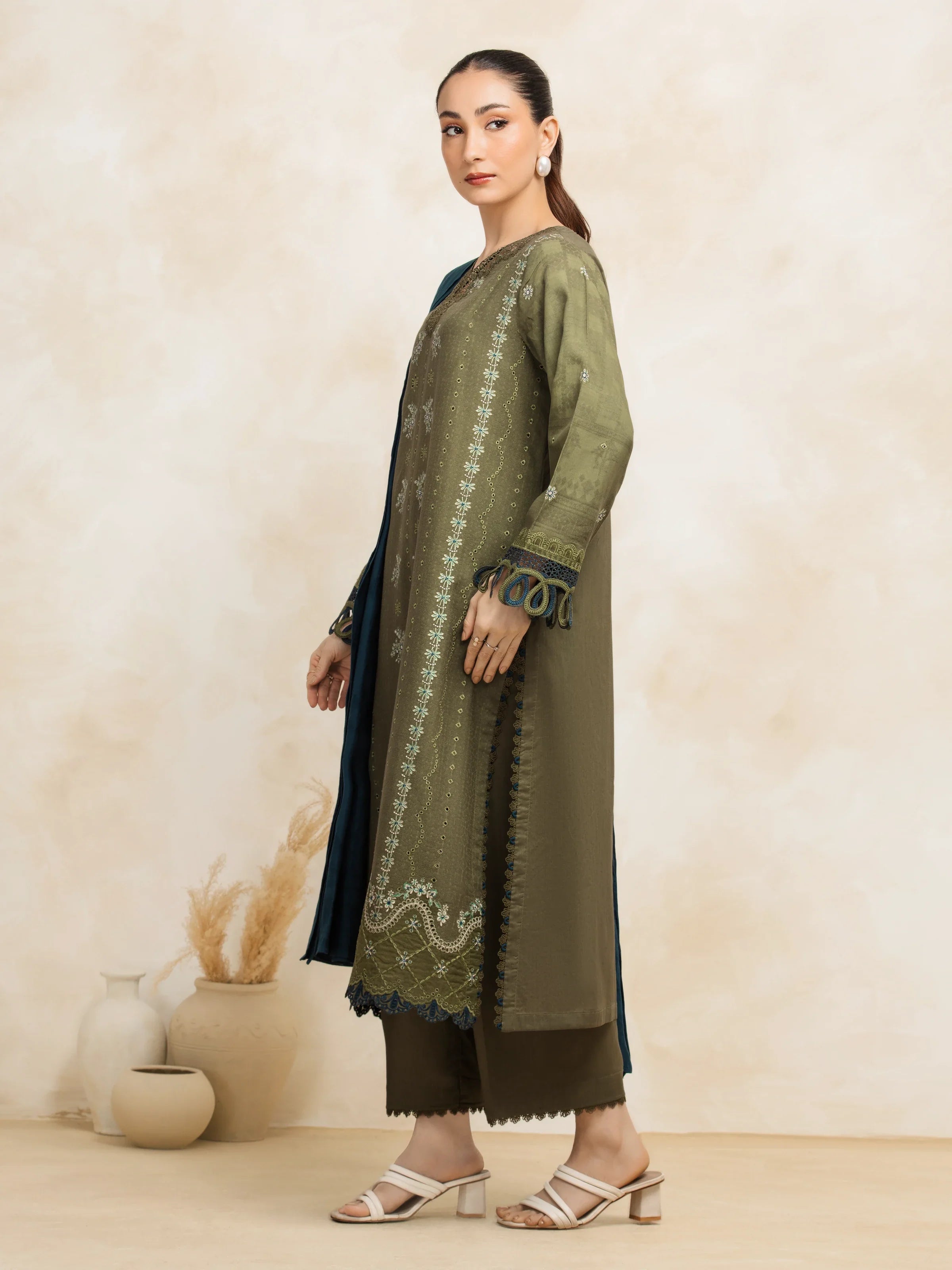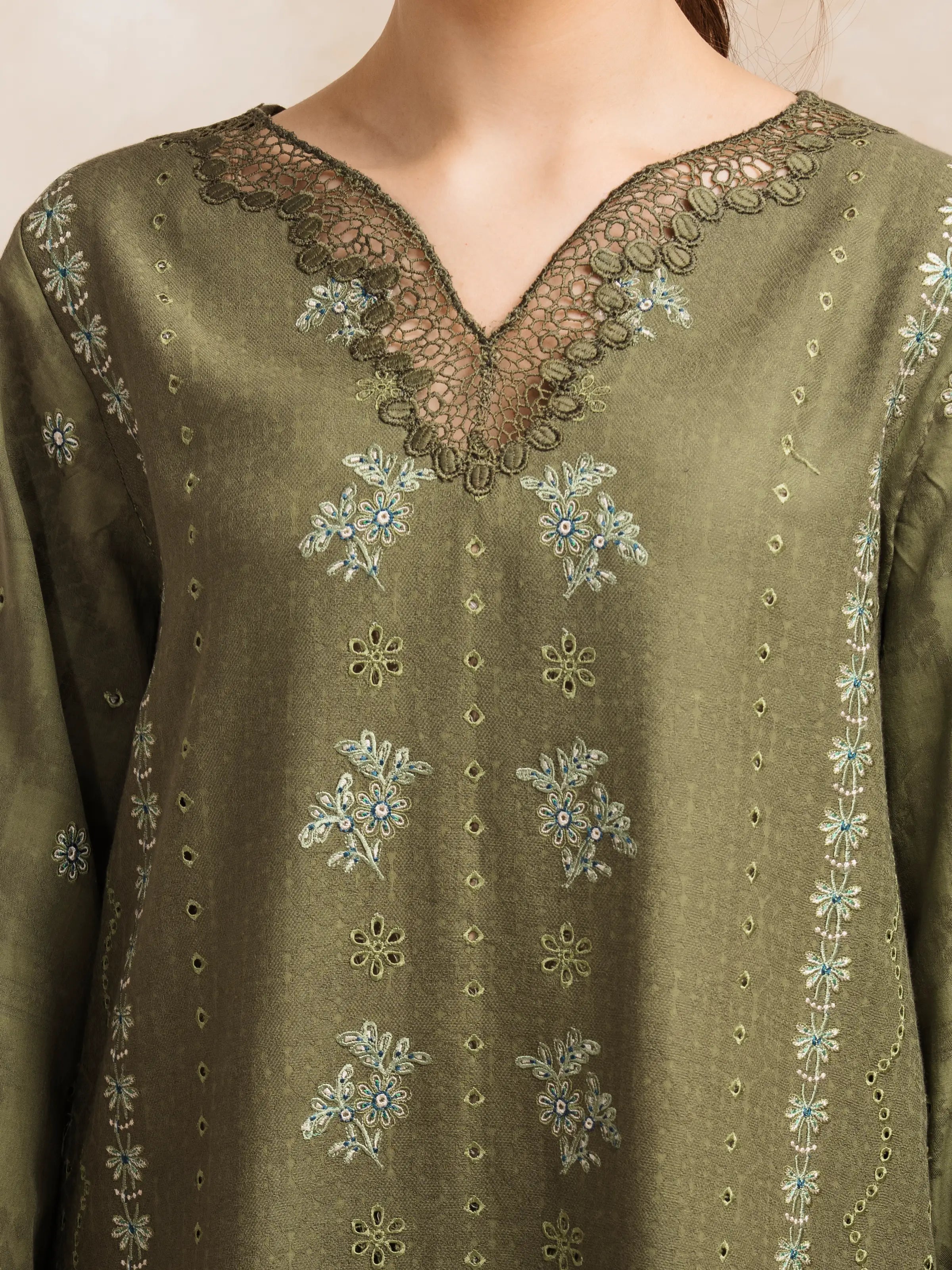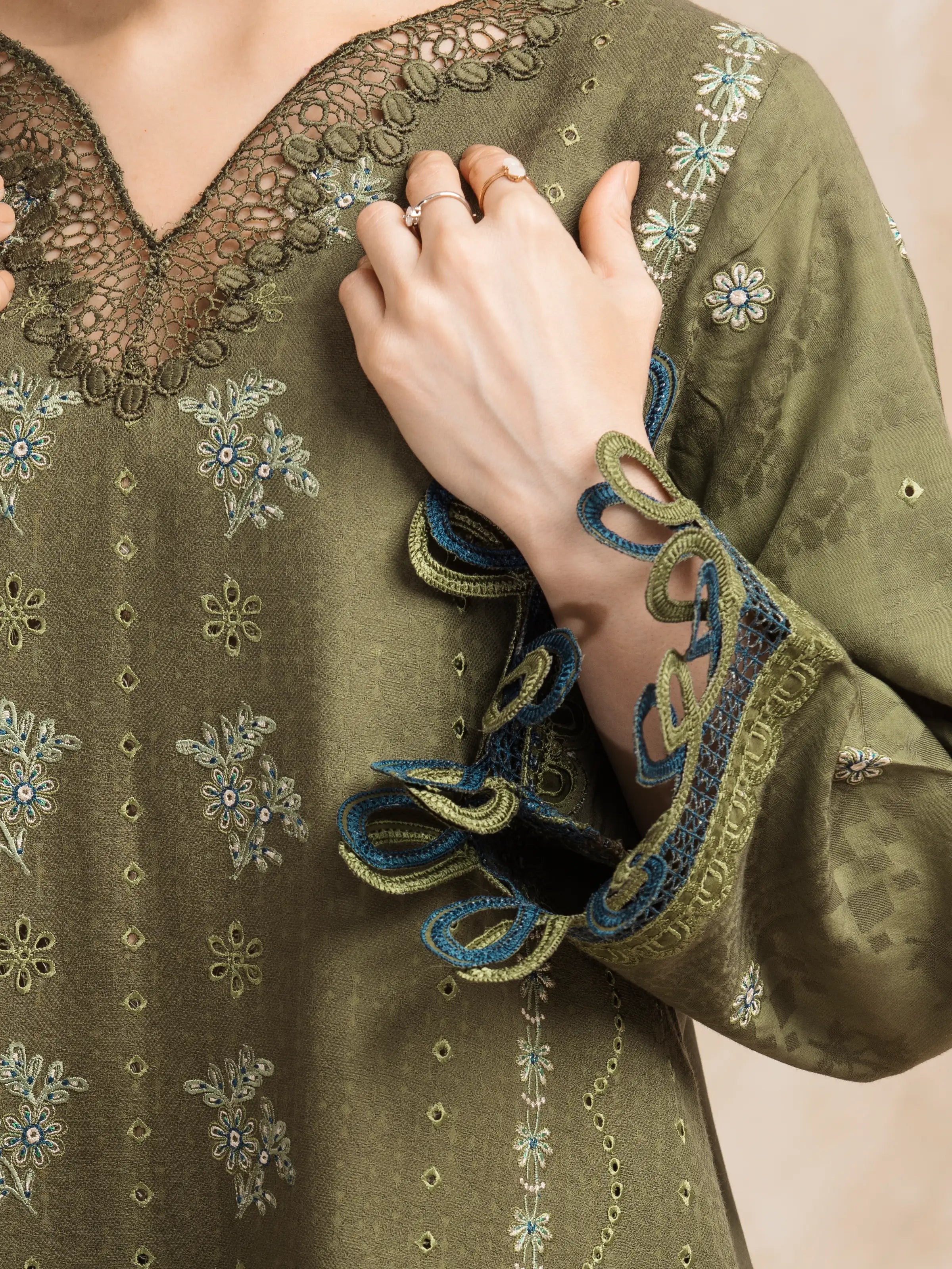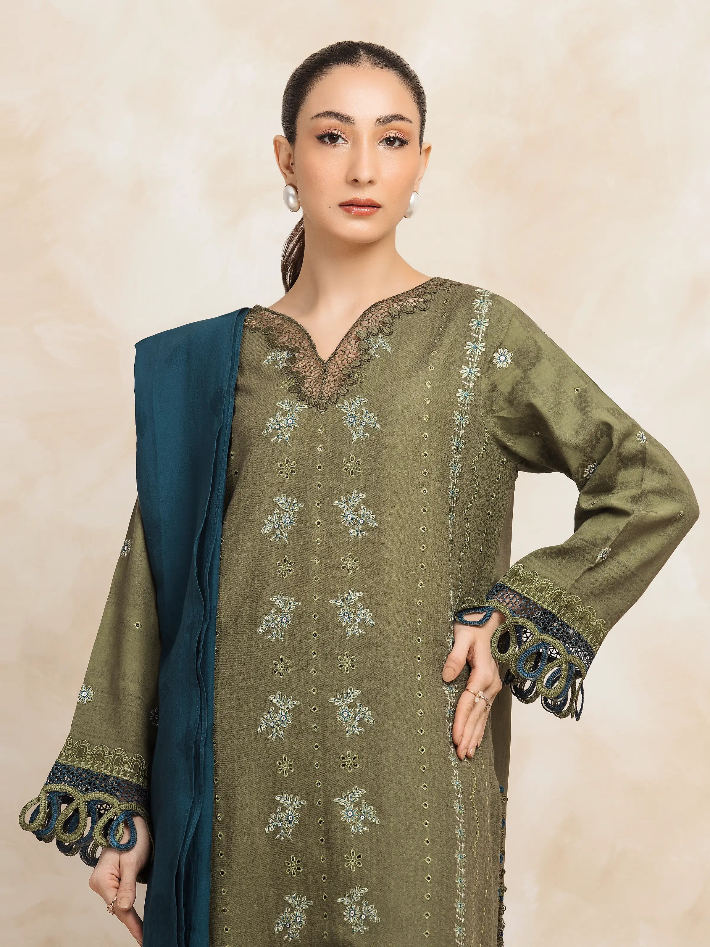 Unstitched Olive Embroidered Jacquard 2 Piece