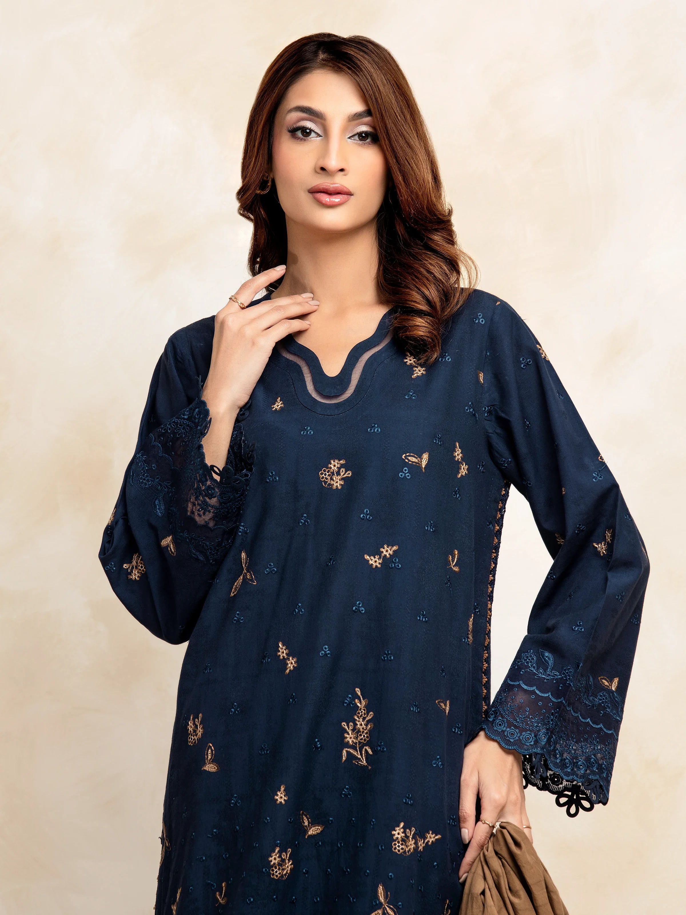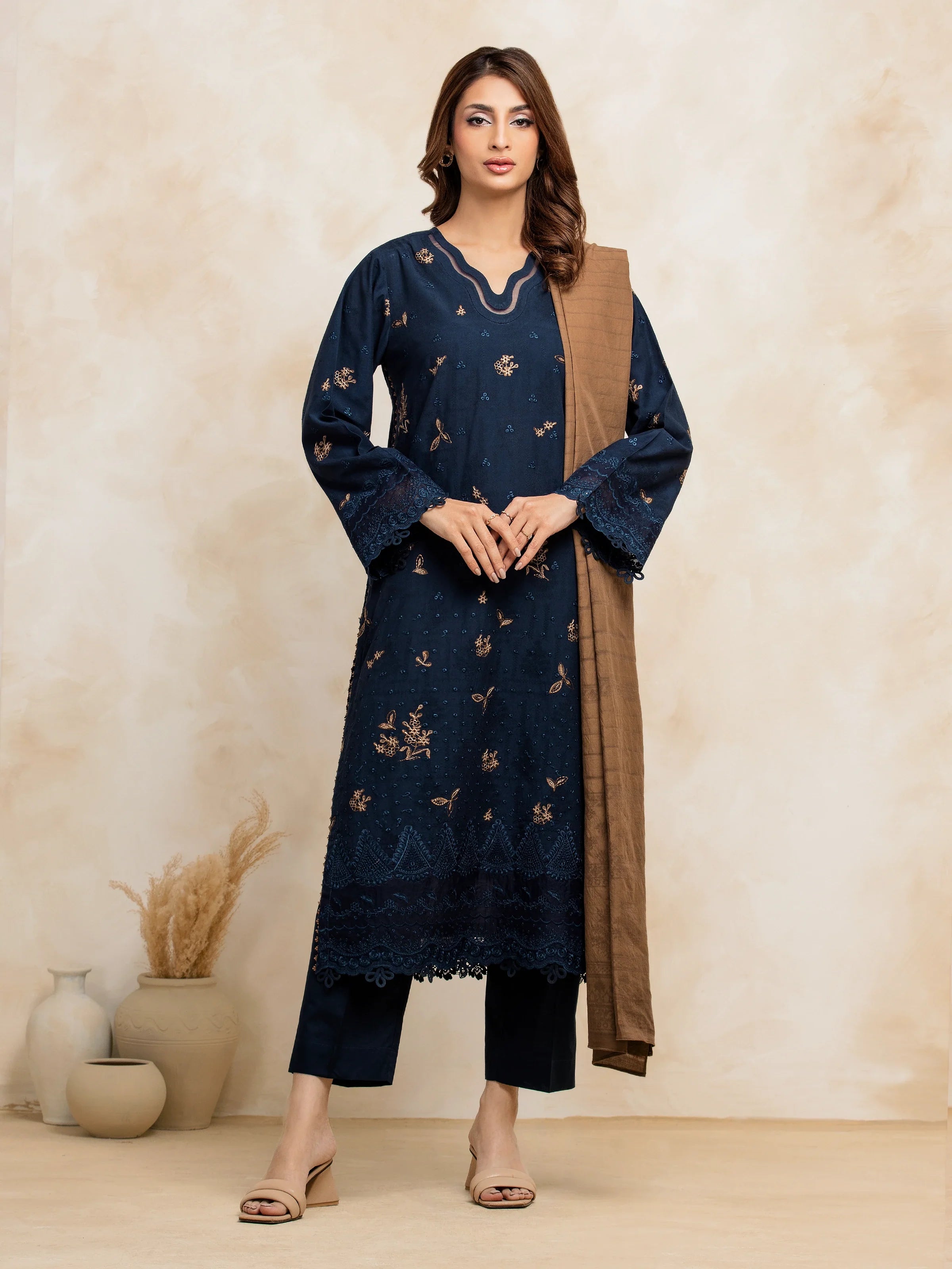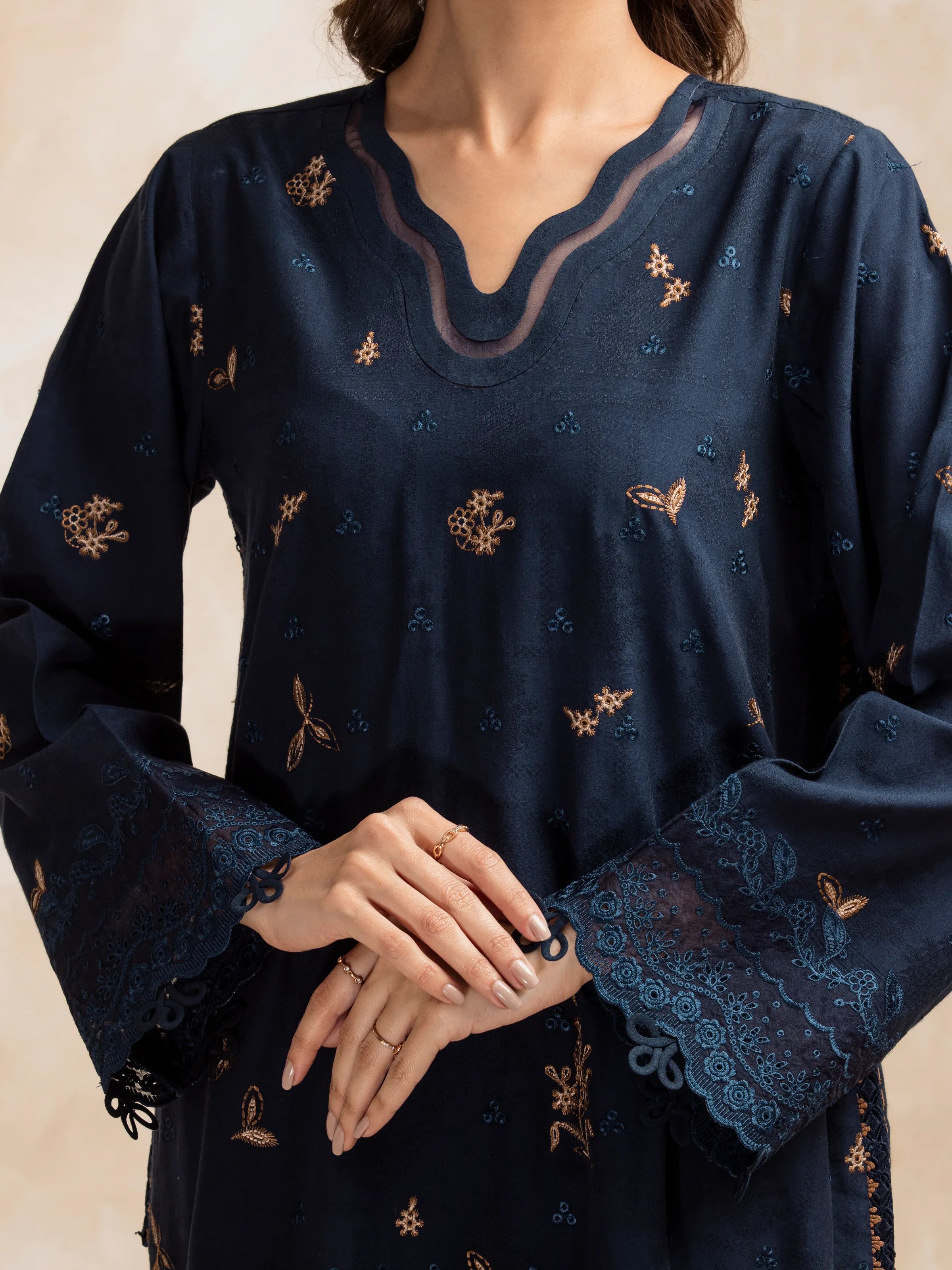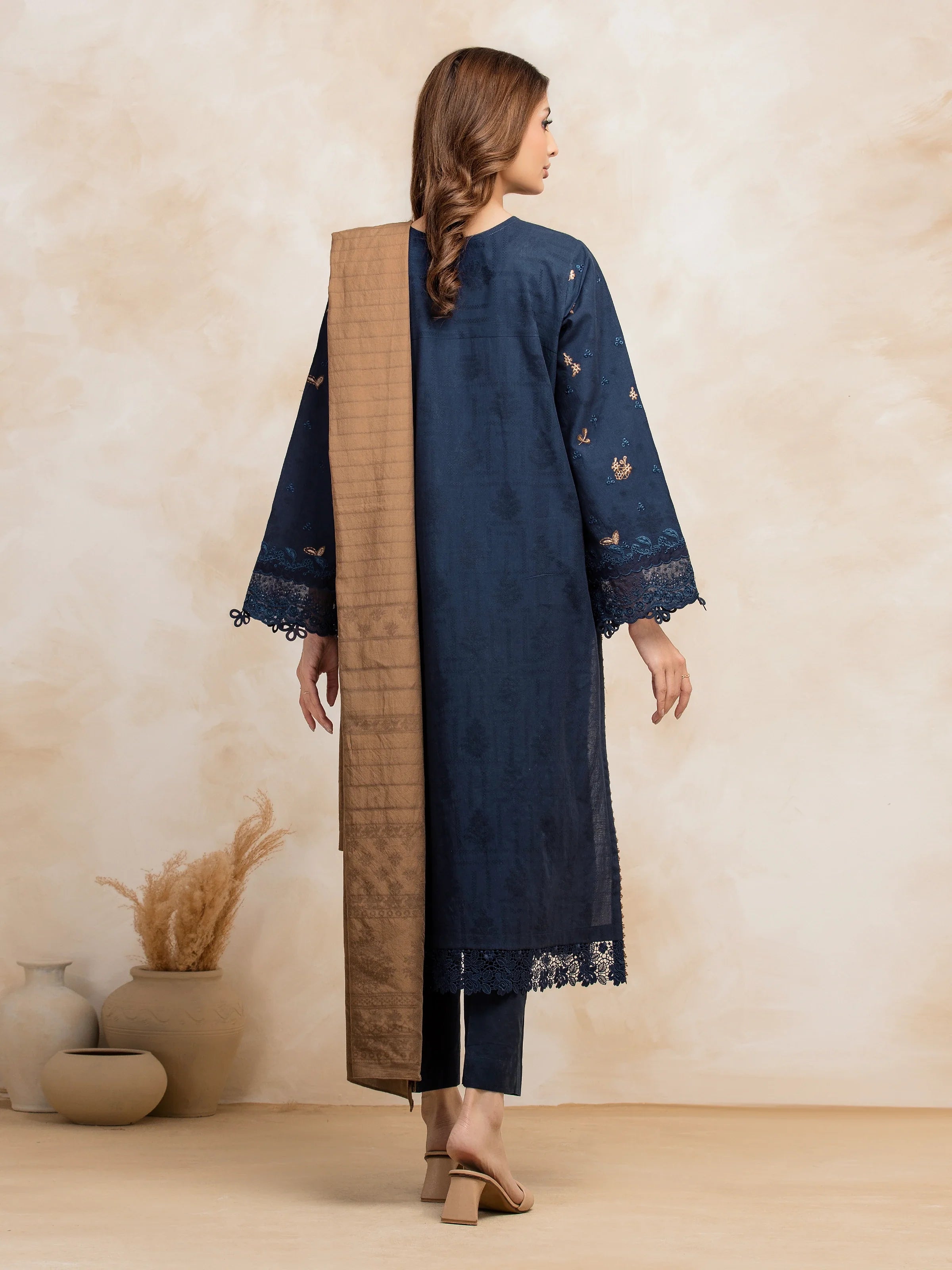 Unstitched Navy Blue Embroidered Jacquard 1 Piece