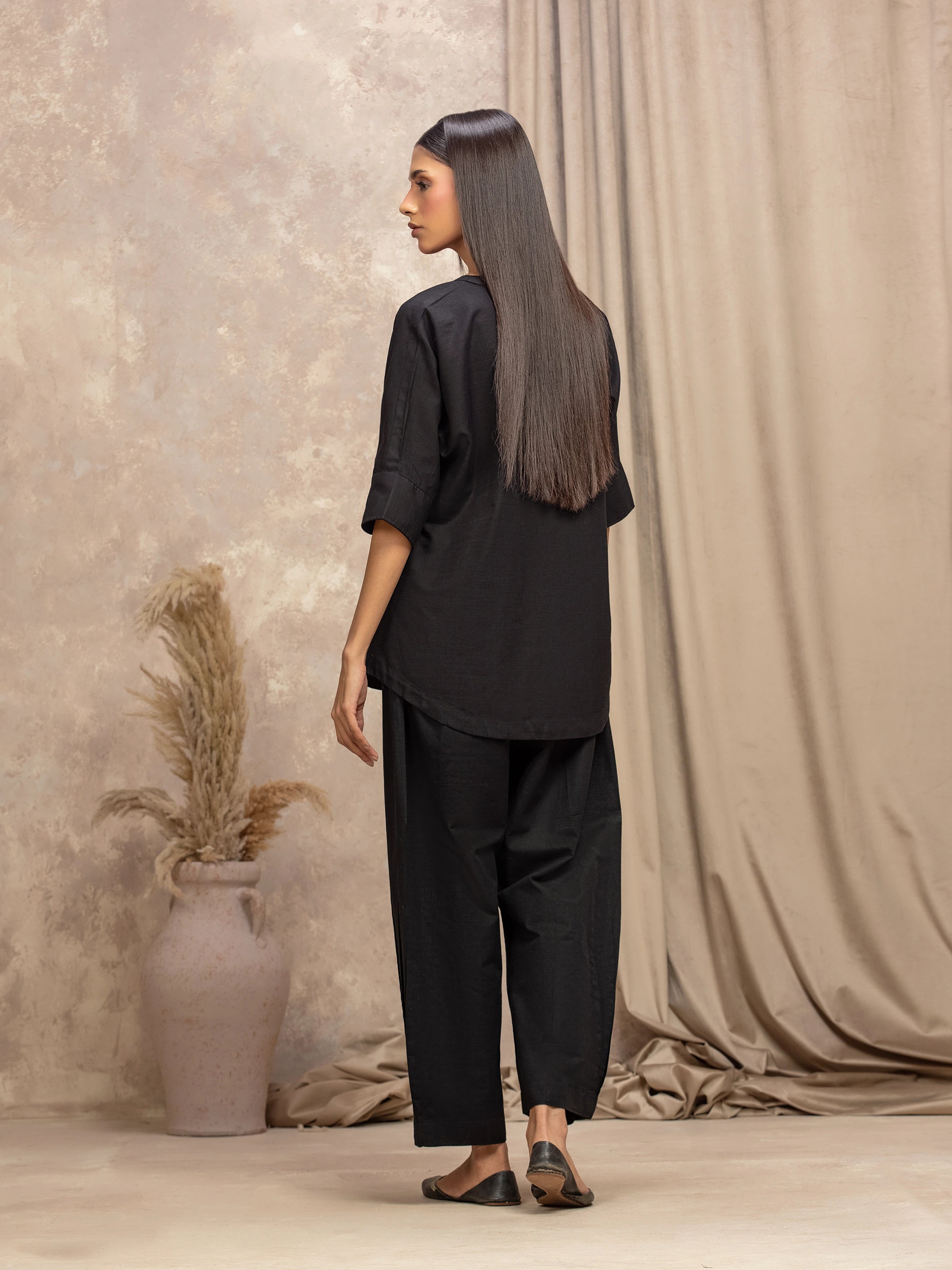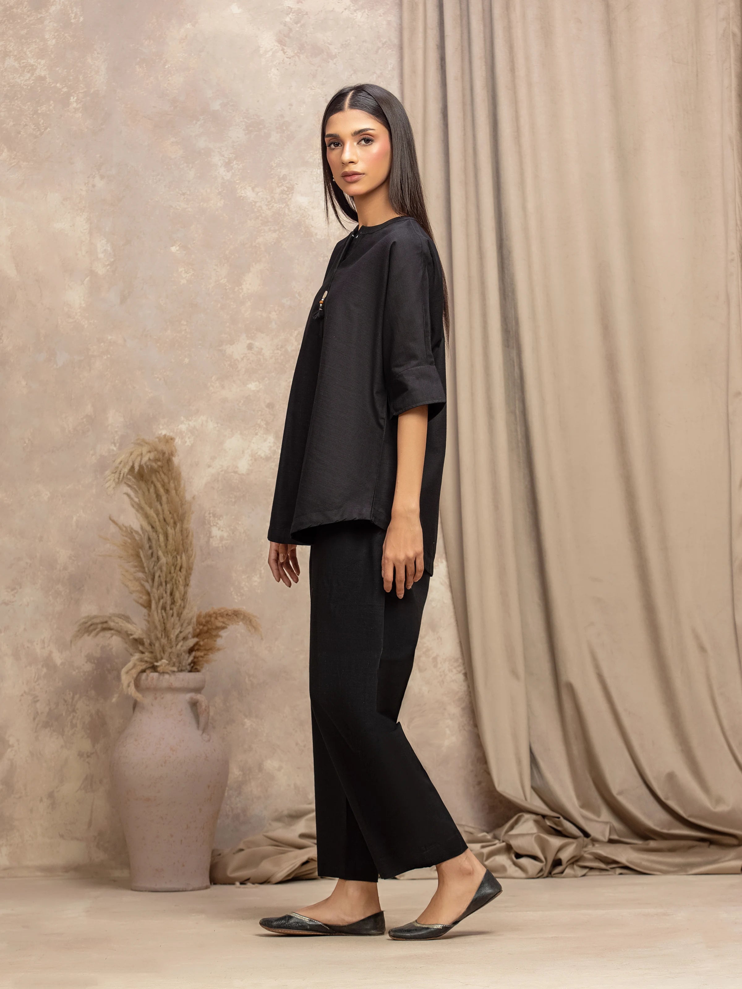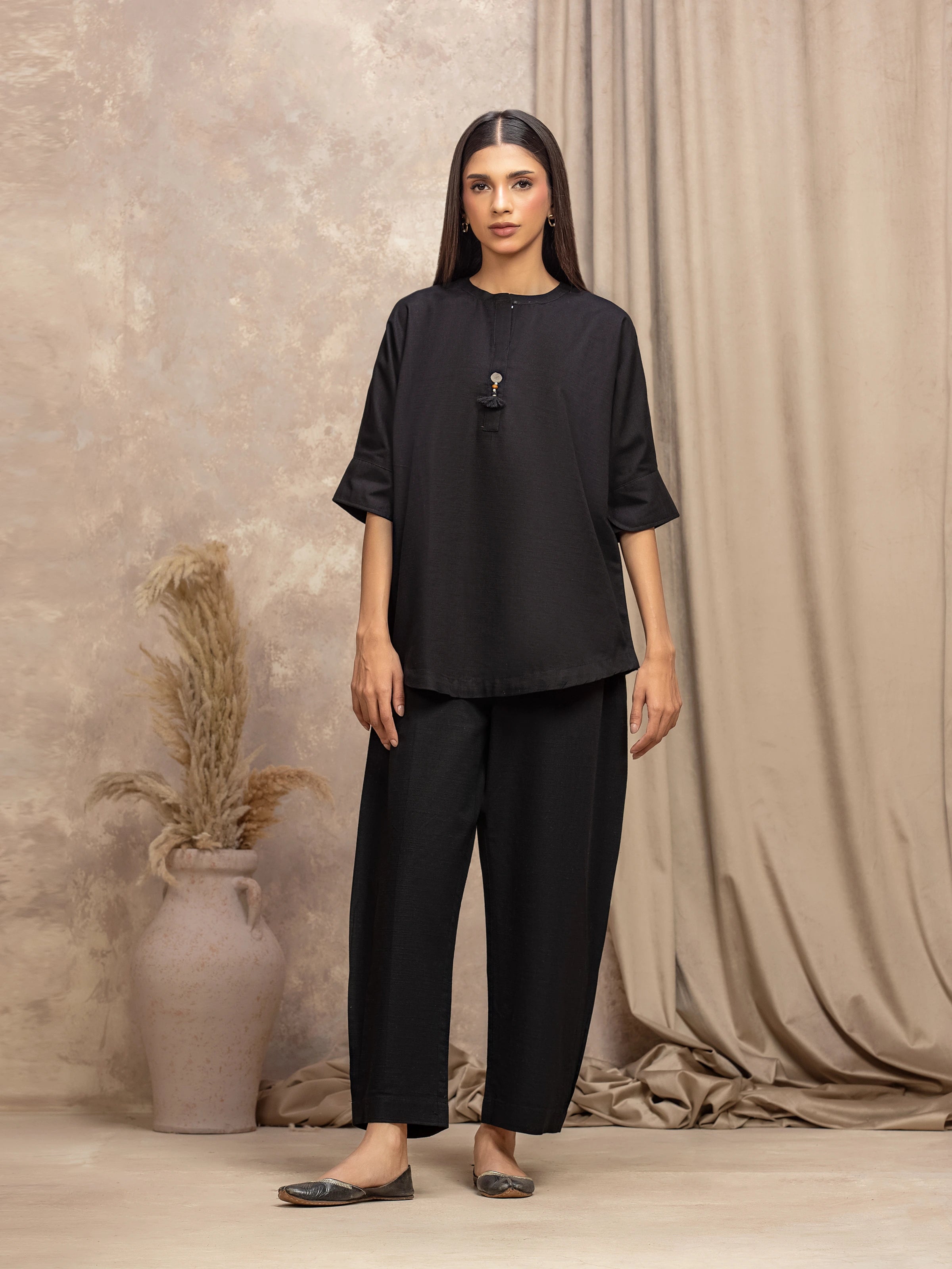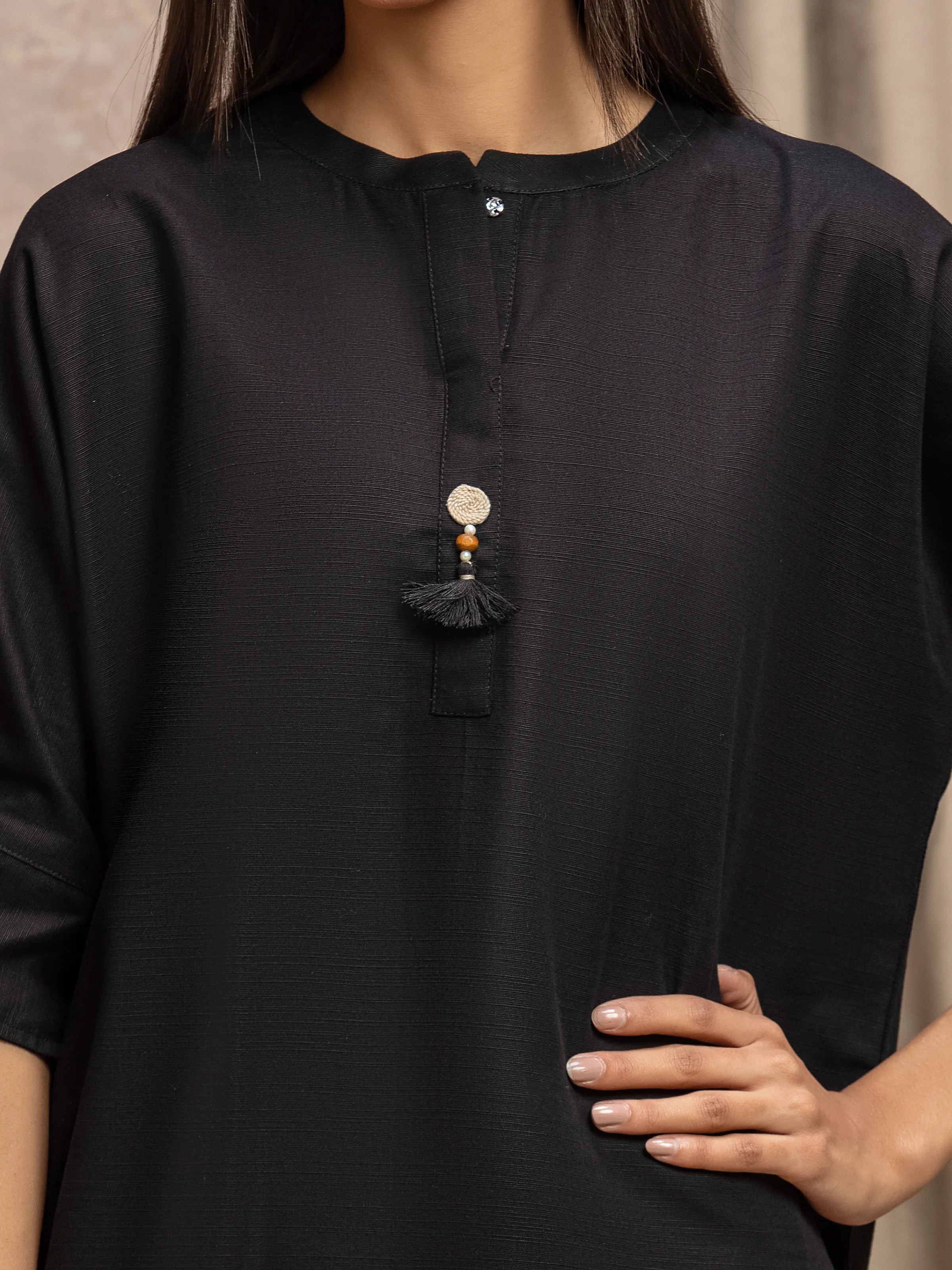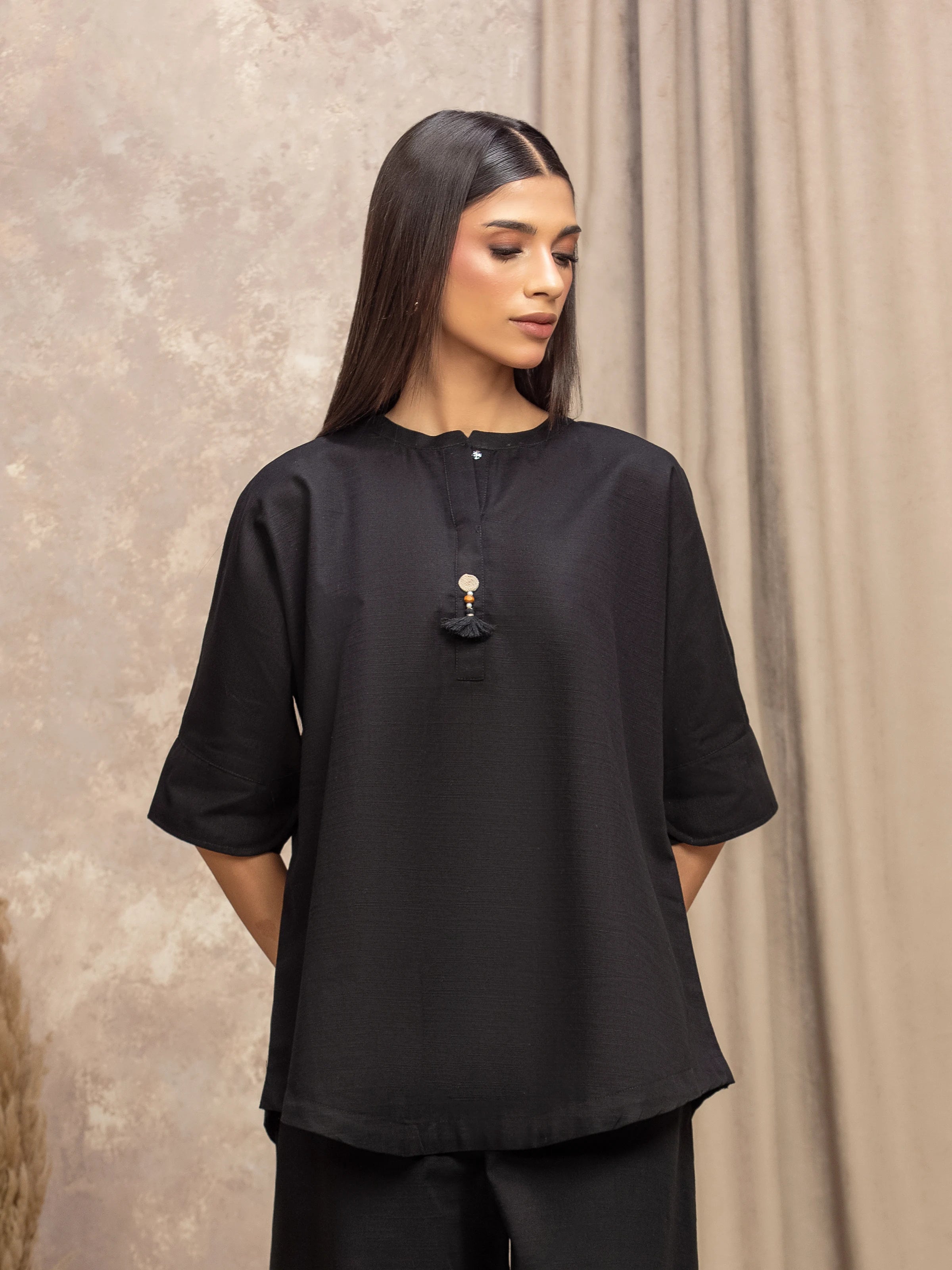 - Style: Plain Shirt with Embellished Tassel on Placket
