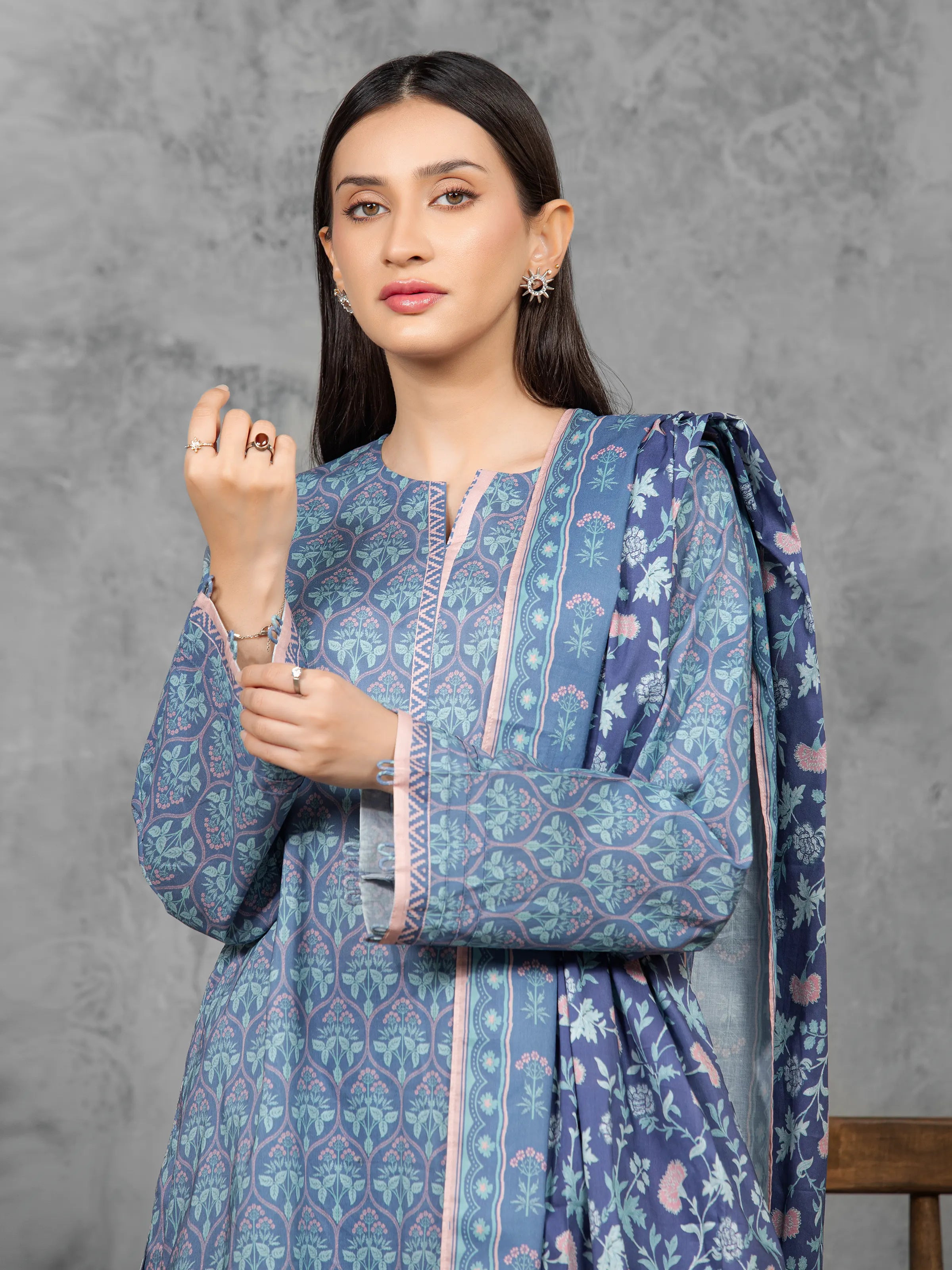 Unstitched Blue Printed Lawn Suit