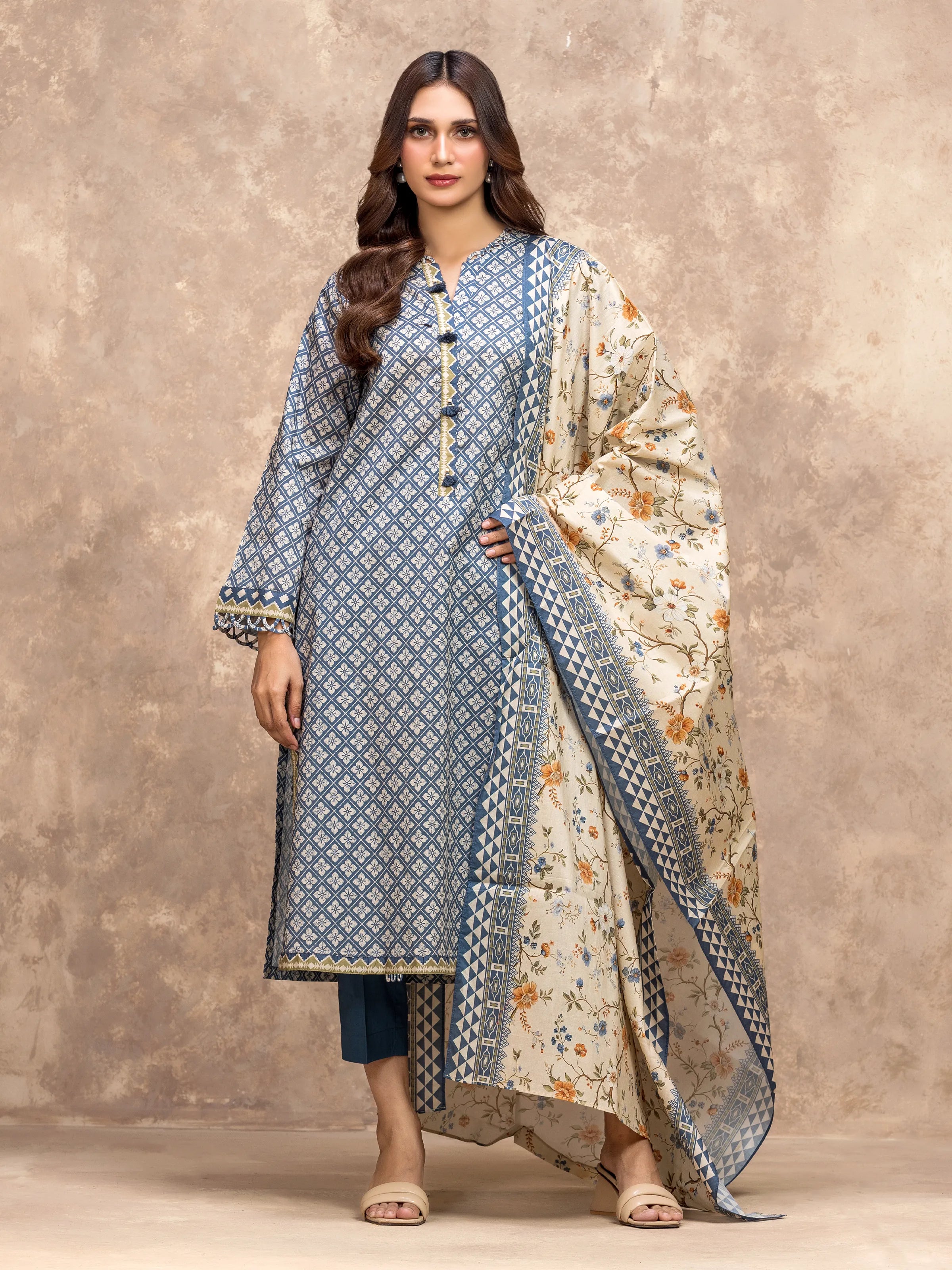 Unstitched Blue Printed Lawn Suit