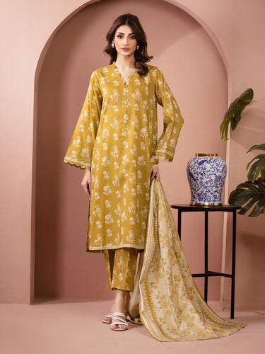 Unstitched Light Olive Printed Lawn Suit