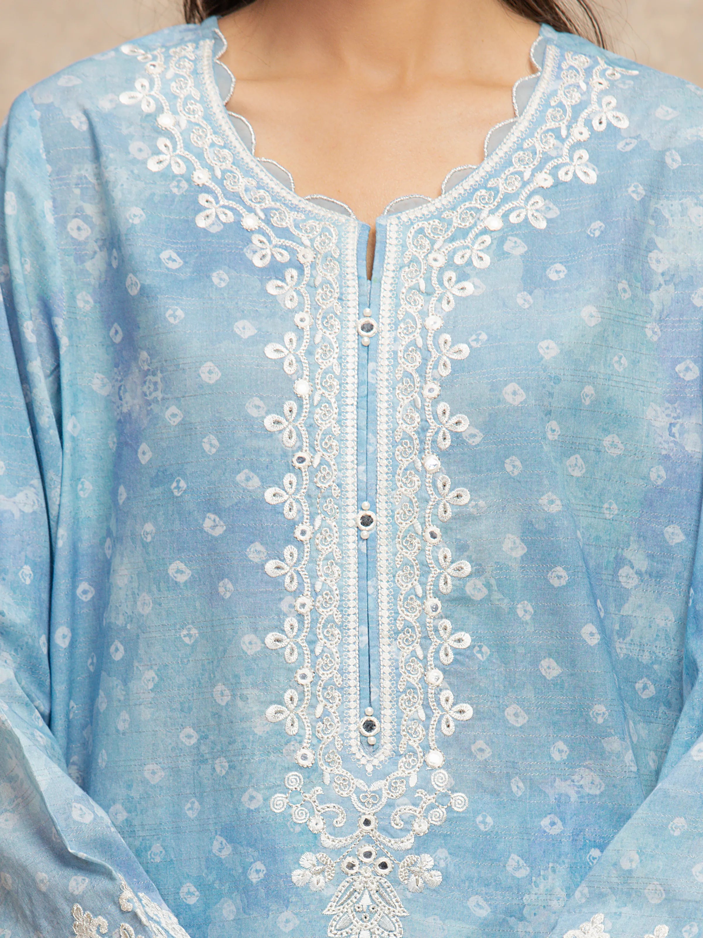 - Embroidered Neckline on Organza